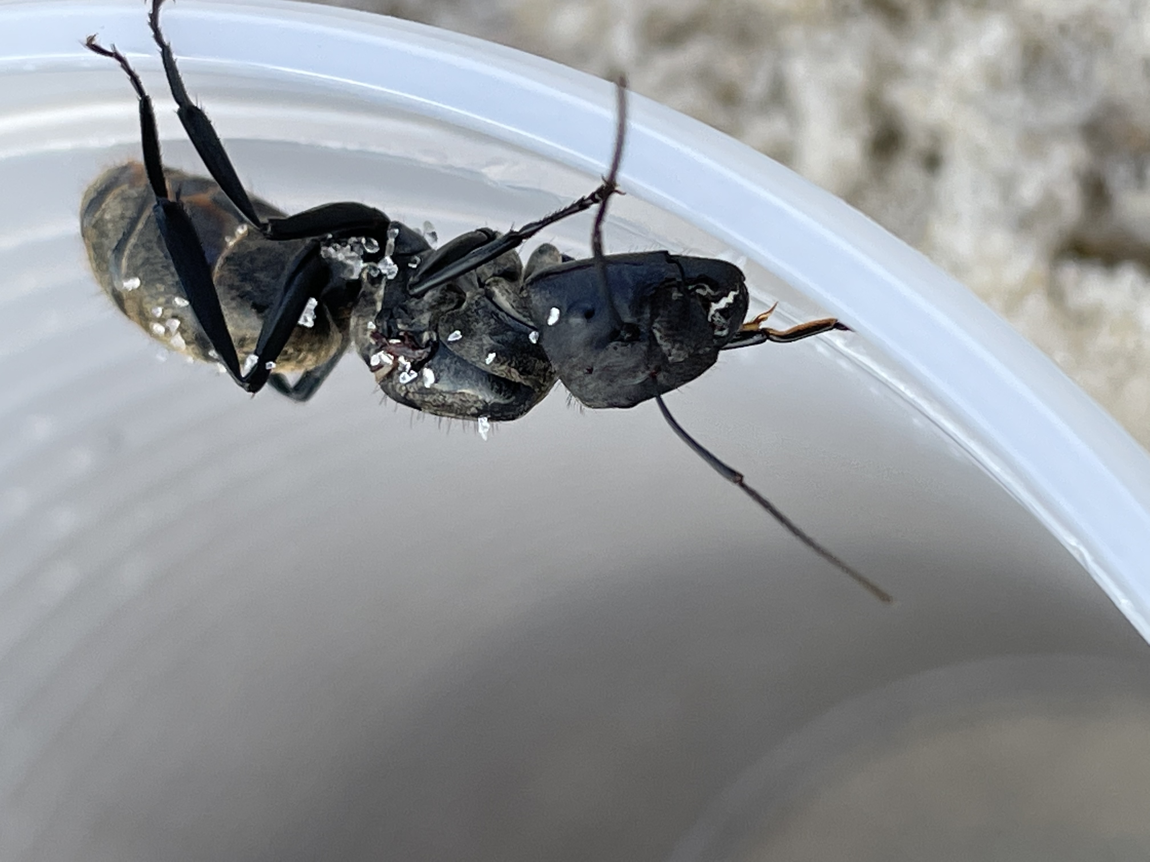 Hier, von gerade eben, das nächste Exemplar. Ca 2,5 cm lang. Sehr beissfreudig, sehr schnell, kenne ich sonst nur von Bullet Ants aus dem Amazonas Regenwald.