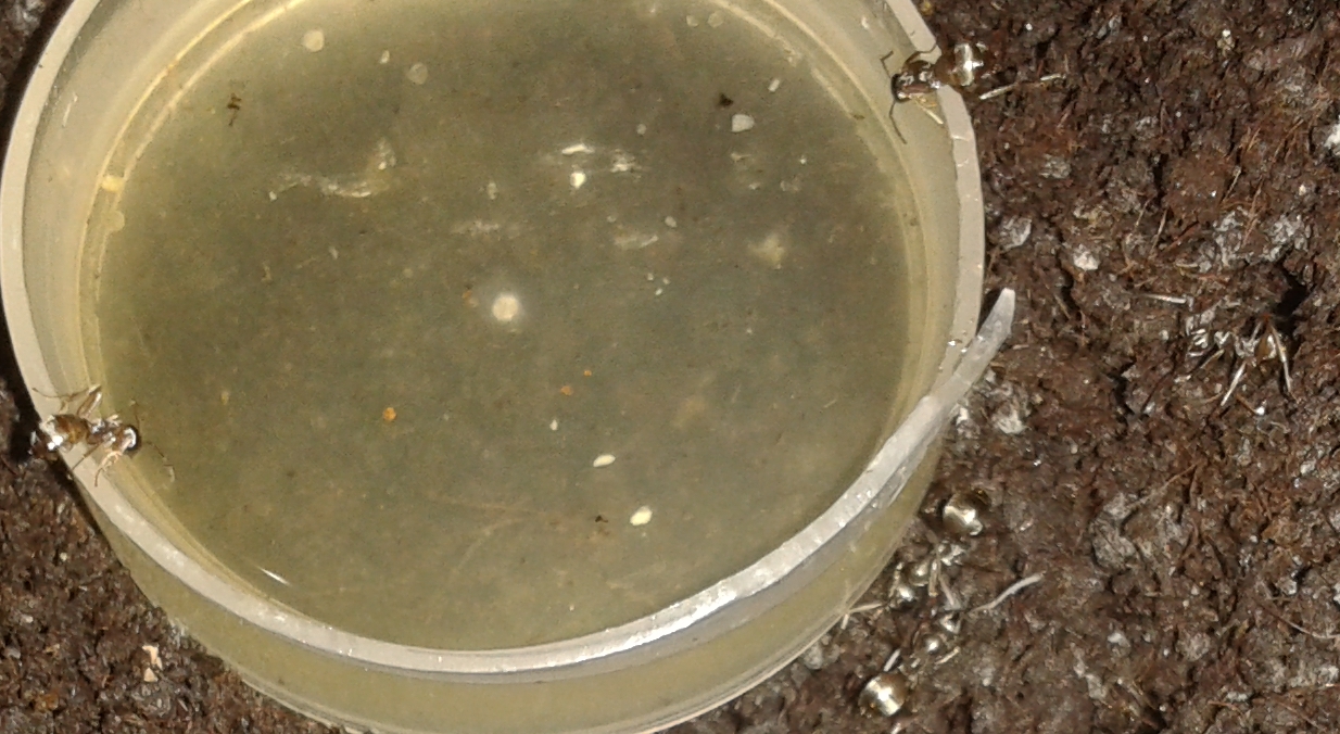 Ich fĂŒttere mit Honigwasser und Fliegen und sie nehmen es an.