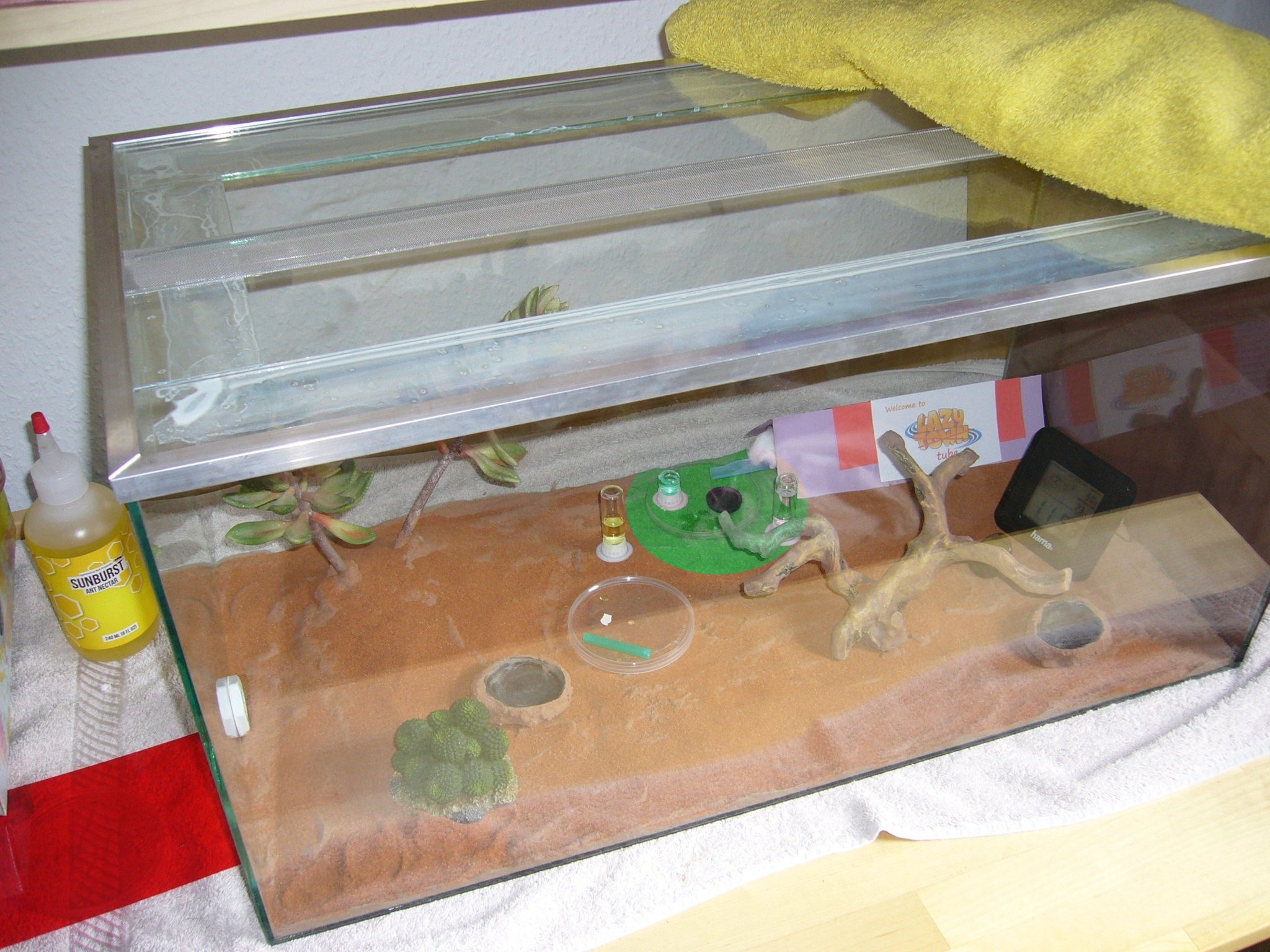 Ich tendiere dazu, für einheimische Arten (abgesehen von so kleinen Kolonien wie z.B. Temnothoraxsp .) ein externes Nest zu verwenden. Ich stelle es mir sehr unpraktisch vor, einmal im Jahr ein 100x30x40cm großes Formicarium kalt zu stellen.