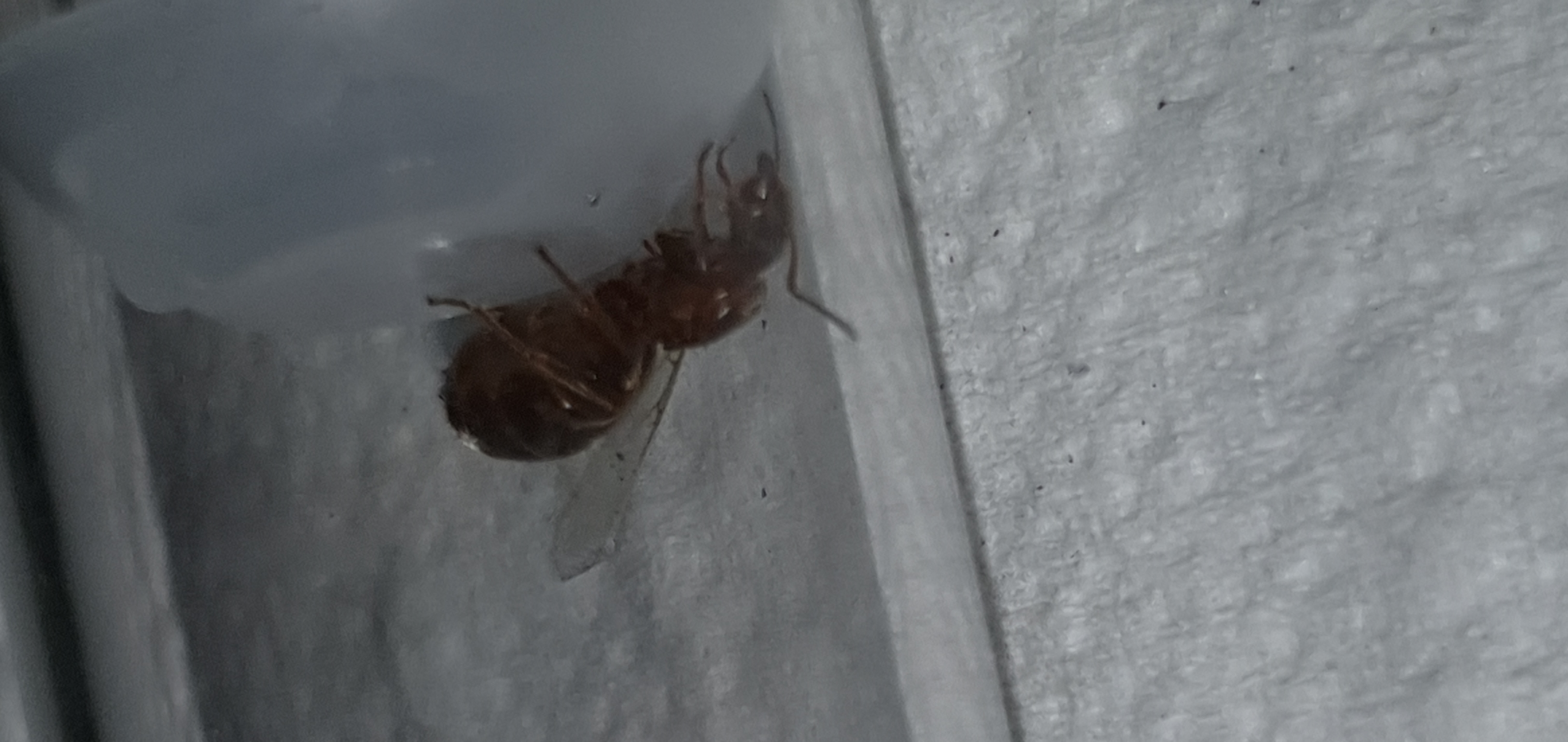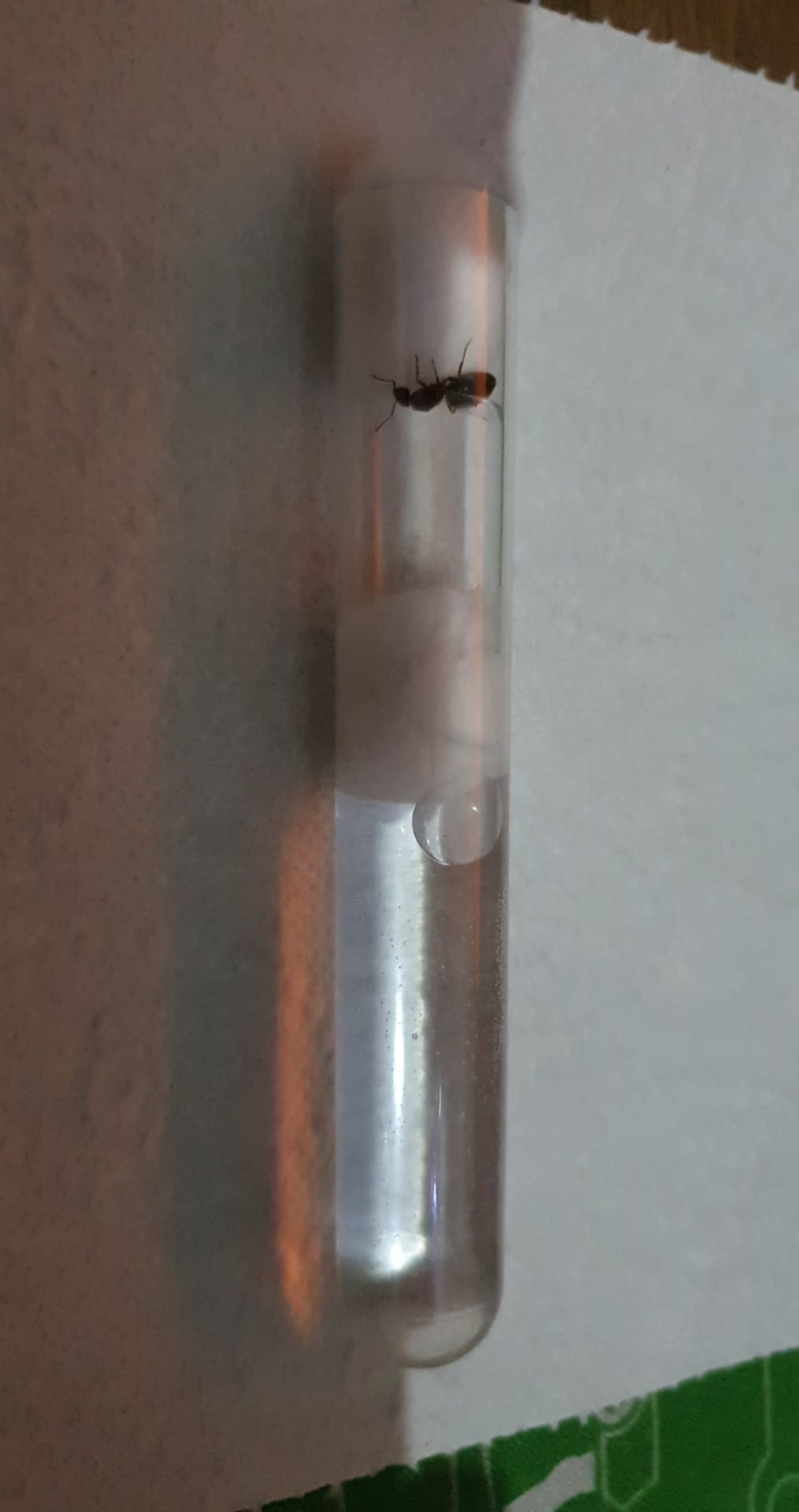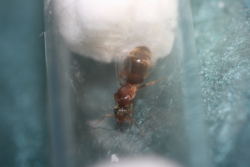 Gyne sich ruhig verhĂ€lt ist alles gut, sie braucht jetzt sehr viel Ruhe. Am effektivsten ist es bei claustral grĂŒndenden Gynen, diese in ihrem RG bei guten Bedingungen (hier etwa zwischen 19 und 26 °C und natĂŒrlich mit Wassertank) fĂŒr drei oder vier Wochen in einer dunklen Schublade zu âvergessenâ