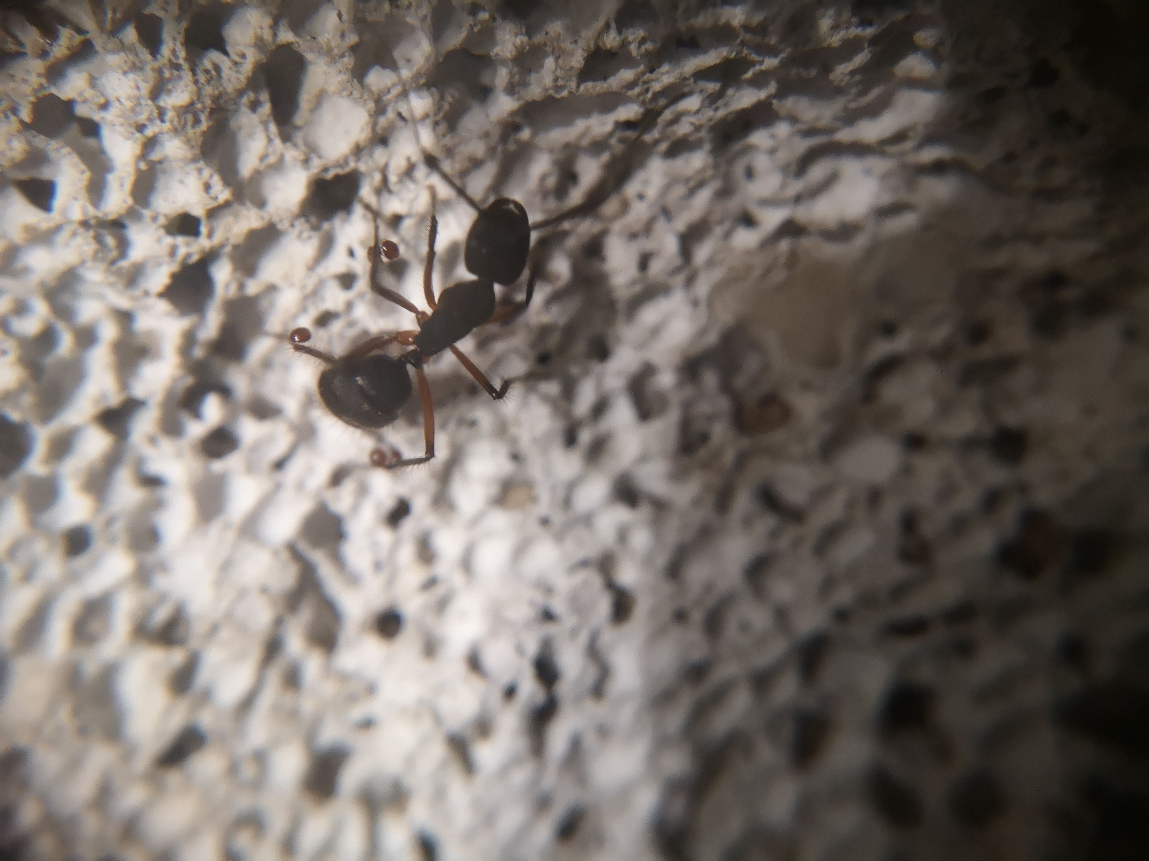 Entsprechend wäre auch das ein Beispiel für harmlose Milben. Ich glaube tatsächlich, dass eine Phoresie betreibende Milbenart in meiner Camponotus brasiliensis ein Zuhause gefunden hat. Die vergleichsweise großen, roten Milben hängen zeitweise zu 10. an einer Arbeiterin. Trotzdem geht es der Kolonie gut und das obwohl die Milben sich deutlich vermehrt haben.