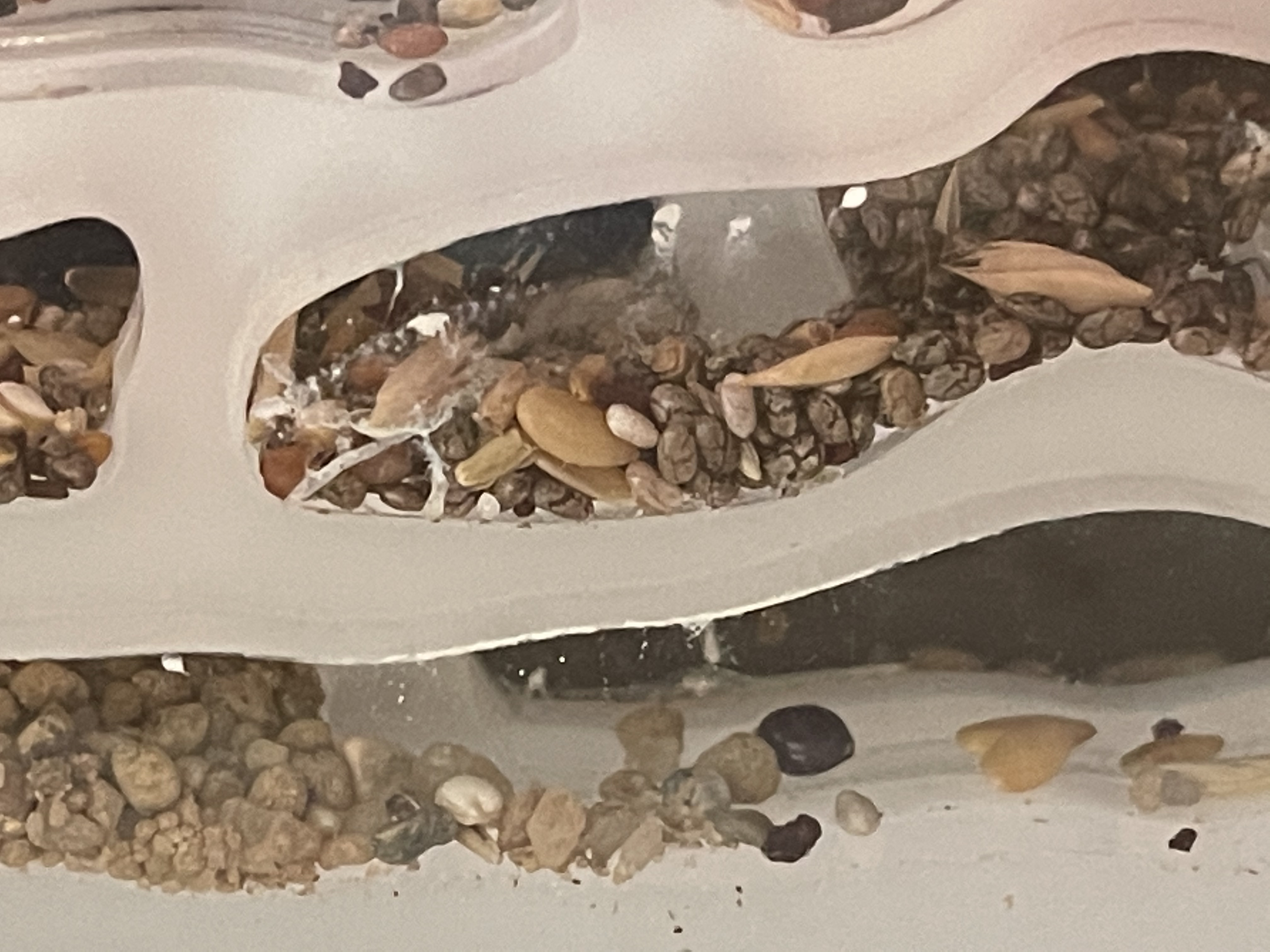 Ist nicht normal das Messor barbarus im Körnerlager Körner zu Ameisenbrot zerbeißen, verarbeiten.