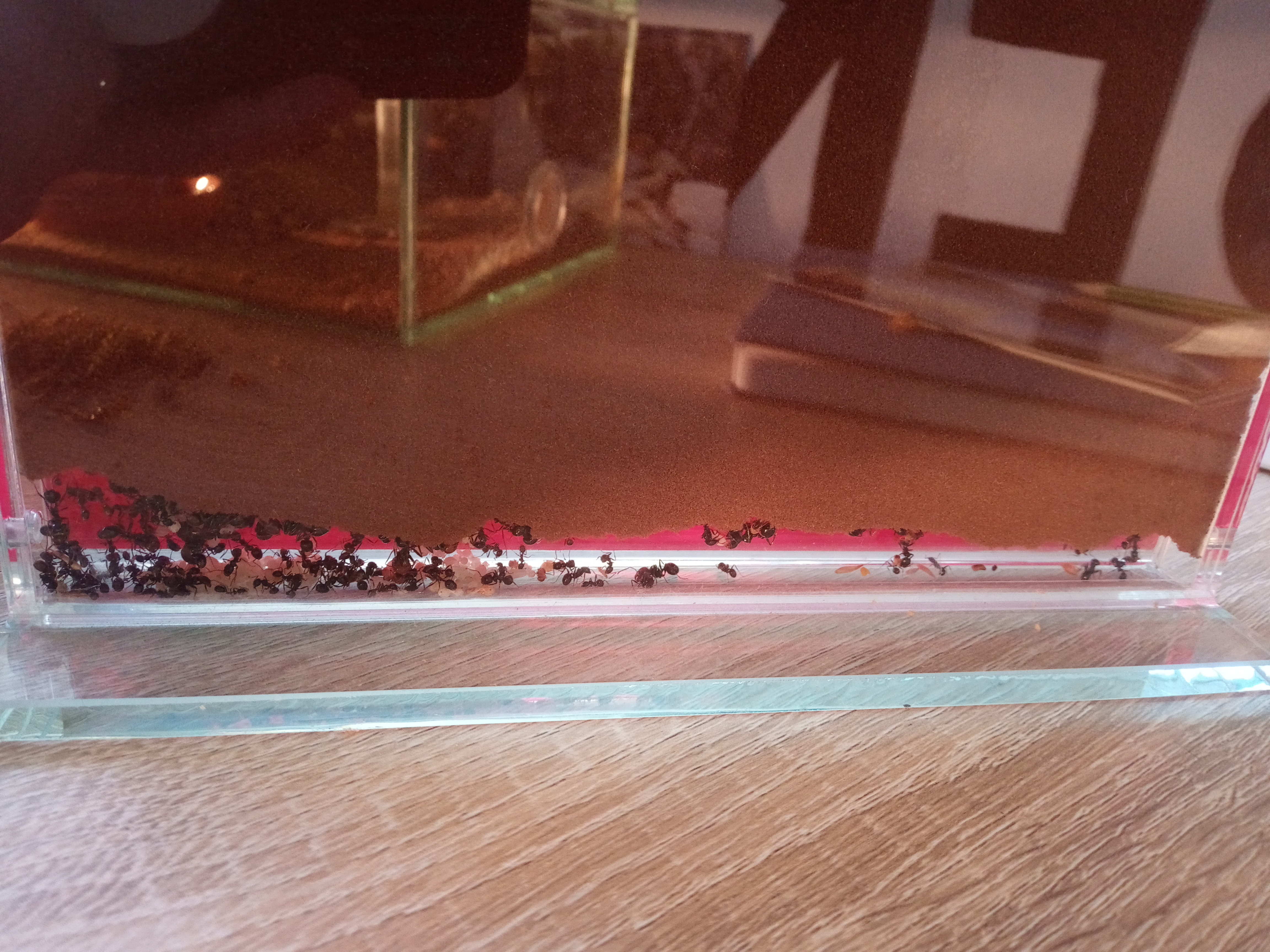 Nur verhalten sie sich ein bisschen komisch, also zumindest denk ich das. Als sie aus dem Reagenzglas ausgezogen sind haben sie auch direkt angefangen zu buddeln und sich einzunisten. Allerdings gibt es nur eine große Höhle mehr halt nicht. Bild dazu angehängt. Auch gibt es Tage an denen sie die Brut bei ihren Körnern lagern. Ich vermute das das mit kleinen Erschütterungen zu tun hat die sie aufschrecken. Aber auch die Körner lagern sie einfach im Schlauch. Ein klitze kleines bisschen auch im Futter bereich. Keine Ahnung was bei denen ist. Vielleicht ist es denen zu feucht da wo sie eigentlich ihre Körner lagern könnten. Aber die Brut zum Futter legen?