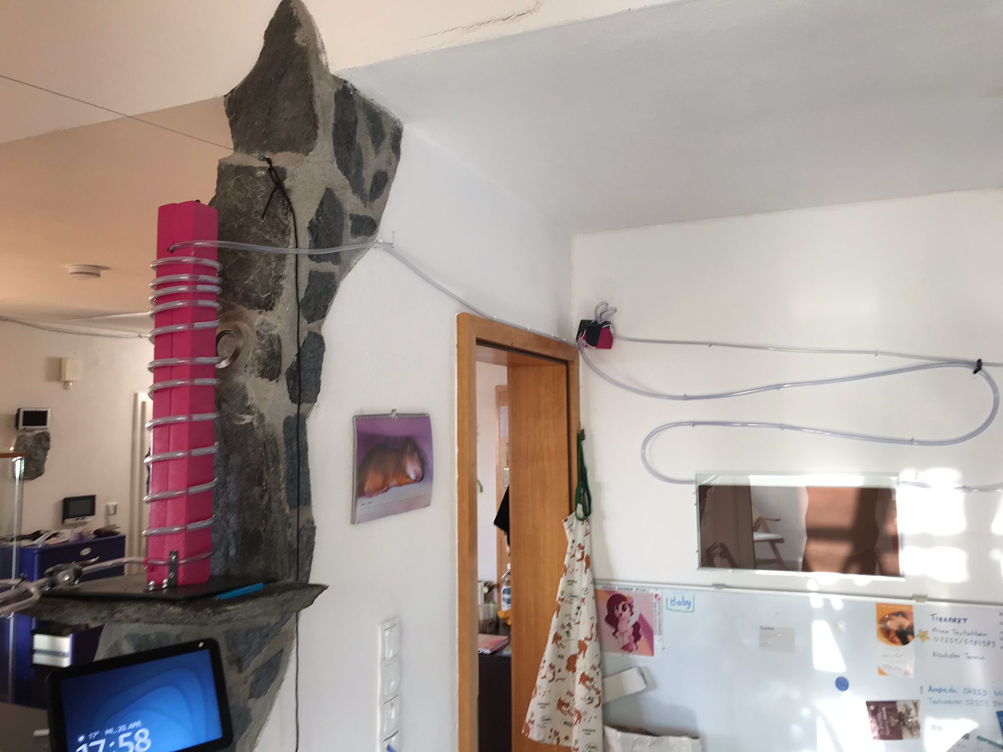 Ich habe einen 10 Meter langen Schlauch zum neuen Nest genommen udn diesen noch wĂ€hrend ich am werkeln war schonmal angeschlossen. Die Ameisen sind einfach aus SpaĂ an der Freude diese 10 Meter regelmĂ€Ăig hin und zurĂŒck gelaufen. Nun habe ich den Schlauch an das neue Nest angeschlossen (Und an der Wand endlang gefĂŒhrt so wie als Spirale um einen Pfahl gebunden. Und die Ameisen gehen nurnoch die ersten 3 Windungen des Pfahls (ganz links im Bild) und drehen dann abrupt um.
