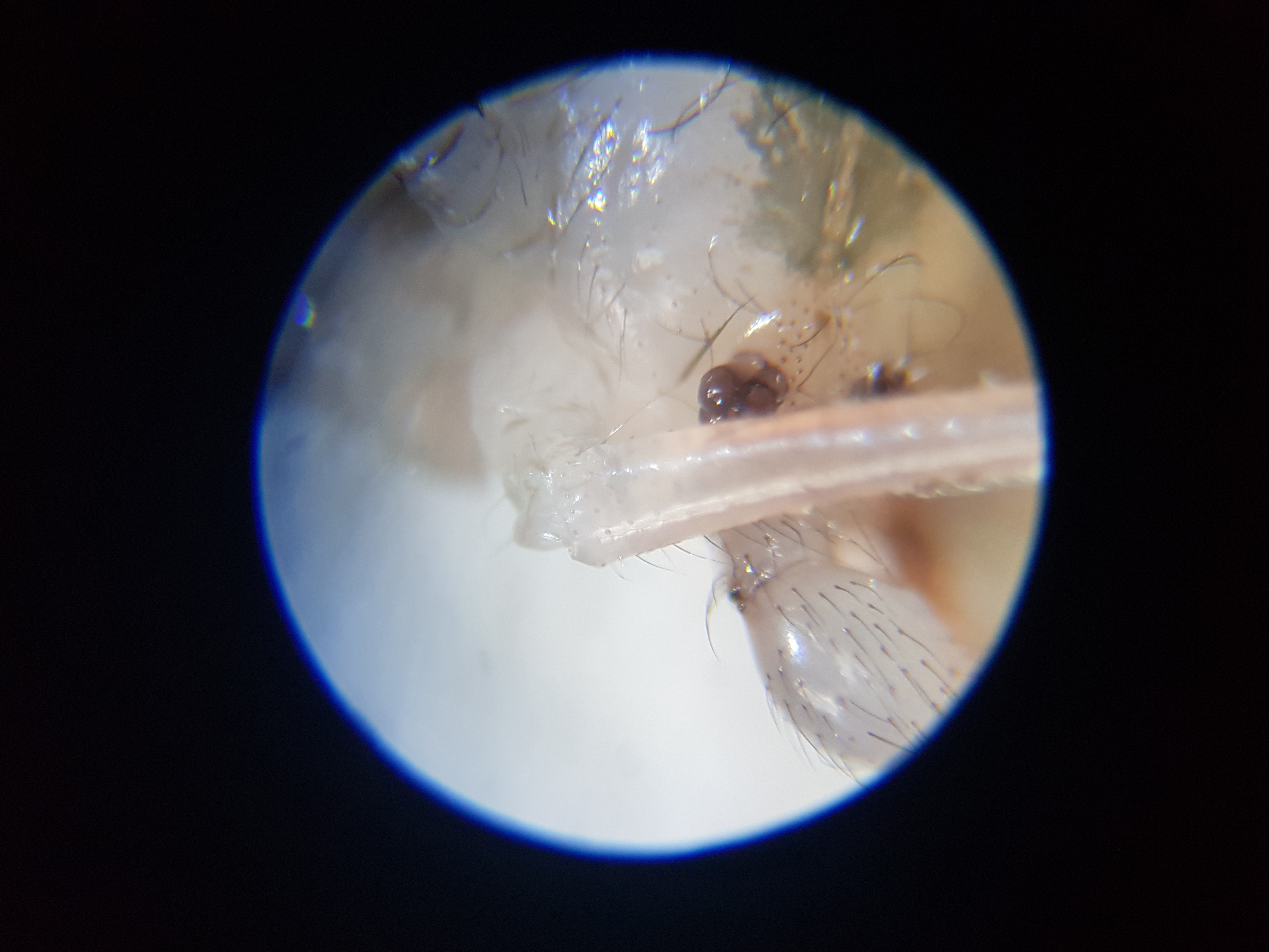 Das ist ein gekochter Weberknecht den ich eigentlich an Messor barbarus verfĂĽttern wollte. Allerdings habe ich den unter dem Mikroskop diese Punkte entdeckt und da stellt sich mir die Frage, sind das Milben?