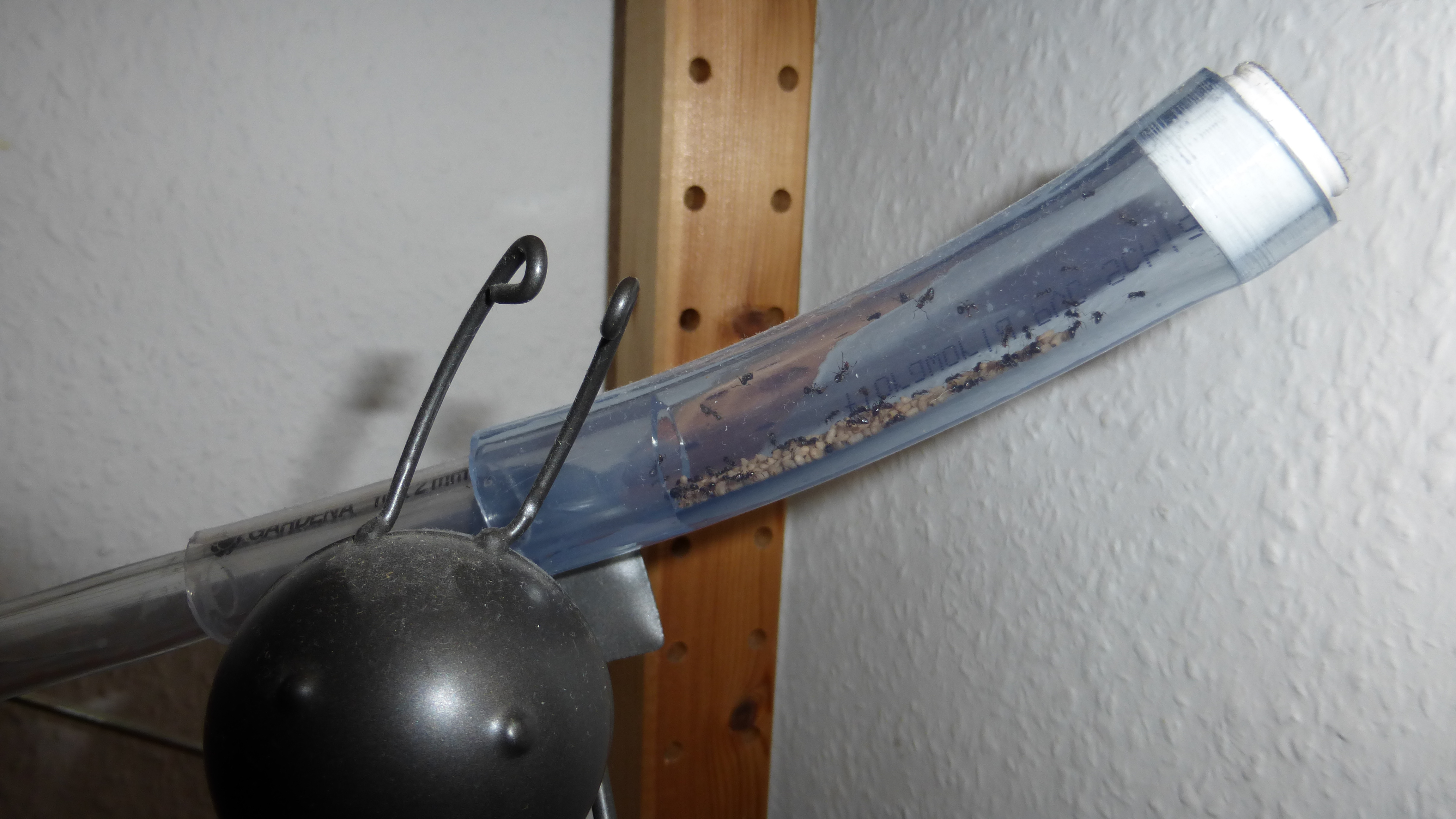 Deckel sollte man drauflassen, gerade Ameisen wie Messor, die gerne und viel graben, haben schnell genug Aushub zusammen, um einen HĂŒgel aufzuschĂŒtten, auf dem sie einfach aus der Farm rausspazieren können.
