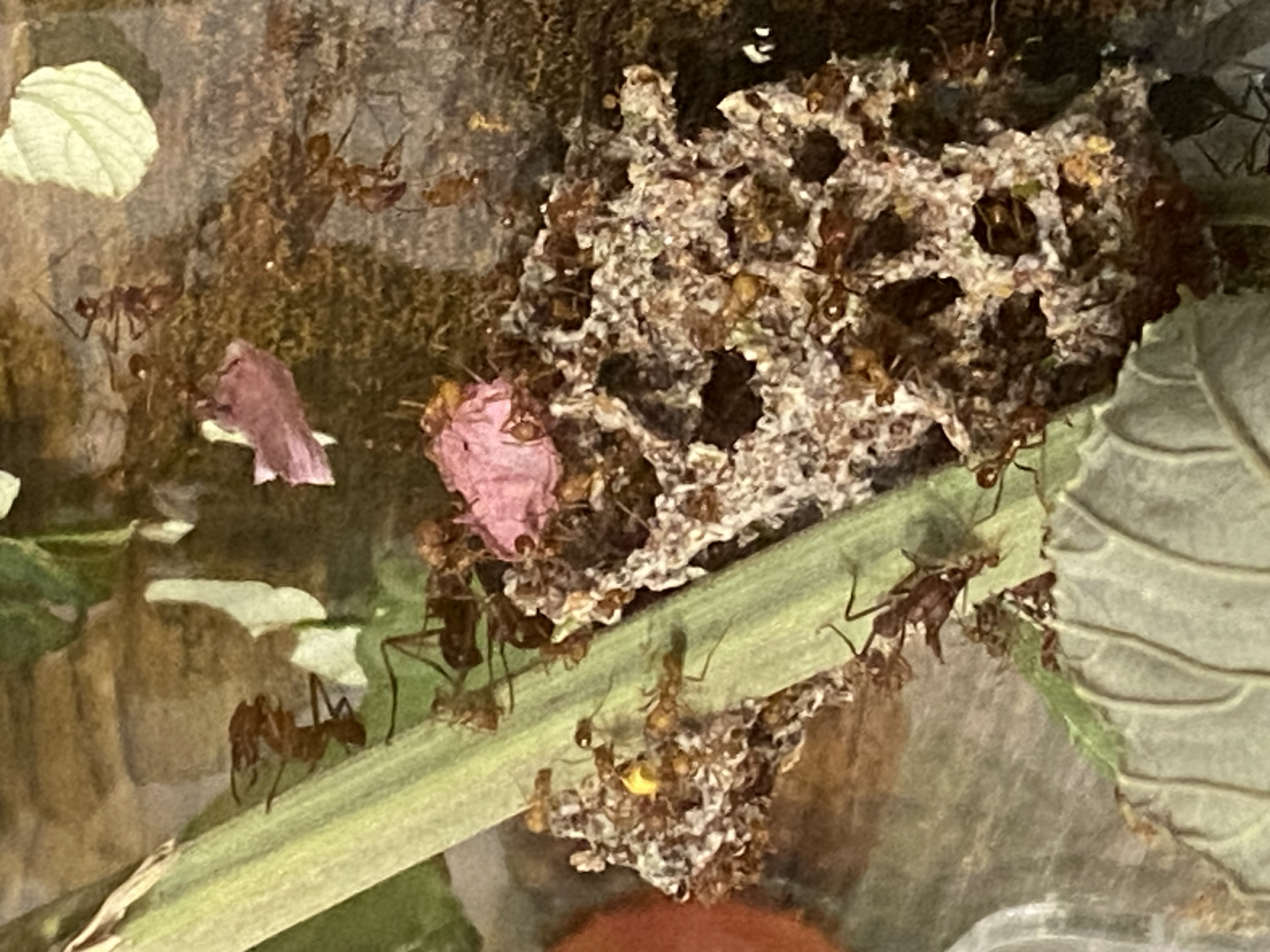 der mittlere eigentliche Pilzbehälter wurde nicht angenommen, und die Tiere sind in den eigentlichen linken Futterbehälter umgezogen, wo sie den Pilz aufbauen