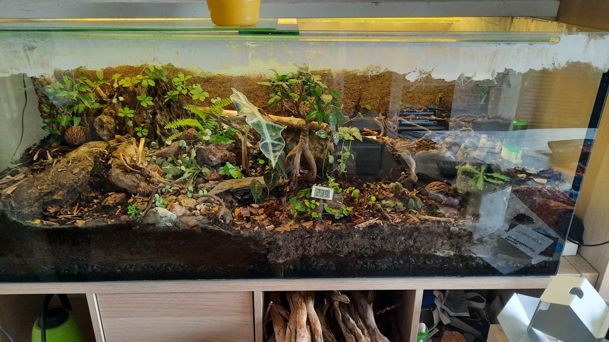 Ich verwende nur Kunststoffbepflanzung und in der Regel sind meine Becken mit Nesteinsicht gestaltet z.B. per Ytong oder ähnlichem.