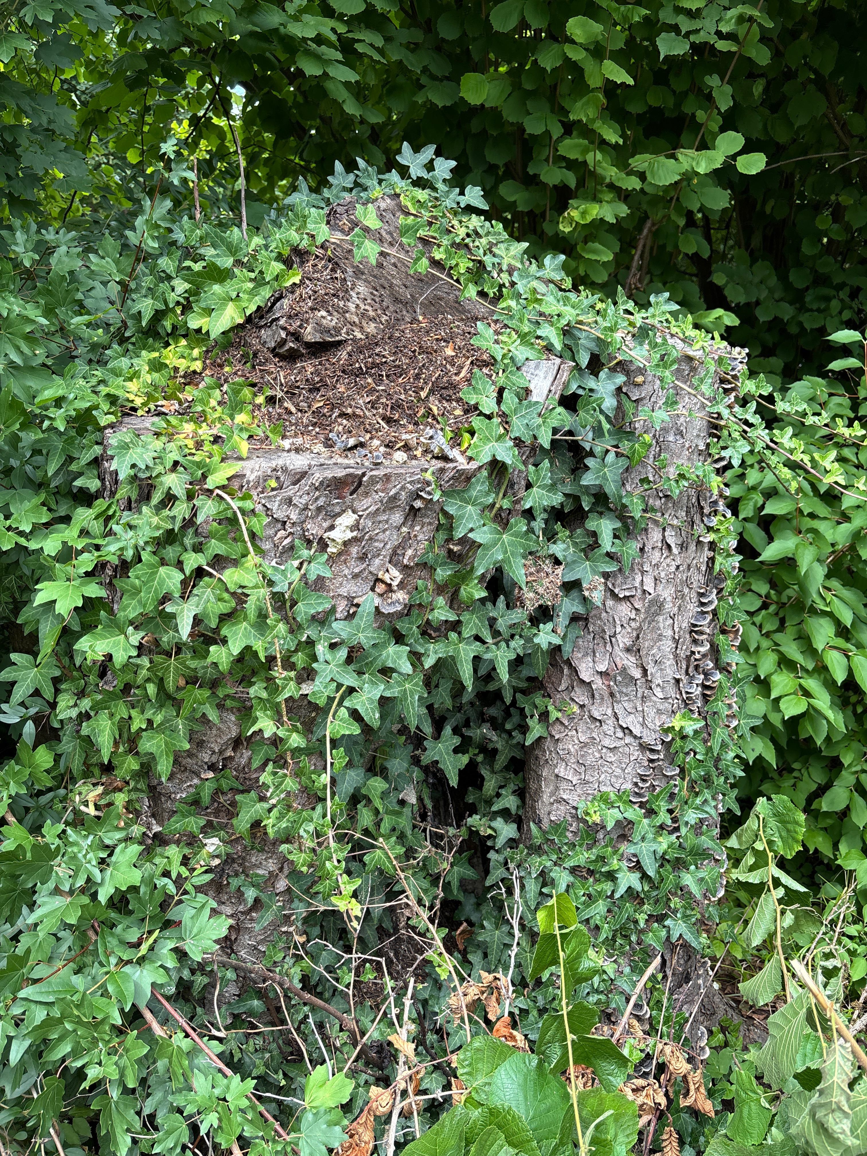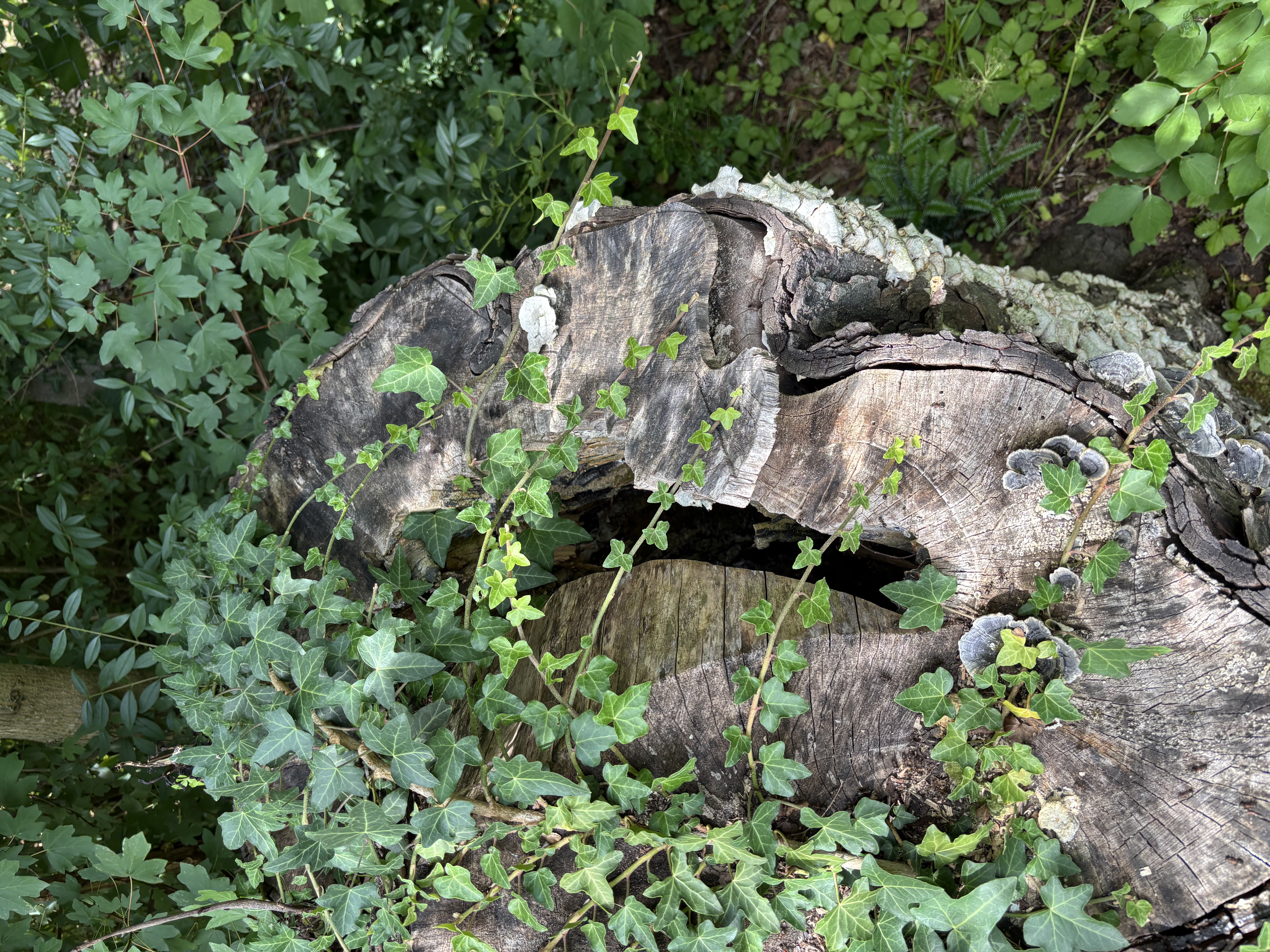 Efeu gibt grad richtig Gas, wenn ich nichts machen würde, wir der den Stumpf komplett überwuchern.