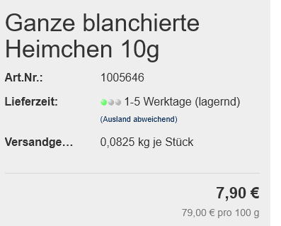 Bei den blanchierten Heimchen schreckt mich etwas der Preis ab: 790€ / kg sind schon heftig.