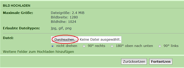 Wichtig! Nicht zu große Bilder hochladen, das verursacht nur unnötige Fehlermeldungen