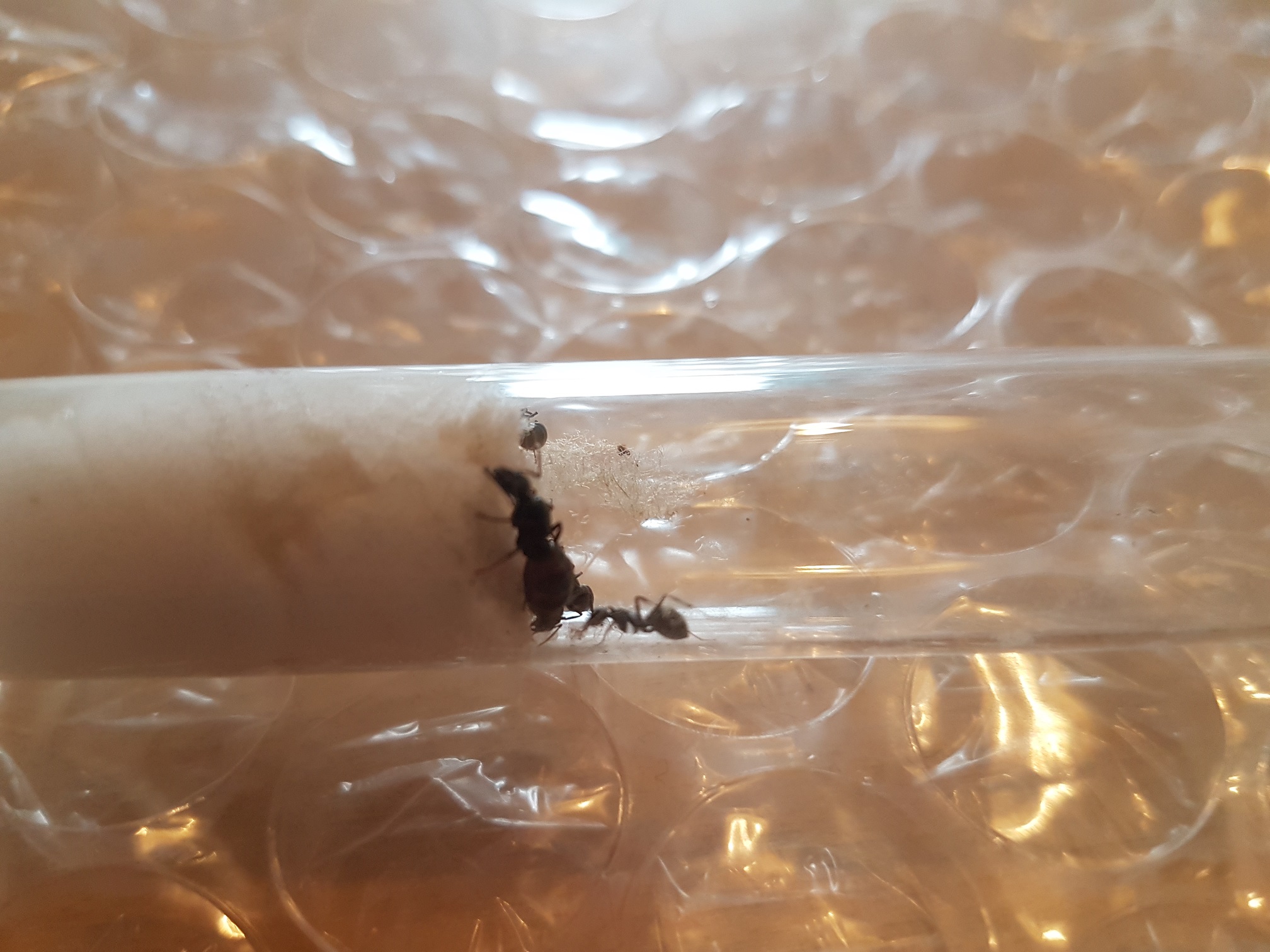 Wenn die Kolonie angekommen ist, würde ich dir raten, das Reagenzglas einmal in Ruhe ganz genau zu inspizieren und zu schauen wie viele Ameisen und ob Brut vorhanden ist. Mach am besten auch gleich ein paar Fotos. Wenn du damit fertig bist, dann ab in den Kühlschrank mit der Kolonie. Ob nun in den von dir gebastelten Karton oder einer kleineren Box oder einfach nur das abgedunkelte Reagenzglas, bleibt dir überlassen.