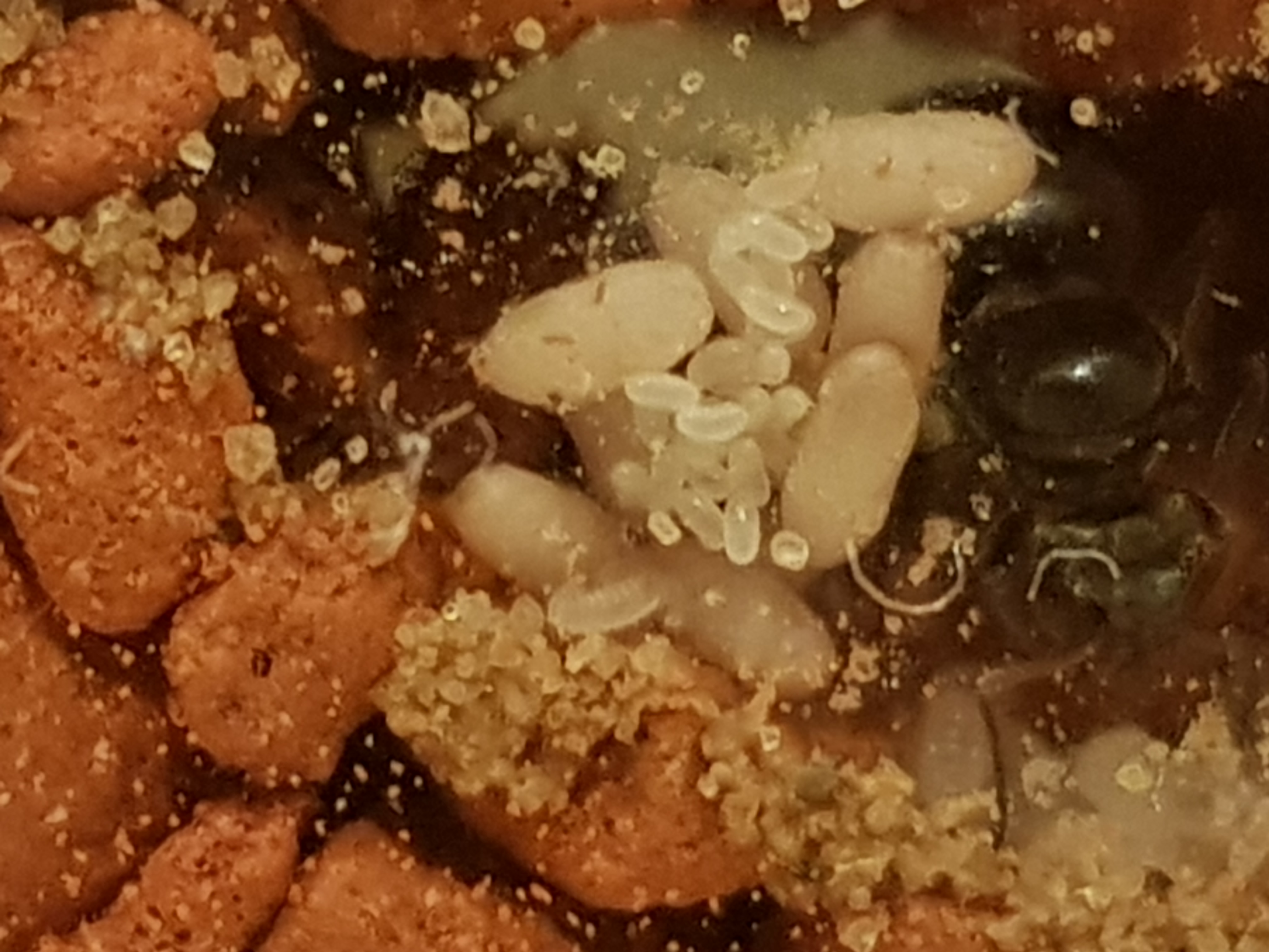 Manchmal verstecken die ihre Larven ziemlich gut indem sie die Larven in kleine Kammern lagern, in die Watte drĂĽcken oder einfach drĂĽber stehen.