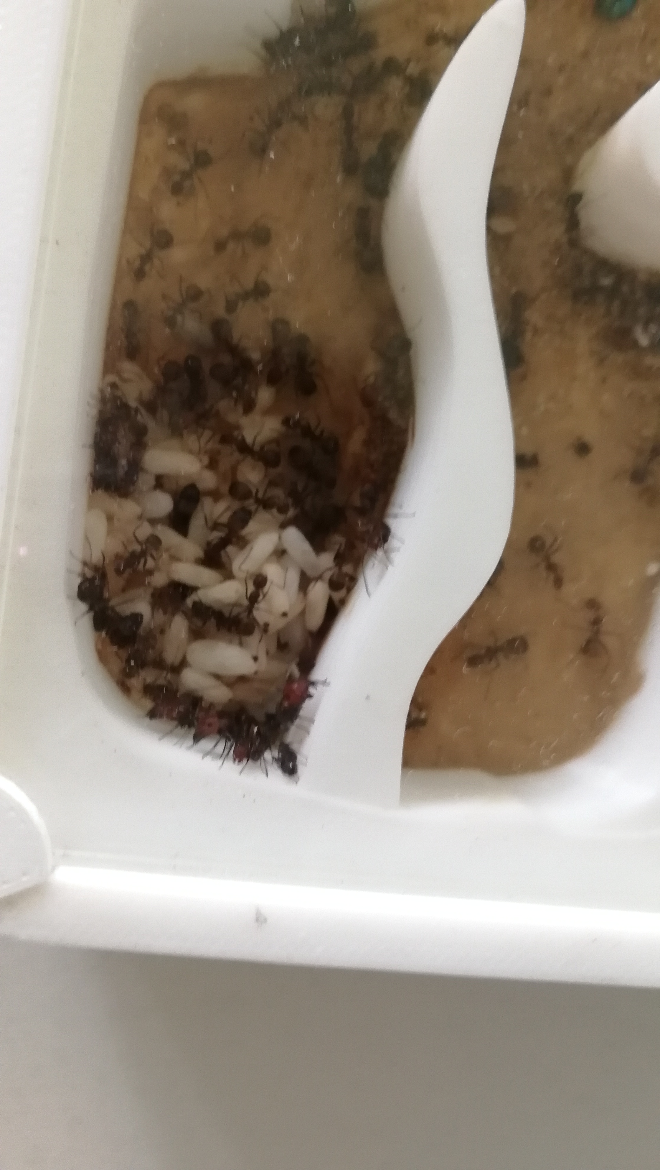 Königin war weg! 1 1/2 Wochen warten und nochmals warten, waren wirklich grauenhaft, ihr könnt euch nicht vorstellen, wie das war, es gab keine Spur von ihr, nachdem sie sich teils in der neuen Arena eingegraben hatten (der Sand war etwas höher), mir wurde damals vermittelt, sie seien äußerst grabfaul und es würde sich nichts tun, aber falsch gedacht! Hatte einen Stein entfernt und dann gleich einige Gänge, die ich NIE bemerkt hatte eingerissen, alles voller Ameisen und irgendwo war da dann auch die