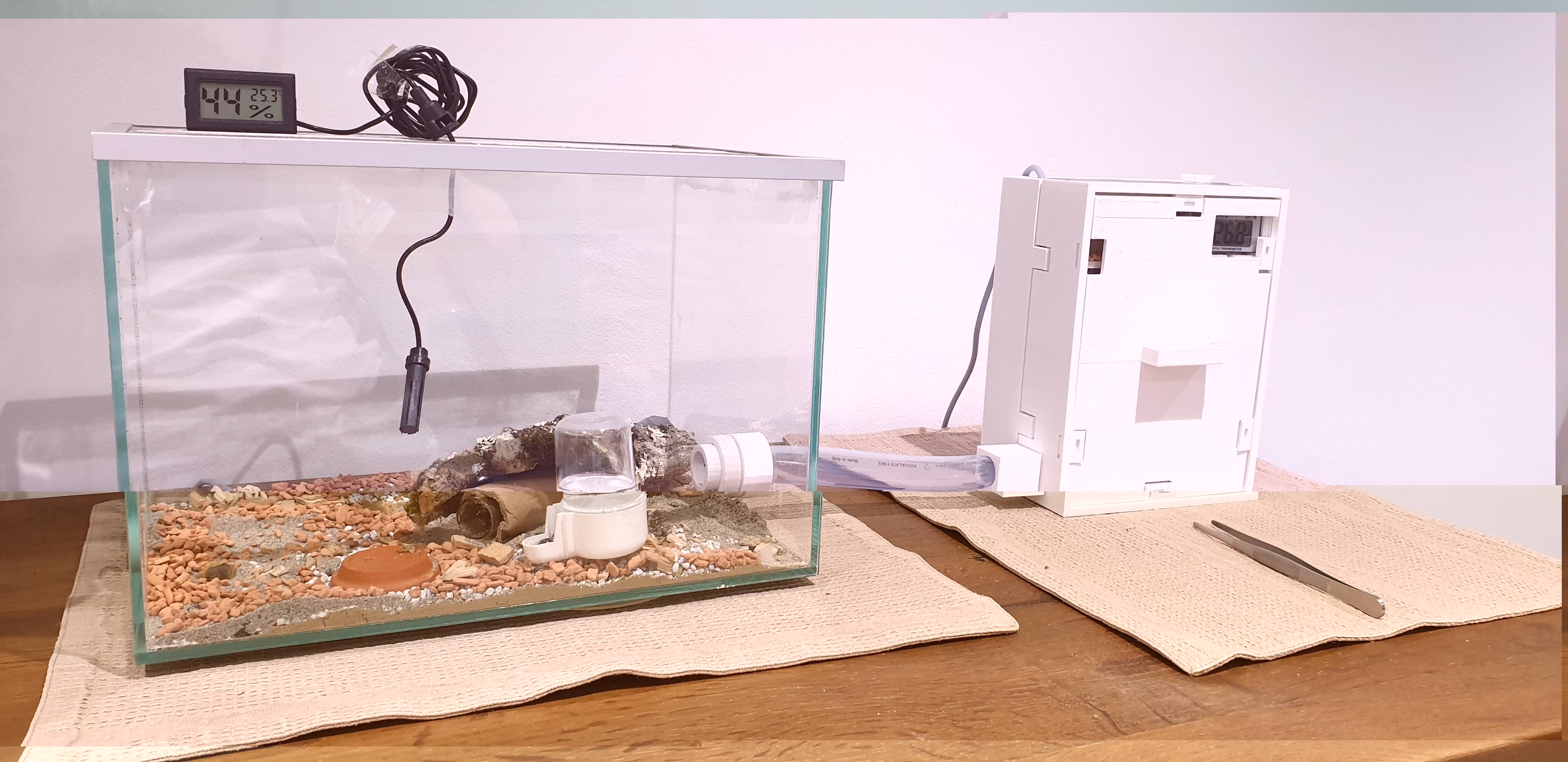 In Eingang NĂ€he sollte etwas Material wie Sand, kleine ZweigstĂŒcke usw. bereit liegen damit sie den Eingang etwas zubauen können, sowie kleine Portionen Futter.