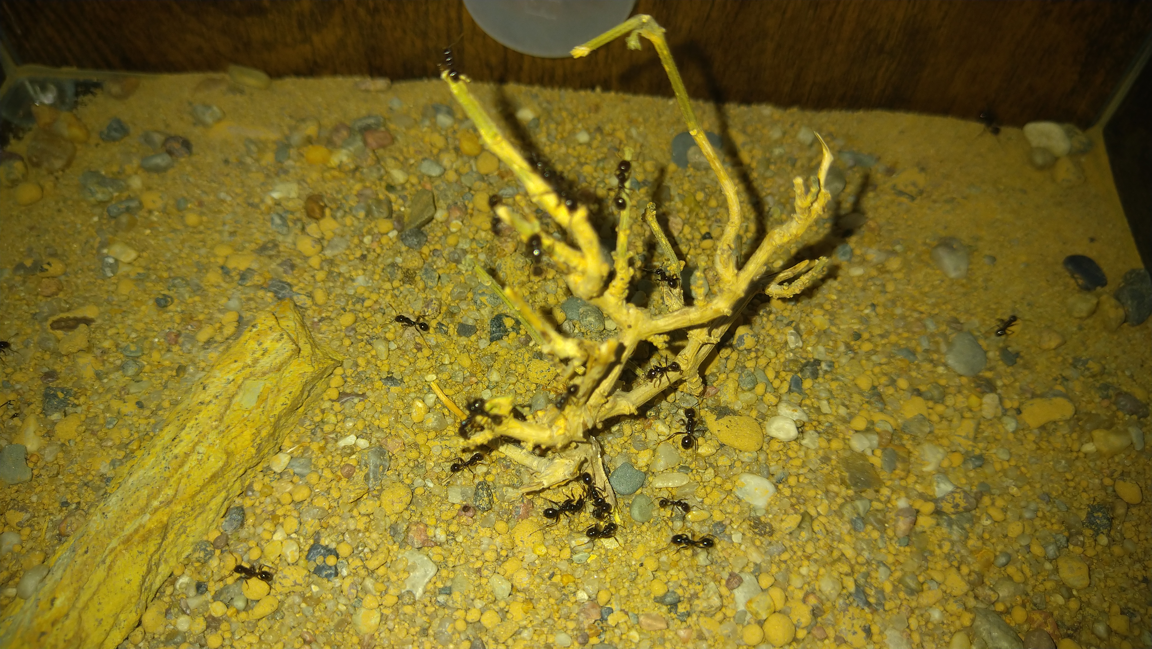 Ich konnte richtig beobachten, wie mehre Arbeiterinnen das Gestrüpp untersucht haben und dann hektisch zurück ins Nest gerannt sind.