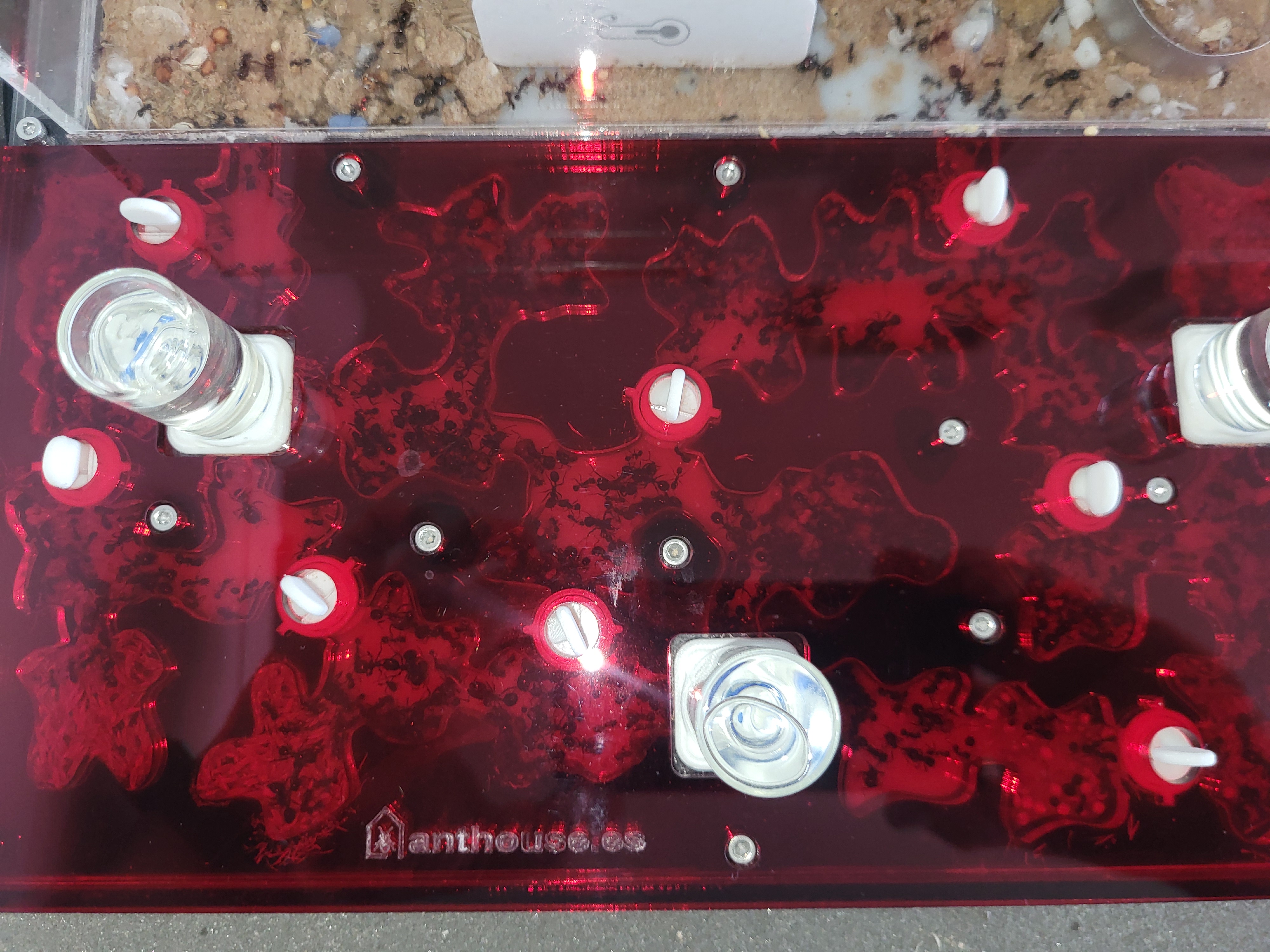 Wie ihr erkennen könnt habe ich ein Acrylnest (15x30) mit 3 Wassertanks und einer Arena ebenfalls mit 15x30.