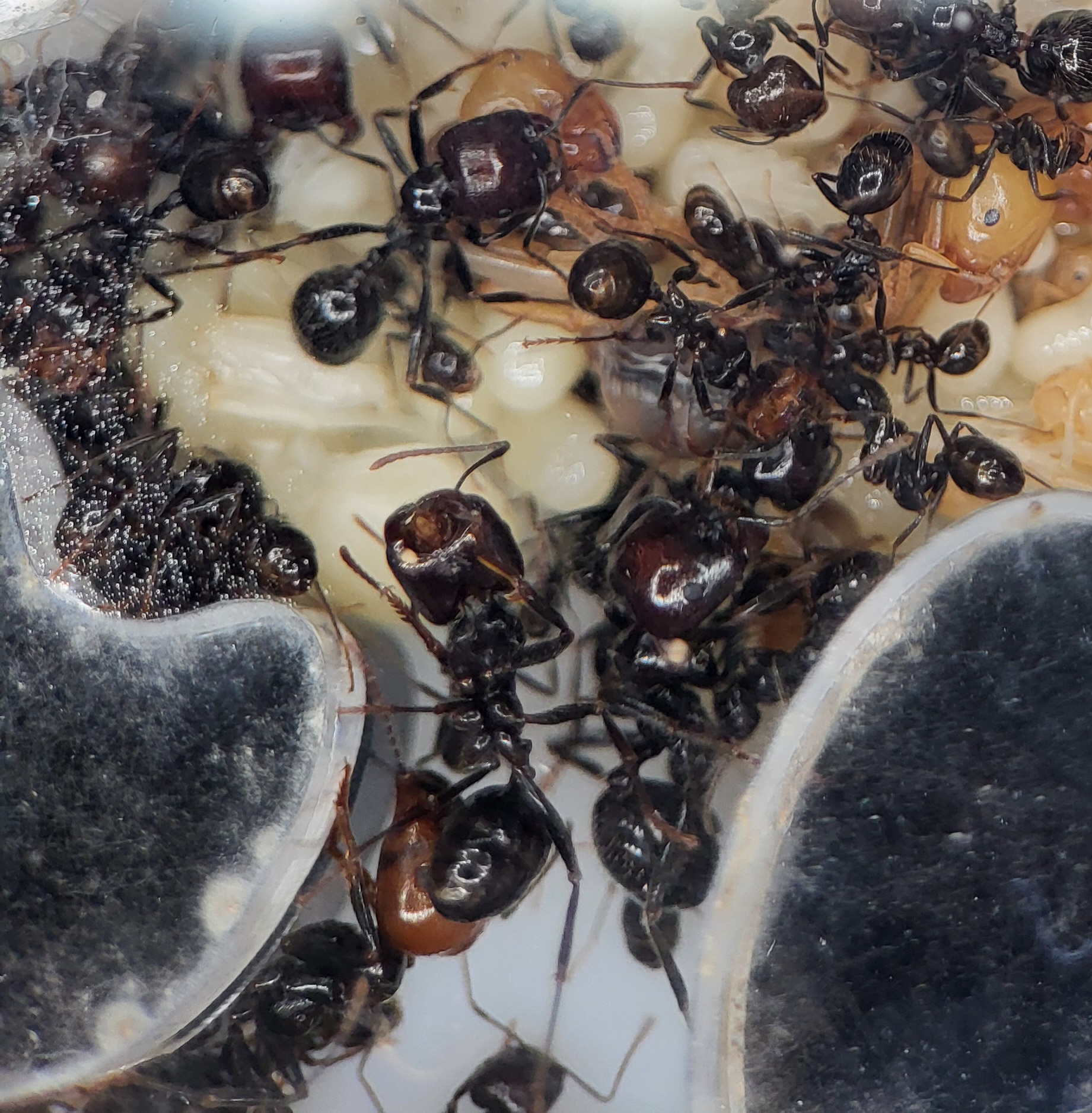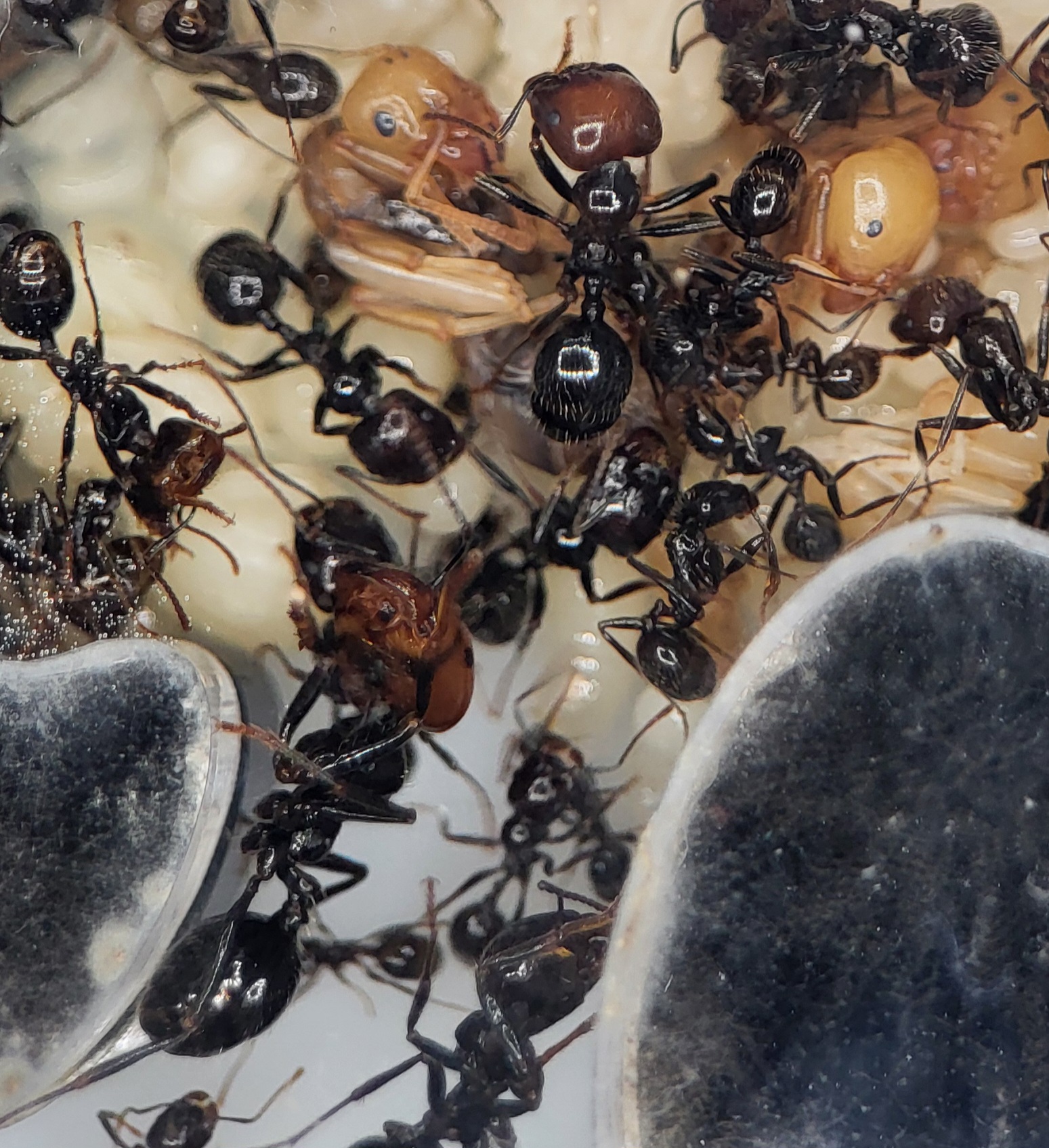 (Aufgrund der Neststörung sind ca. 20 - 30 Ameisen in die Arena gerannt).