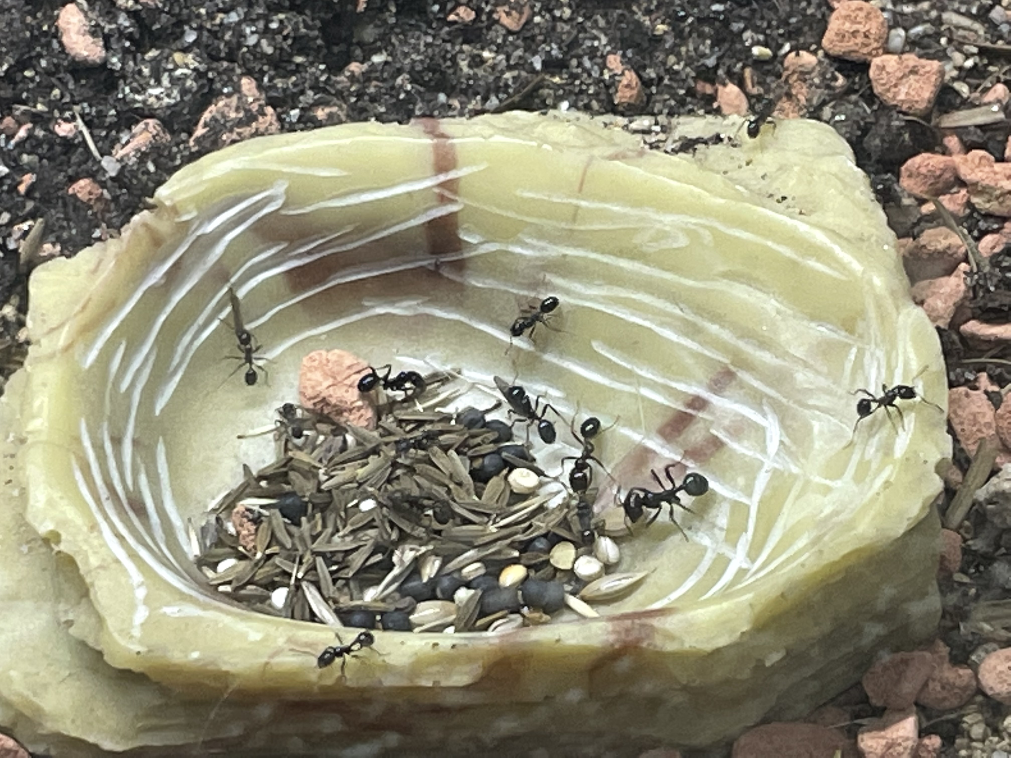 In letzter Zeit tragen sie ja das Körnerfutter immer so schnell ein, jetzt hab ich ihnen mal zugesehen (und ungefĂ€hr die doppelte Menge verfĂŒttert).