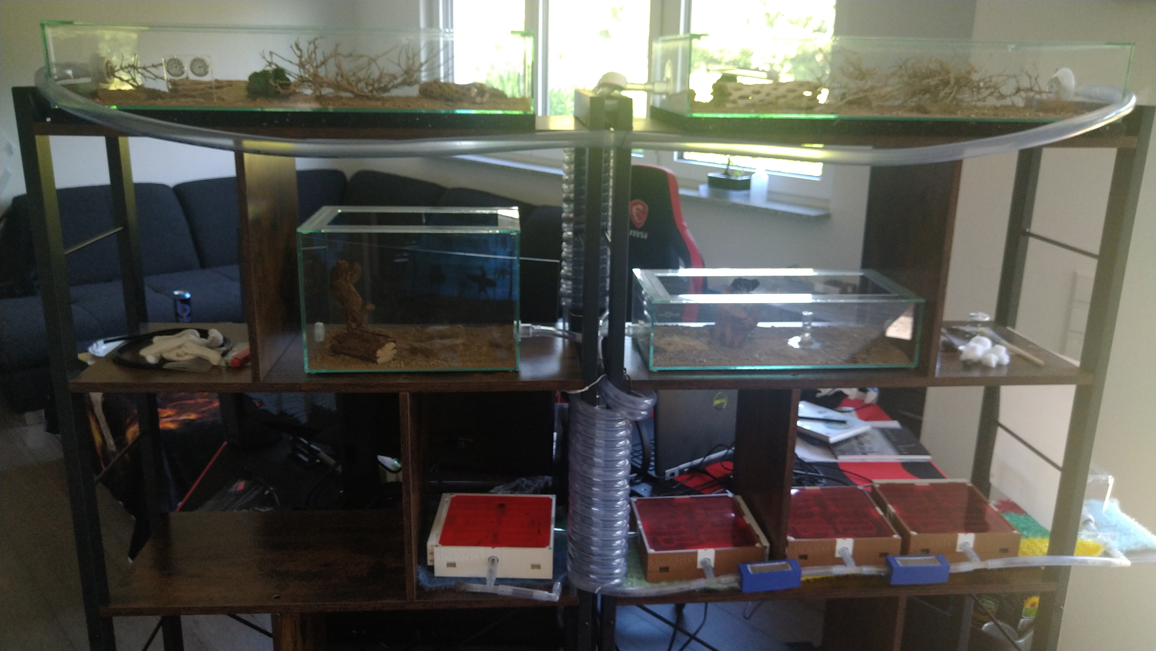 Die 2aktuell noch leer und parallel laufenden Schlauchspiralen zu denen die schon im Einsatz sind, werden dann auch mit eingebunden und vergrößern somit vermutlich auch nochmal das von der Kolonie angesehene Nest.