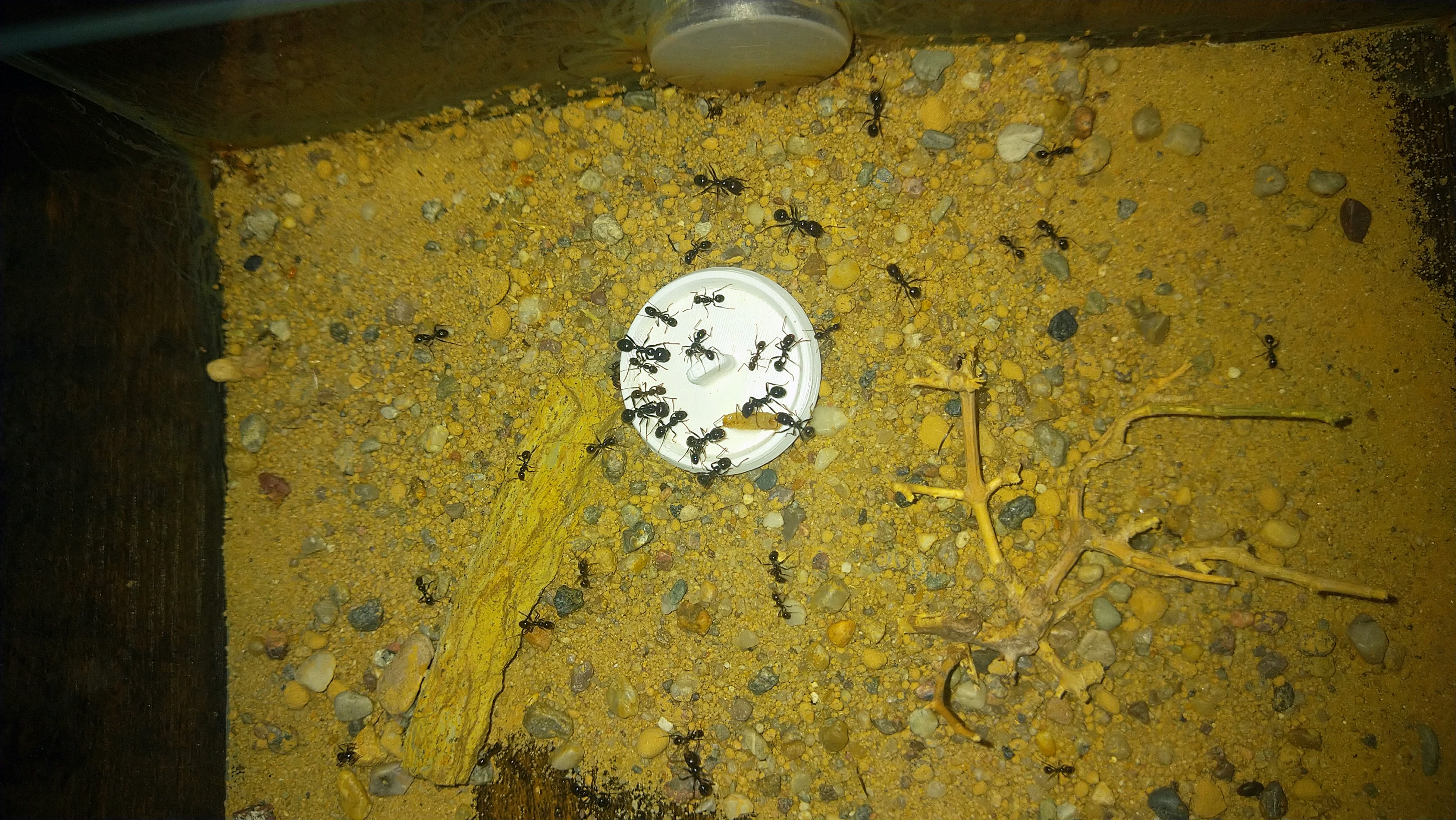 Aktivität in den Arenen gibt es immer und rund um die Uhr, allerdings ist Morgens und Abends durtlich mehr los. Und auch wenn es in einer Arena sozusagen nichts zu holen gibt, wird diese nicht mehr stark belaufen. Erst wenn ich Wasser oder Körner anbiete, ist 1-2h großes Krabbeln, danach wird sich auf die Futerquelle konzentriert.