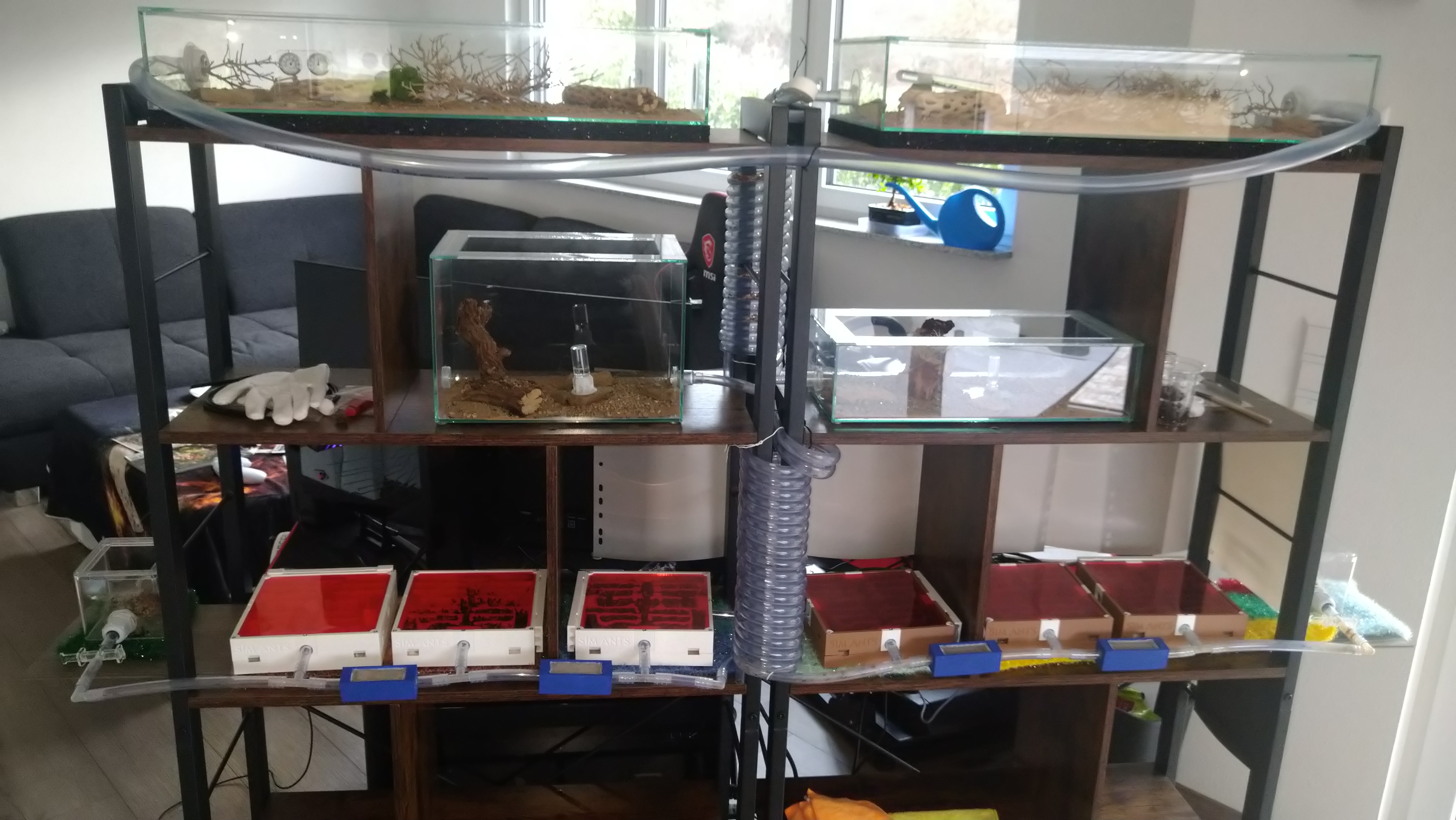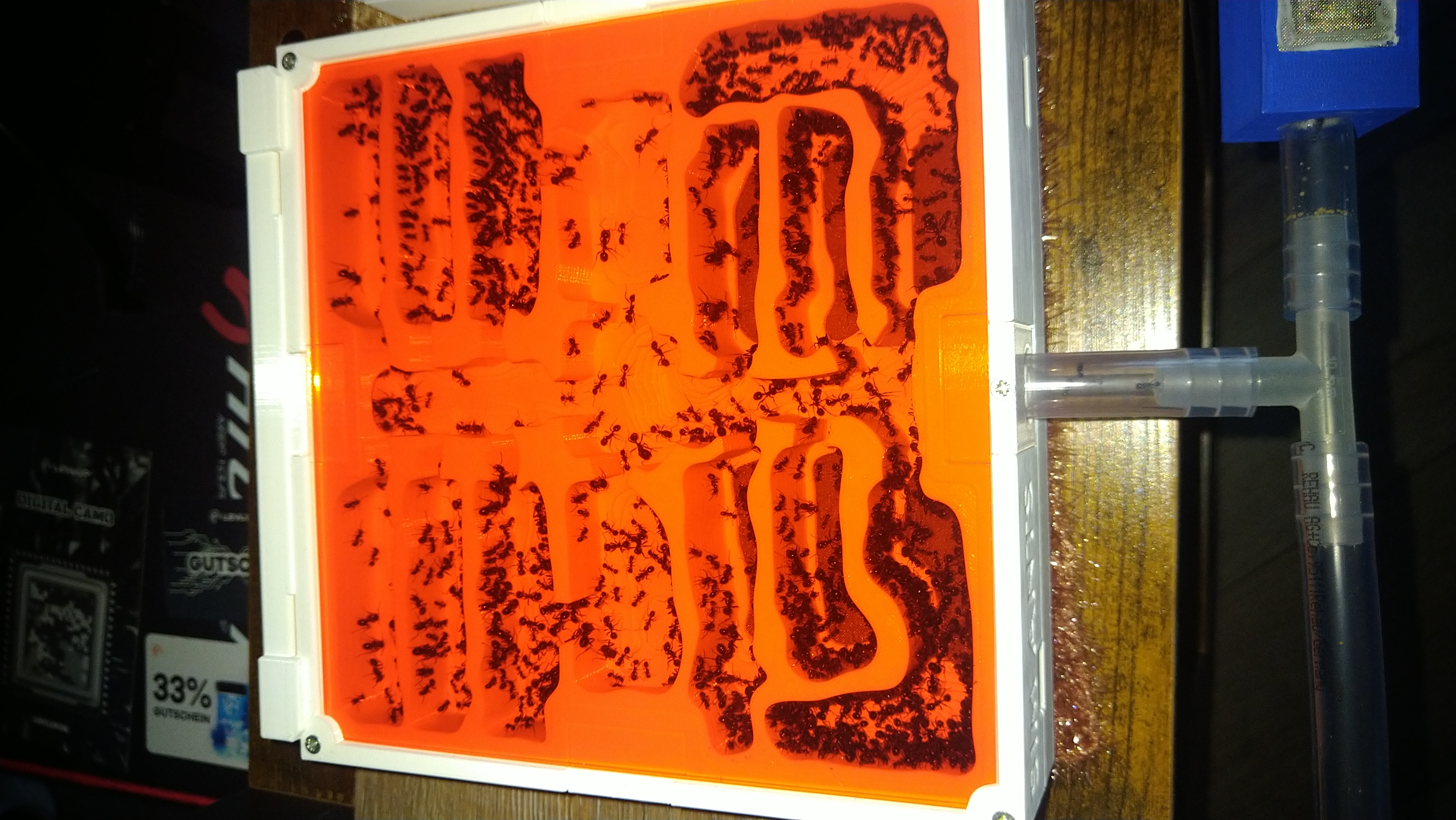 heute mal ein kurzes Update. Aktuell schätze ich die Koloniegröße auf 9.000-10.000. Es gibt immernoch etwas Platz in den Nestern, hier und da ist mal eine Kammer leer aber im großen und ganzen verteilt sich die Kolonie schön über die Anlage.