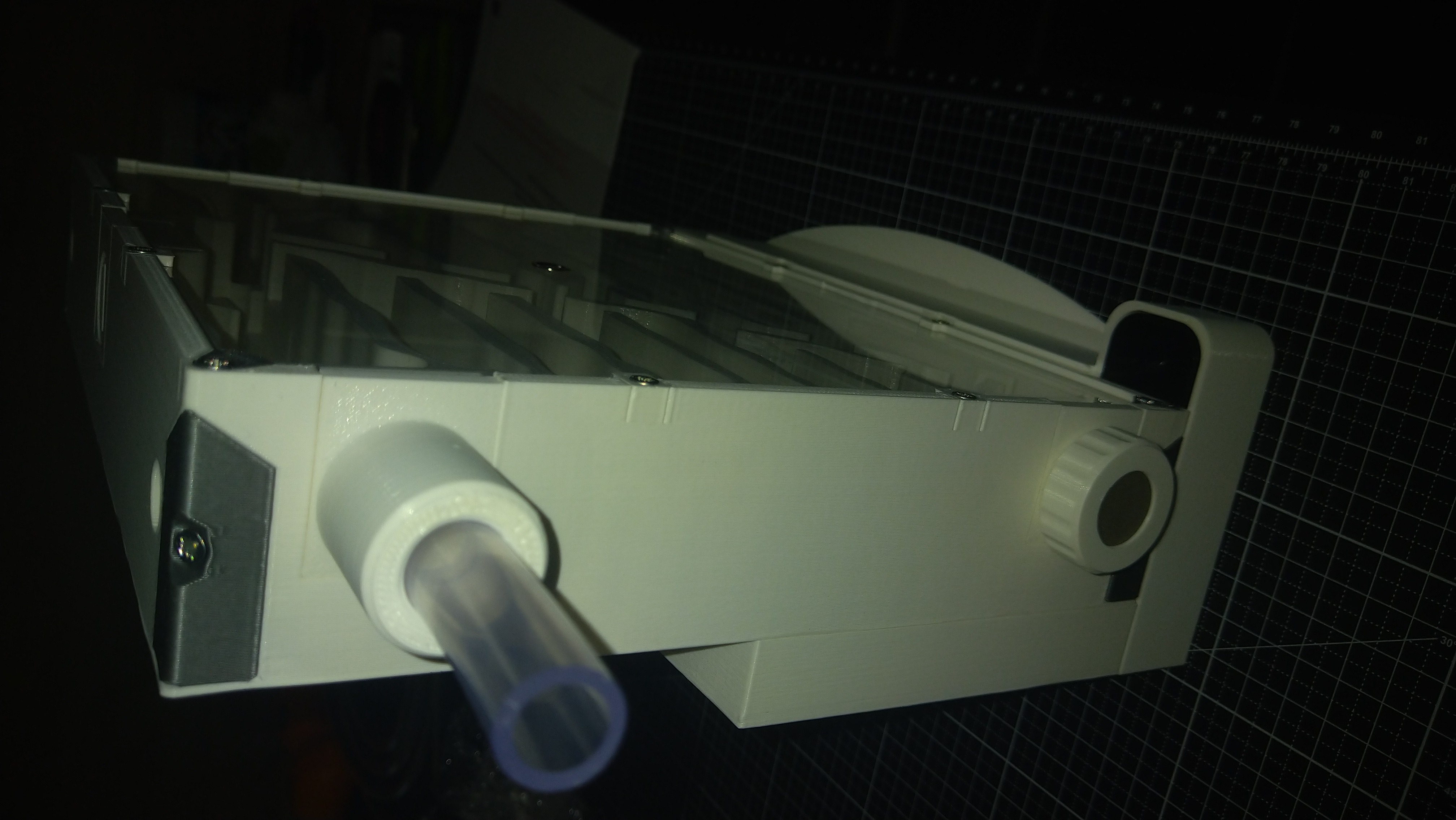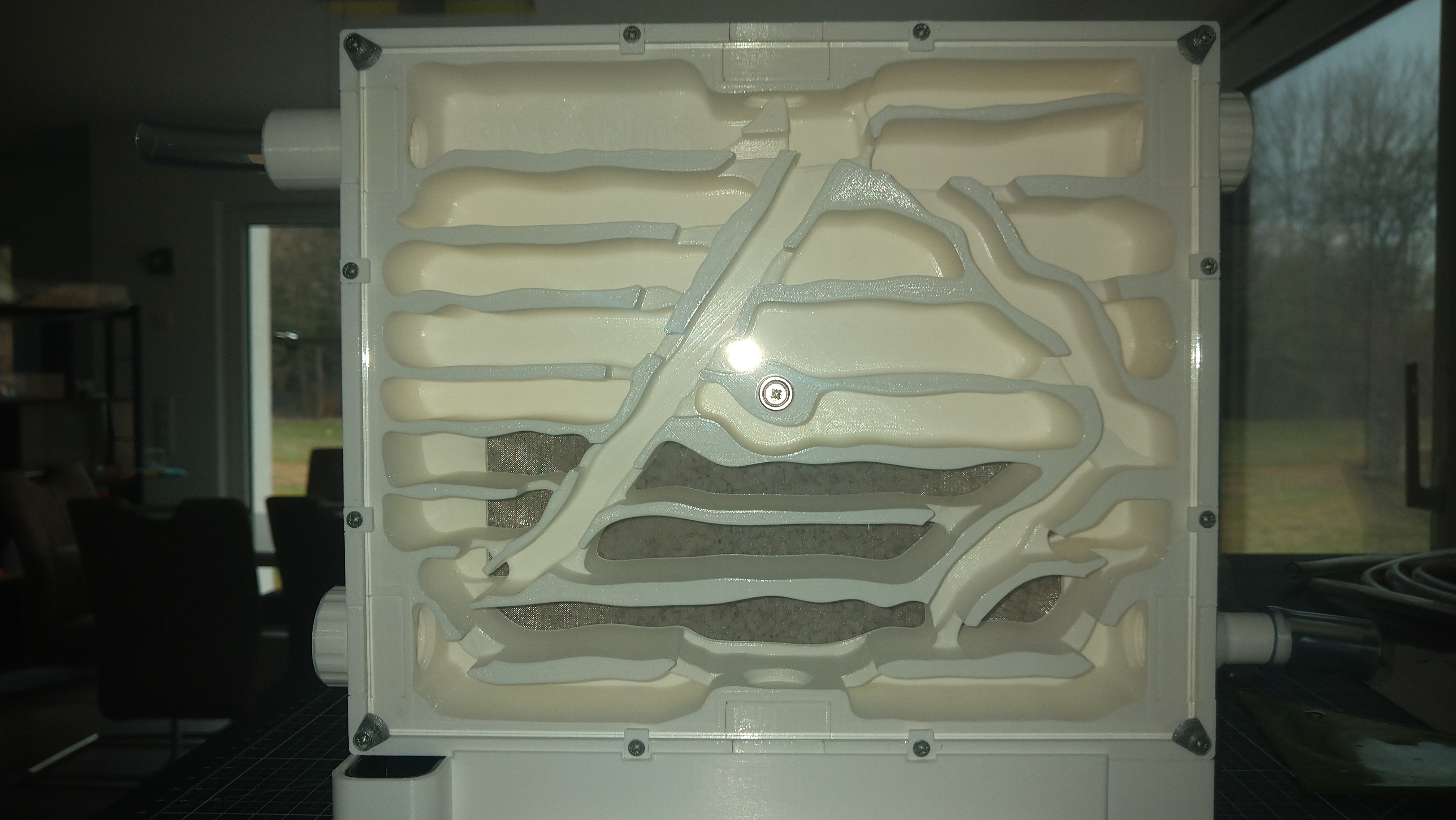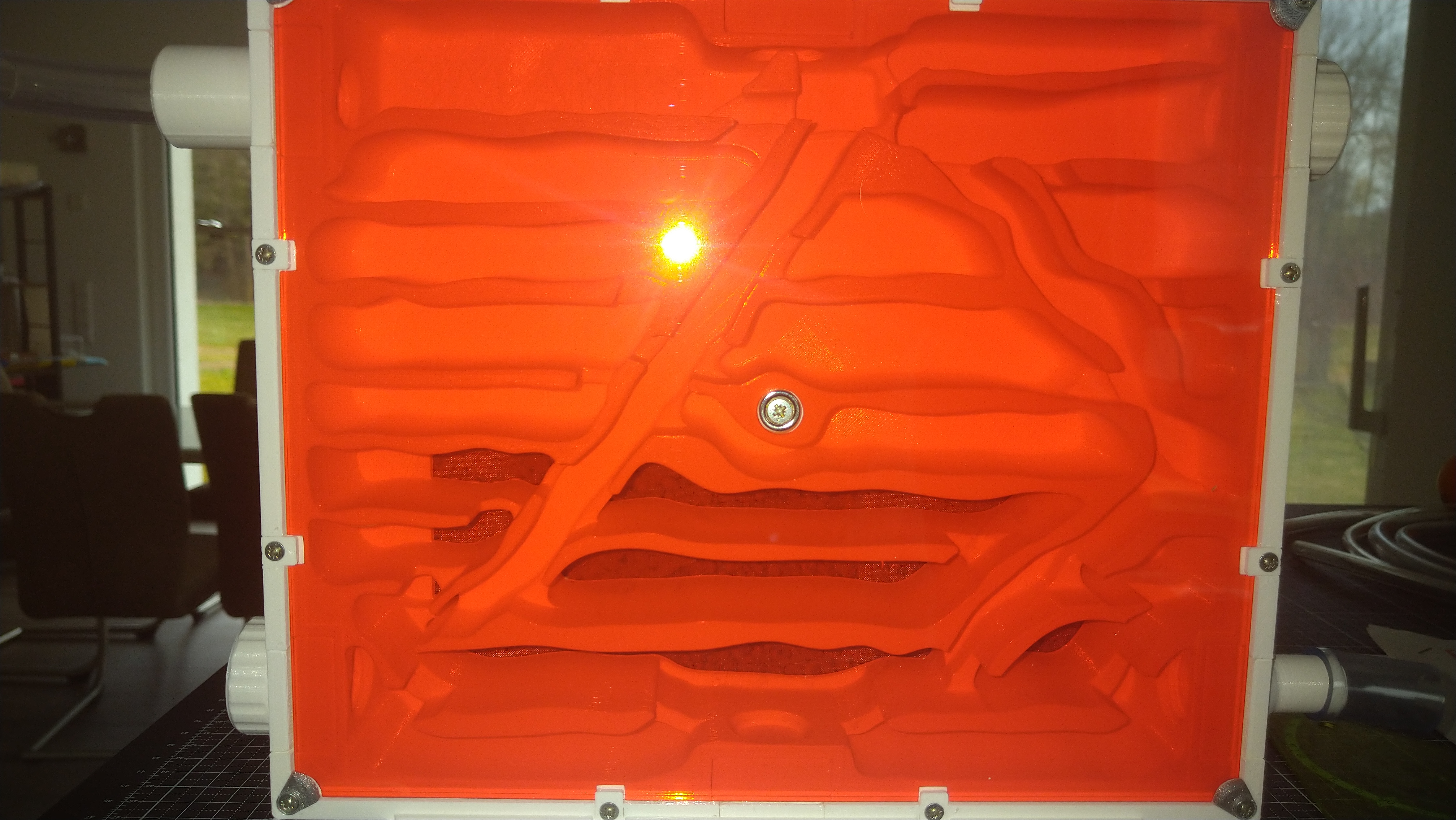 Geplant ist links oben ein 14mm Schlauch Anschluss, links unten und rechts oben habe ich eine BelĂĽftungsverschraubung mit Gaze angebracht. Rechts unten dann eine Verschraubung fĂĽr einen 18mm Schlauch an den vielleicht mal gespiegelt das zweite Skyline Nest angeschlossen wird.
