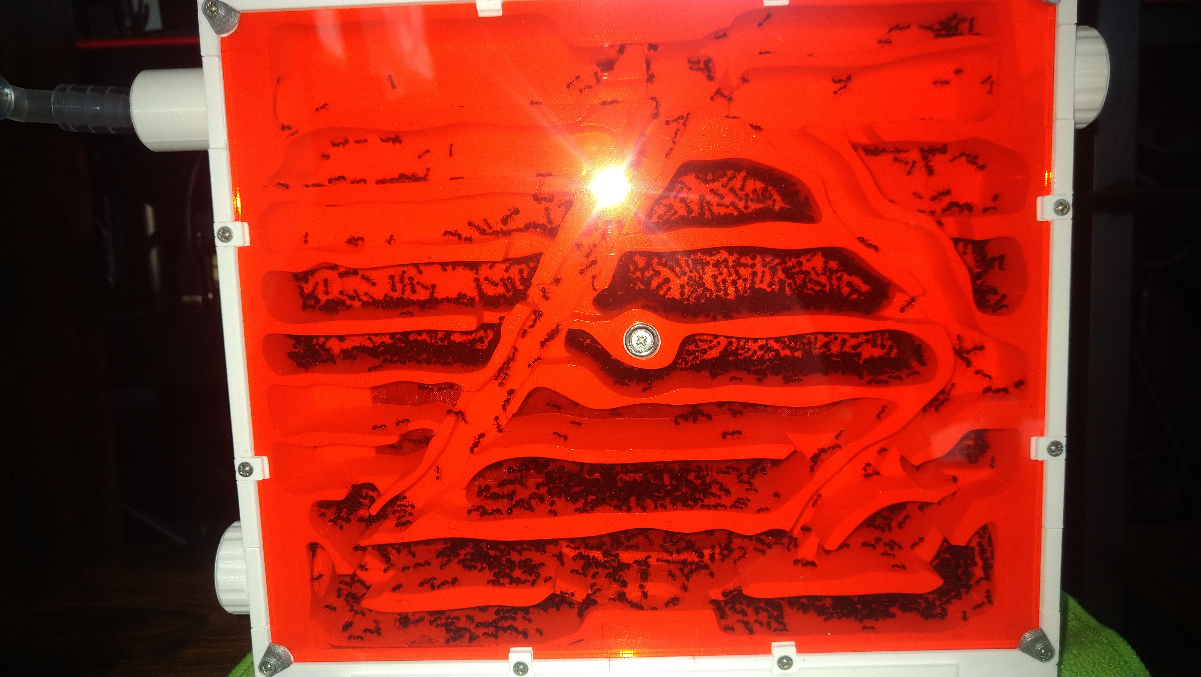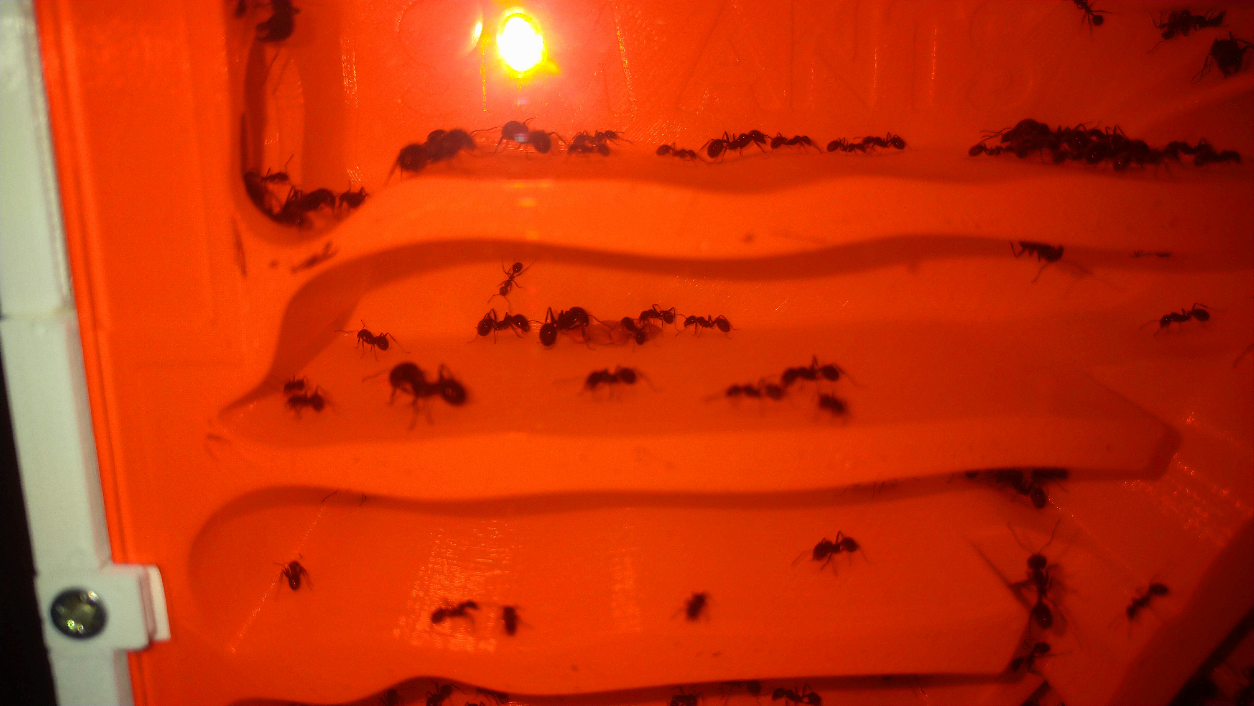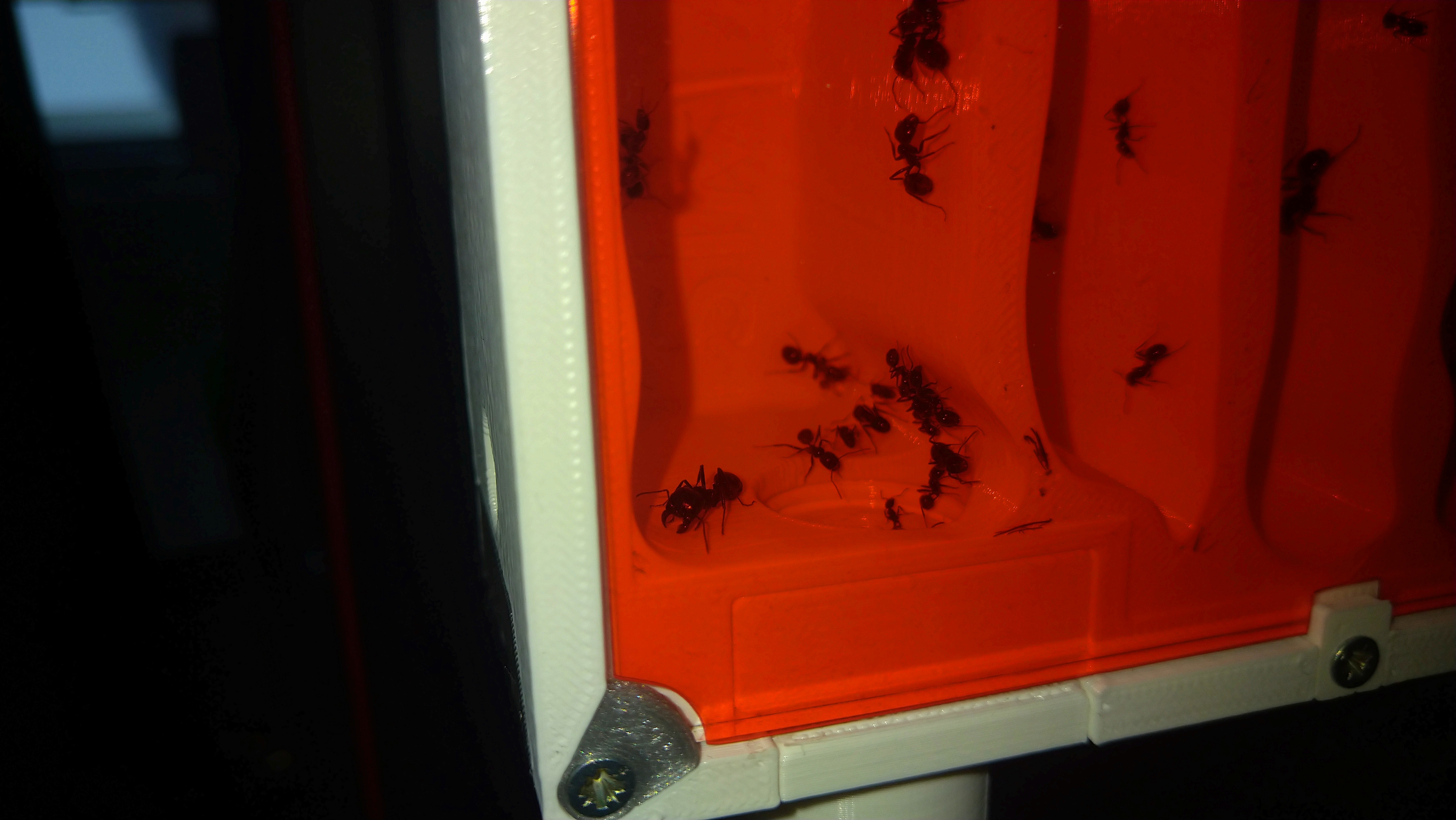 An den 3D gedruckten Wänden und Decken scheinen sie aber gut halt zu haben. Was man nicht so gut auf den Bildern sieht. Die vollen Kammern sind auch an der Kammerdecke komplett besetzt.