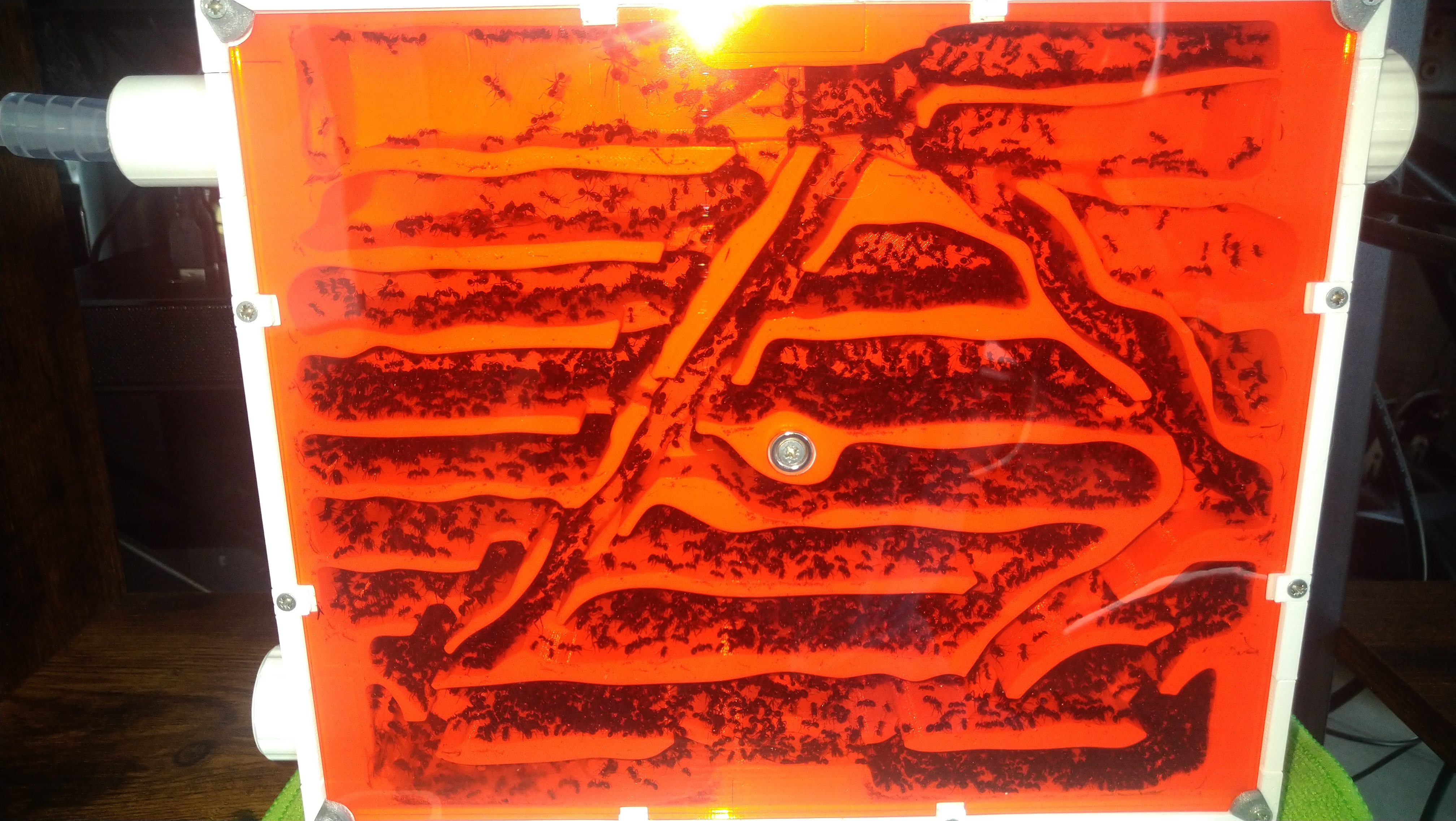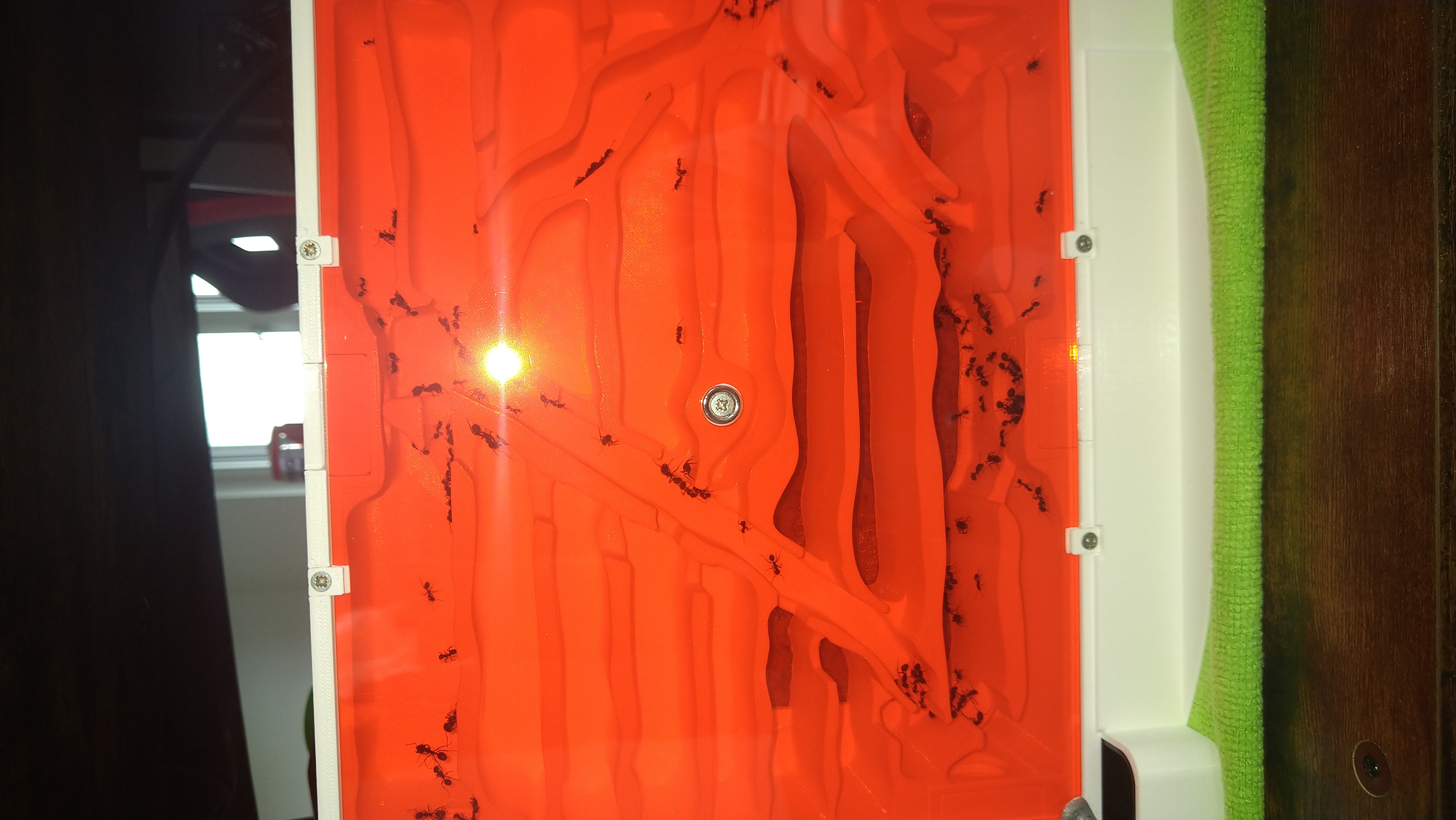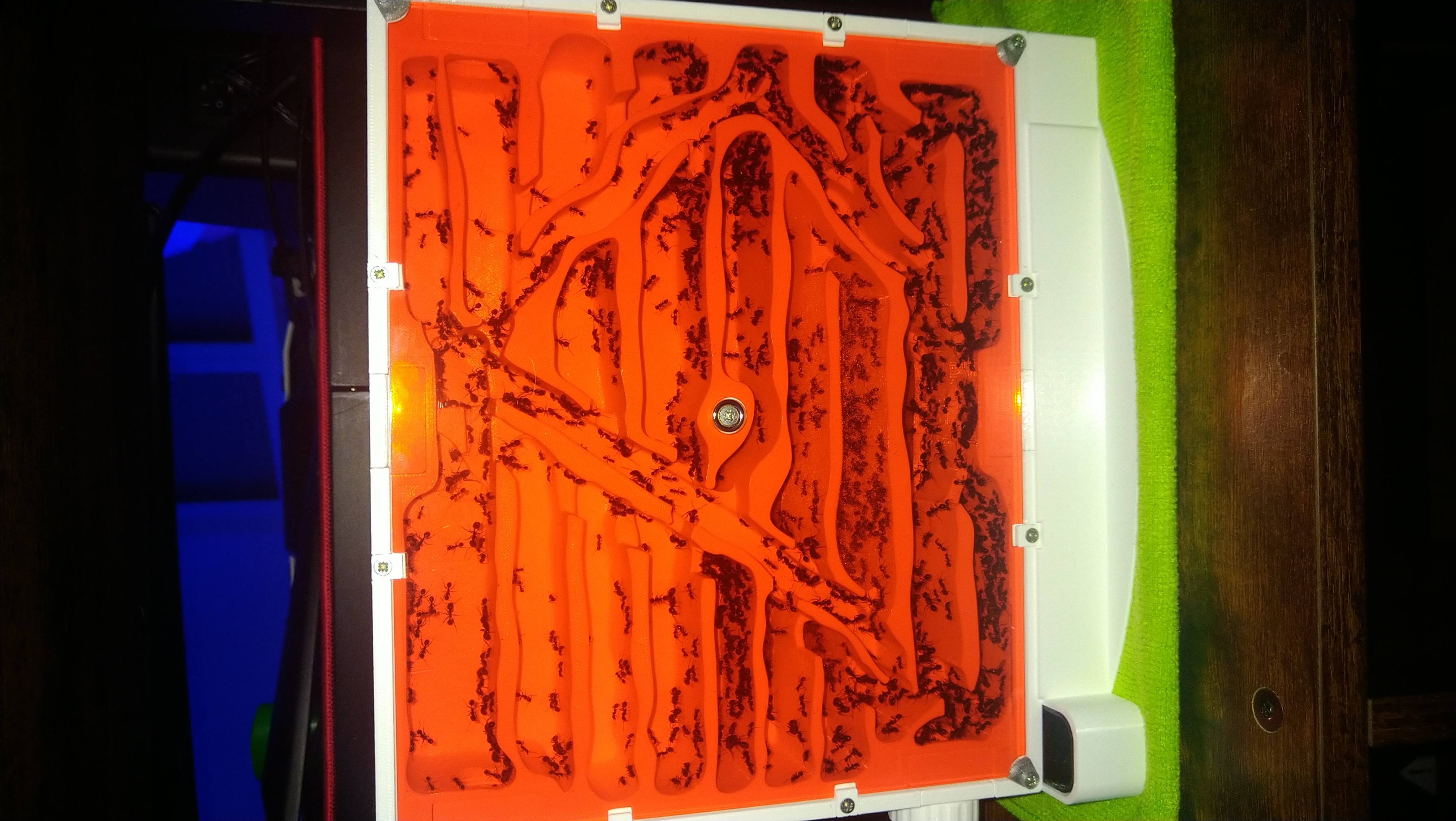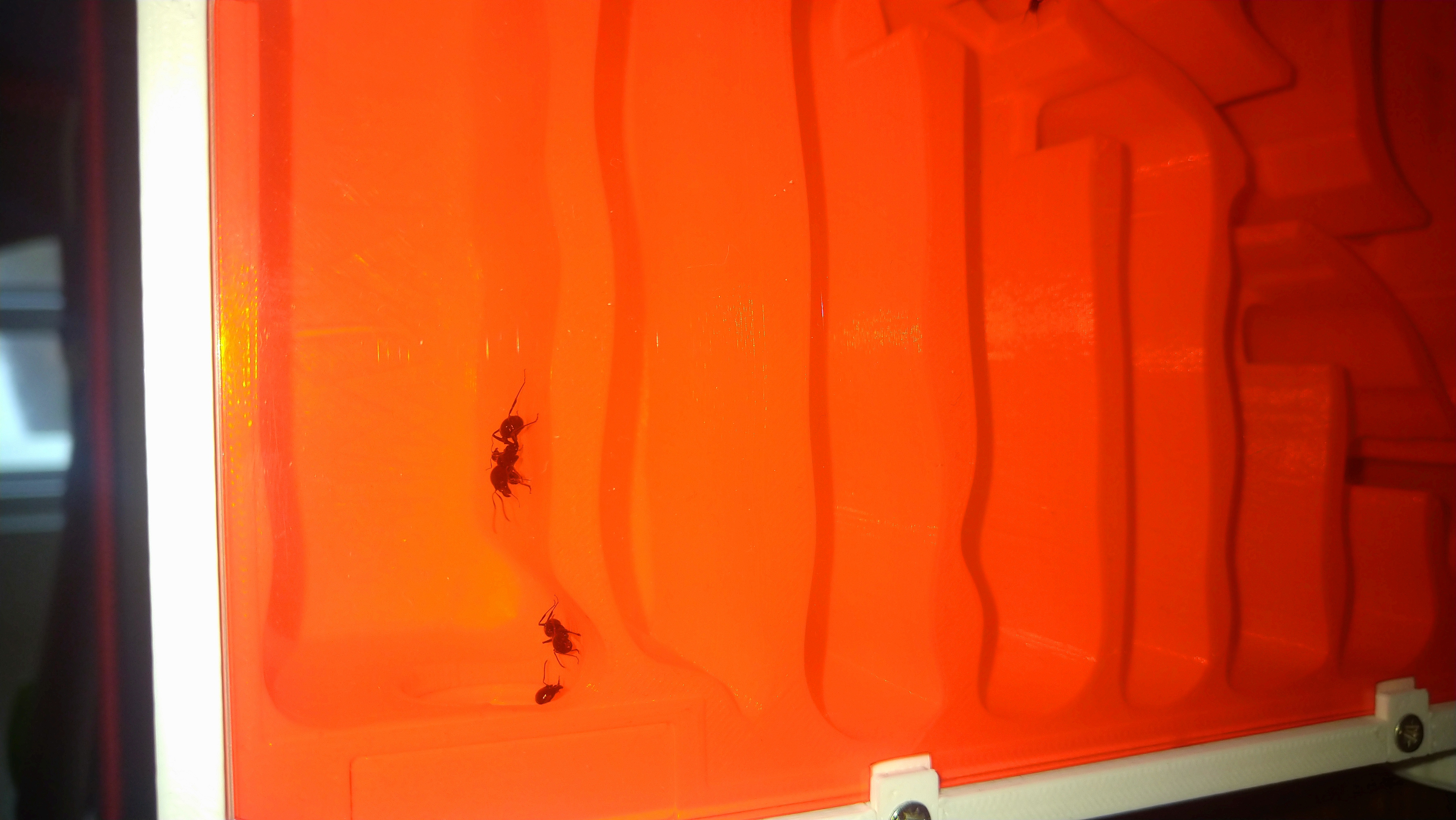 An den 3D gedruckten Wänden und Decken scheinen sie aber gut halt zu haben. Was man nicht so gut auf den Bildern sieht. Die vollen Kammern sind auch an der Kammerdecke komplett besetzt.
