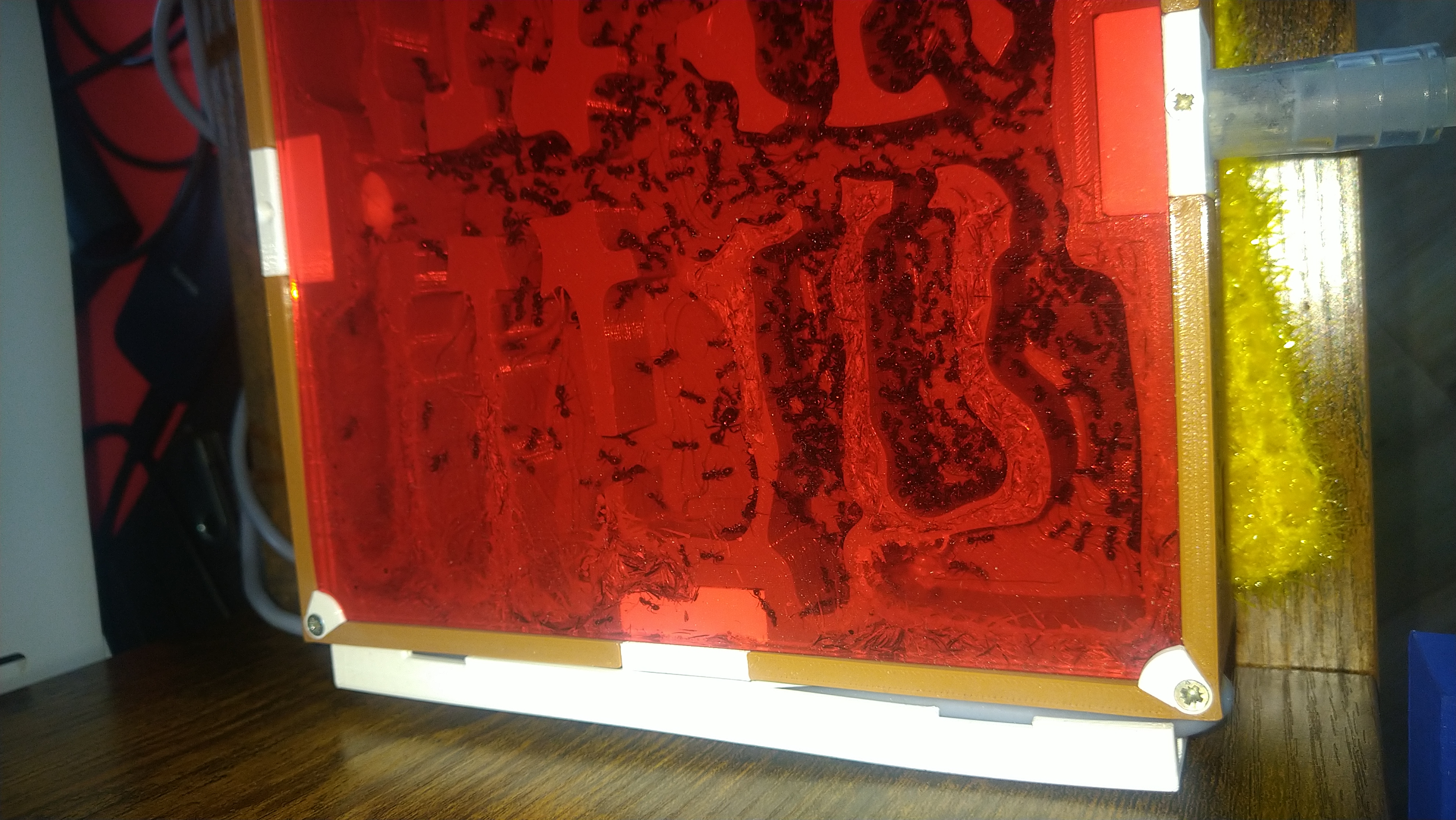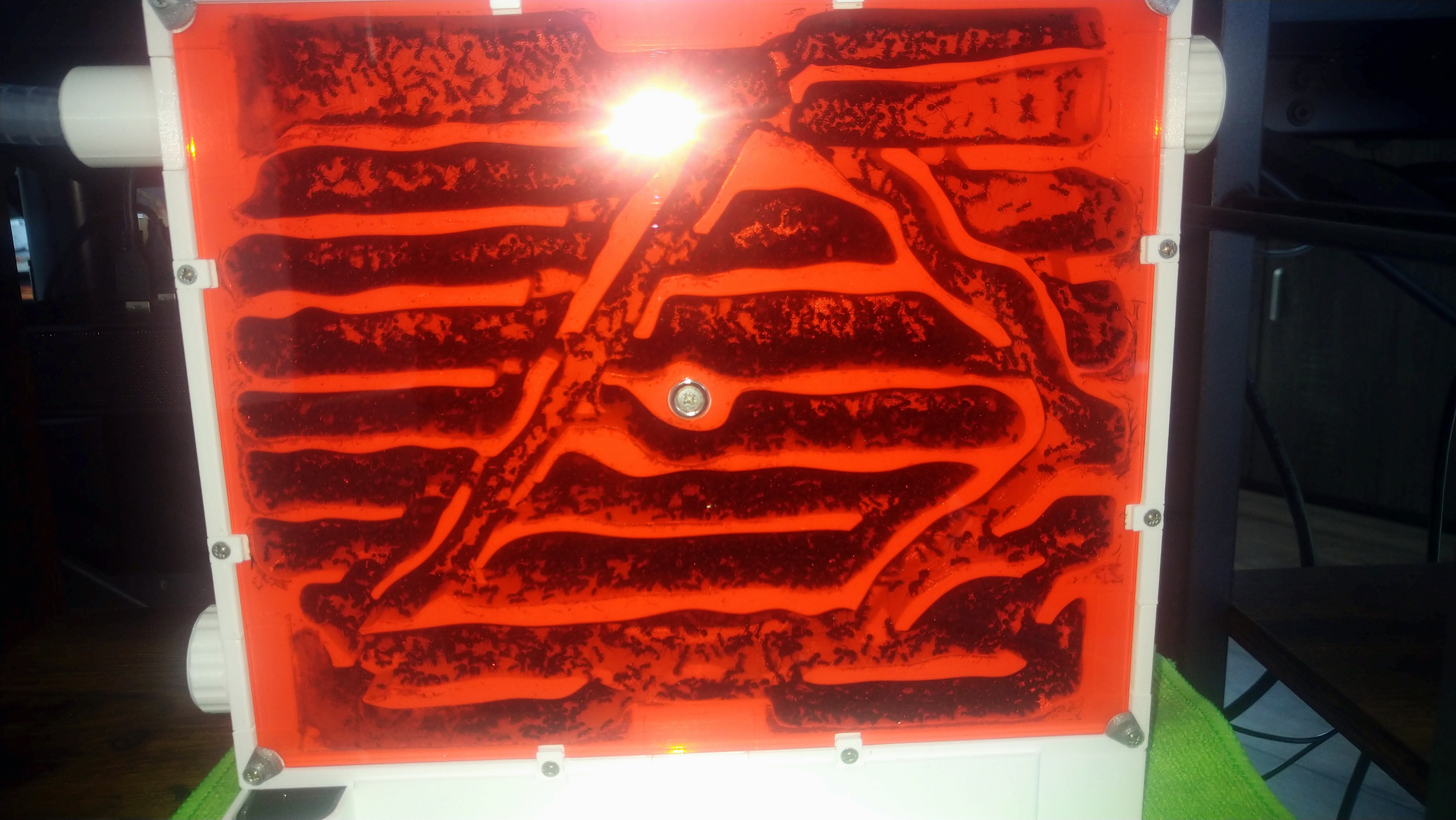 Das Nest ist voll... Ich hoffe nur es hält. Sonst muss ich es abkoppeln und irgendwie alle Ameisen in die Arenen verfrachten. Das wäre echt übel da ich dahingehend noch keinerlei Erfahrung habe da es bislang ja nie Probleme gab und ich auch nie was zurück bauen musste.