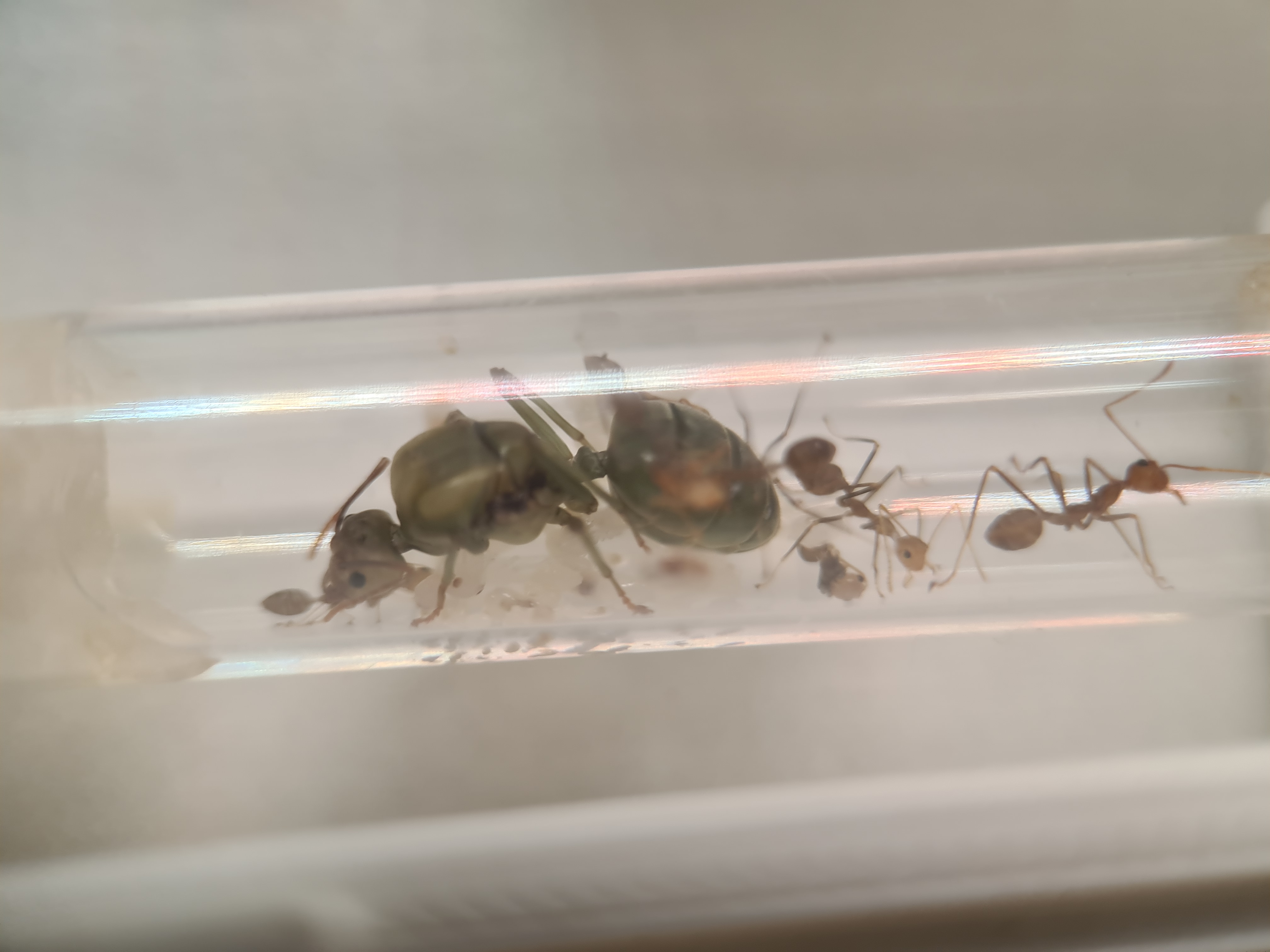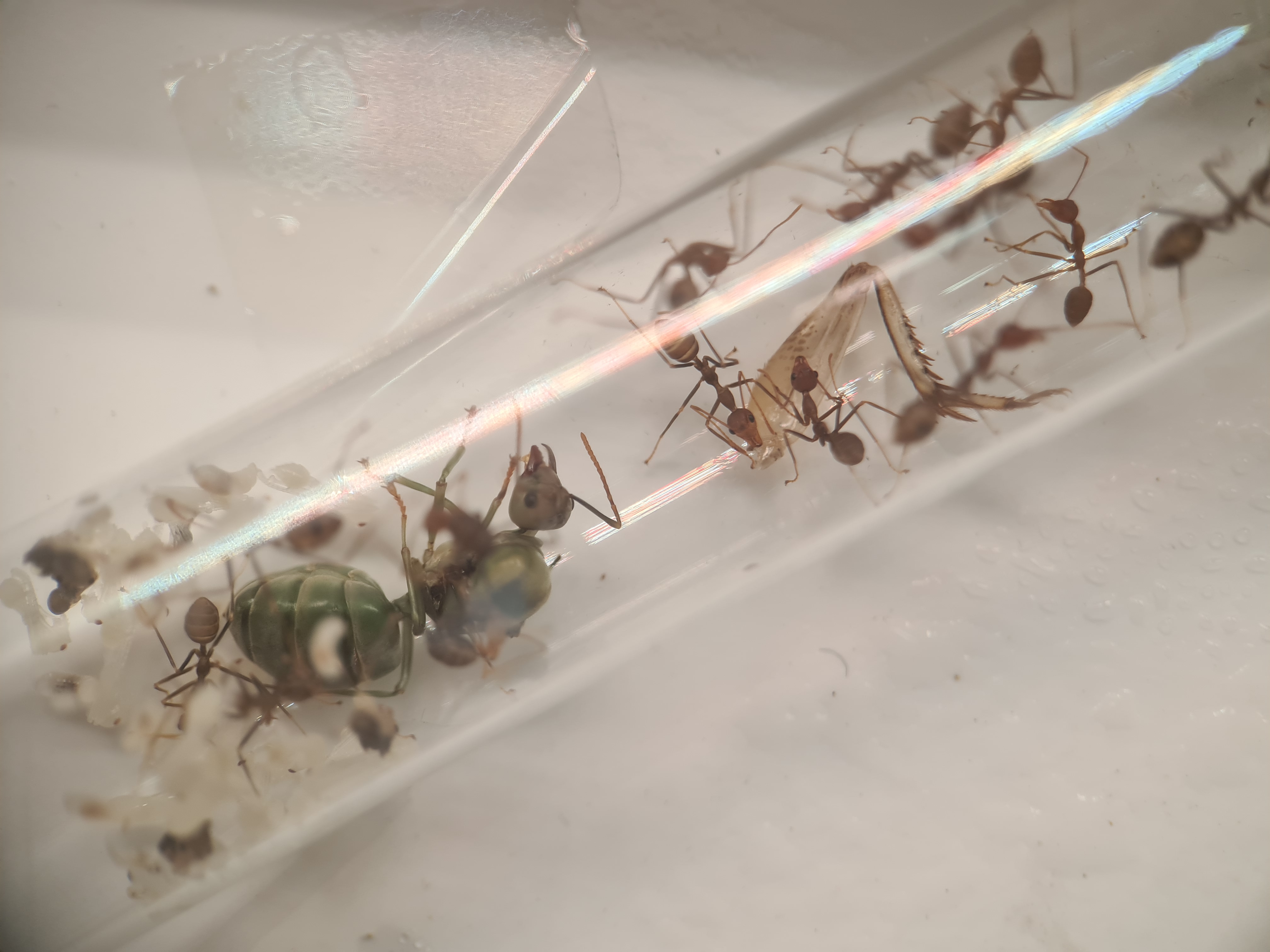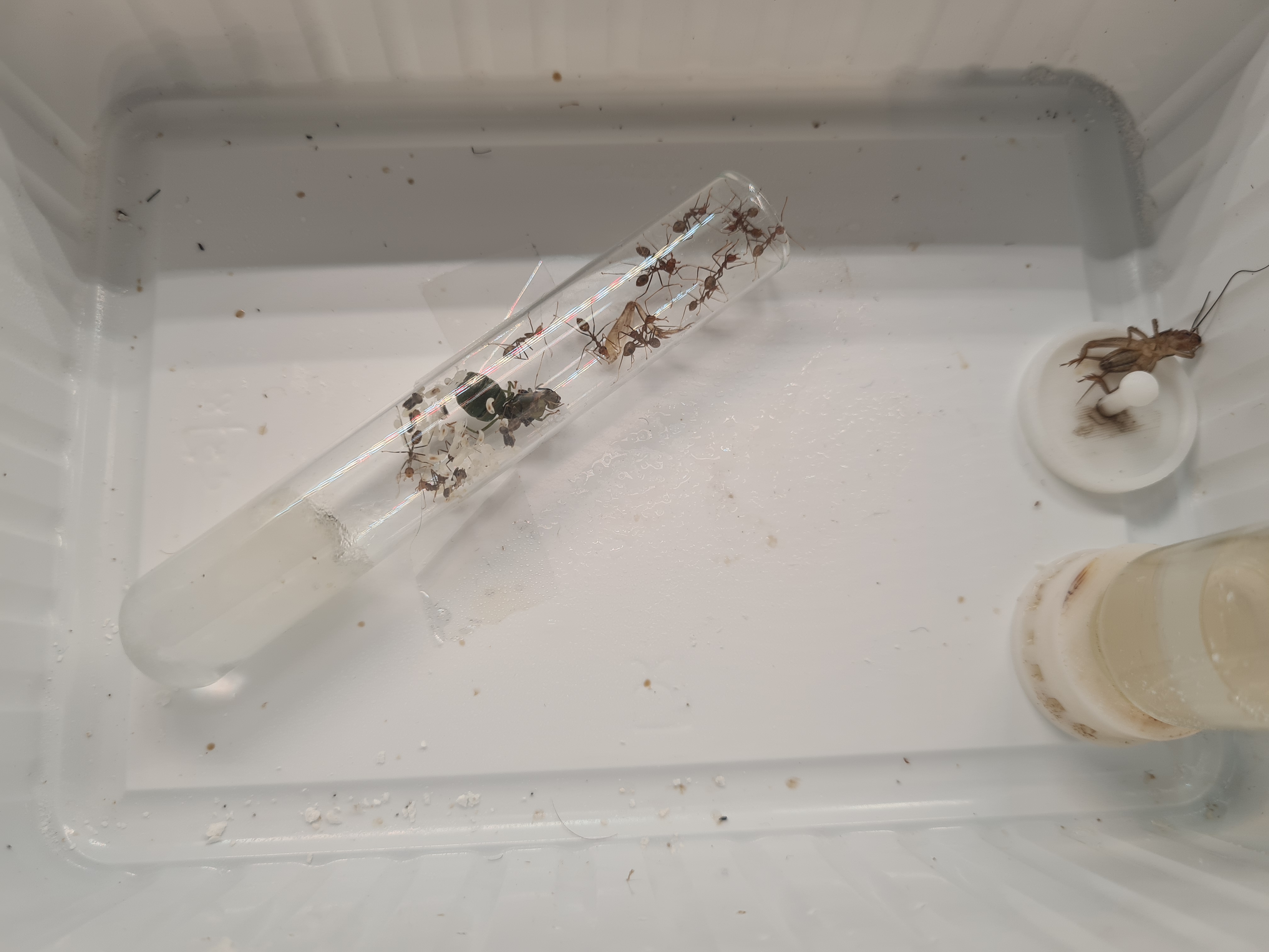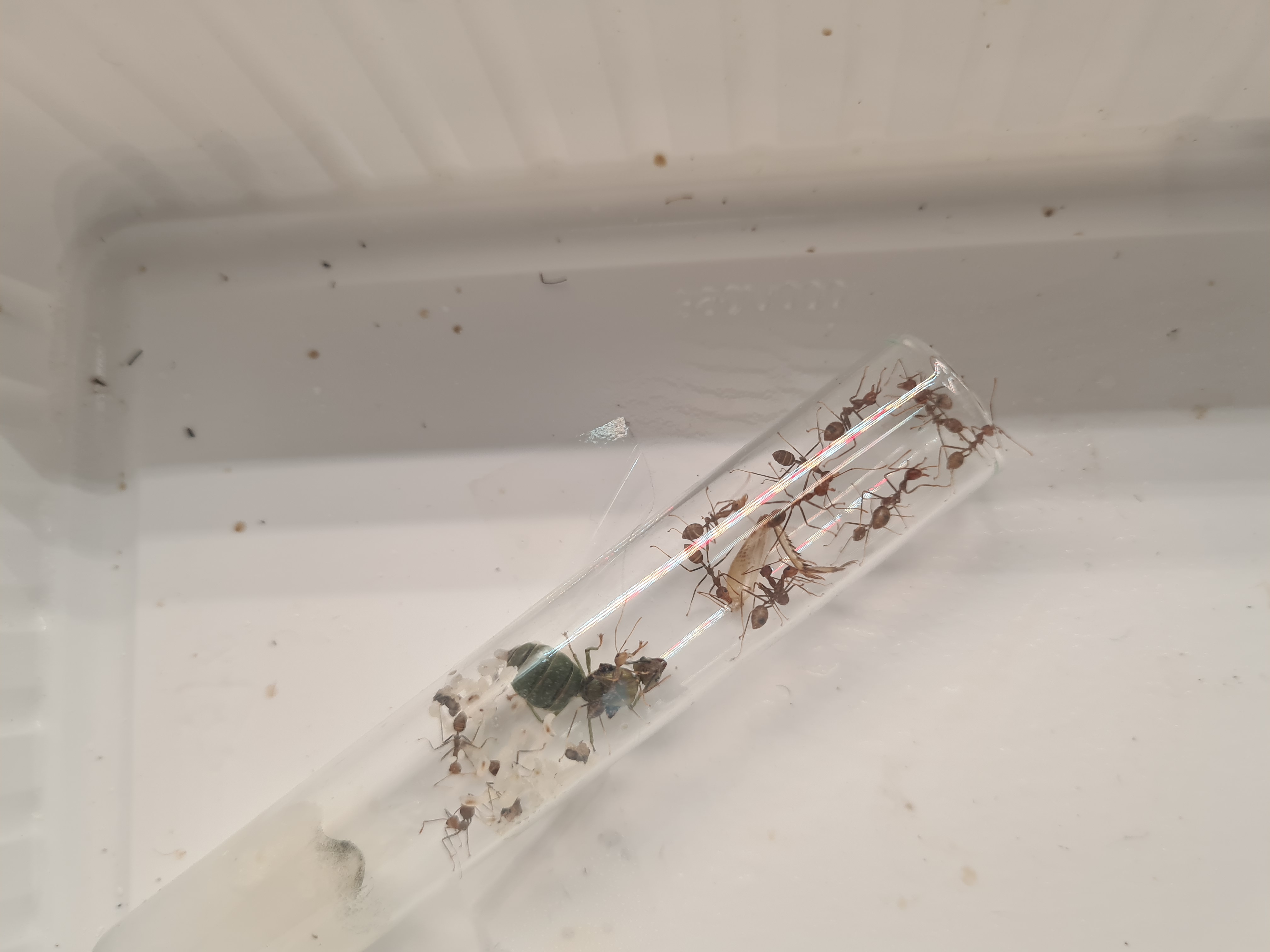 Ich habe das Reagenzglas um ca. 10Uhr rein gesetzt und sie waren erstmal erkunden (haben zum Glück bisher keine Schwachstelle gefunden).