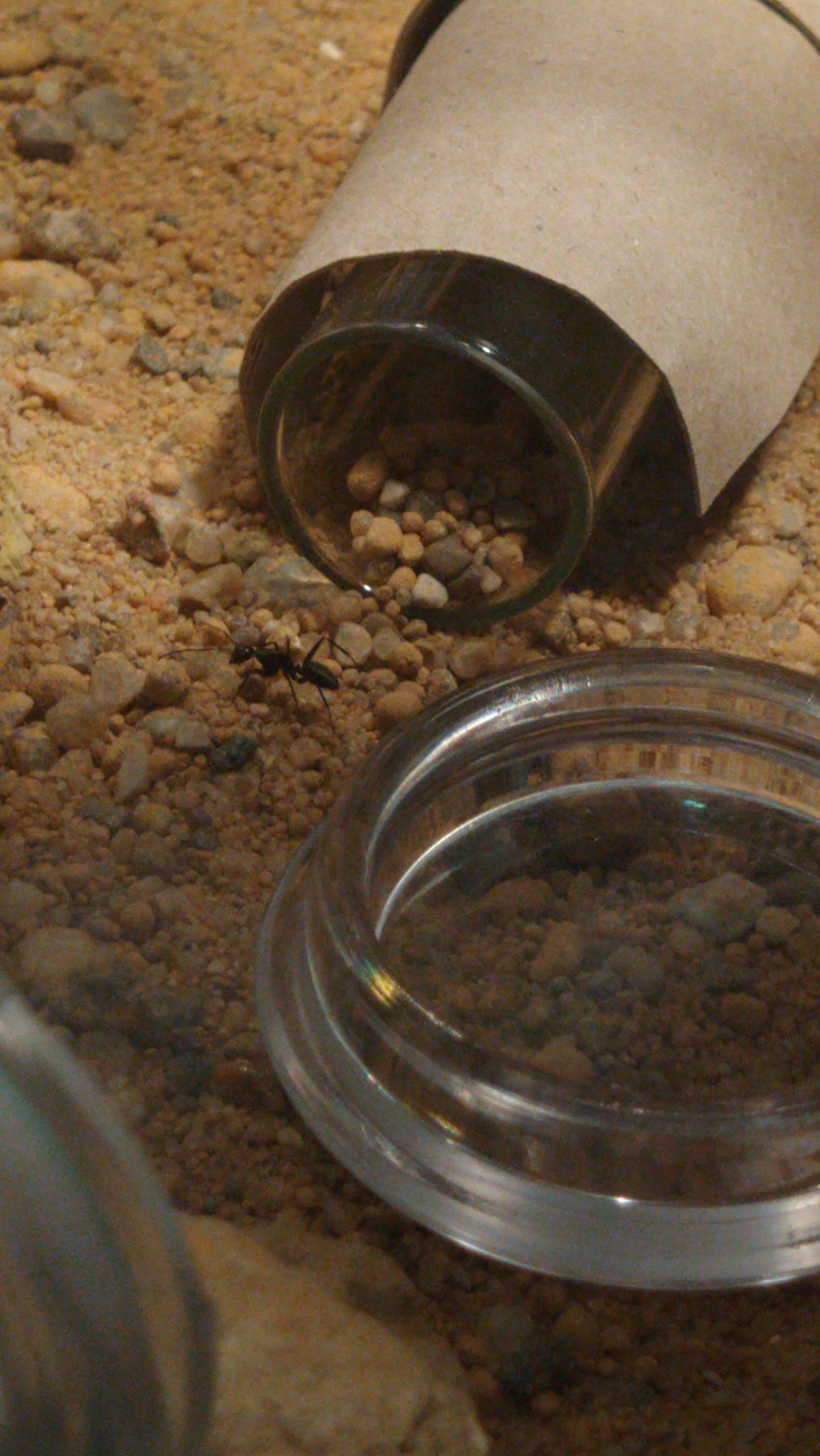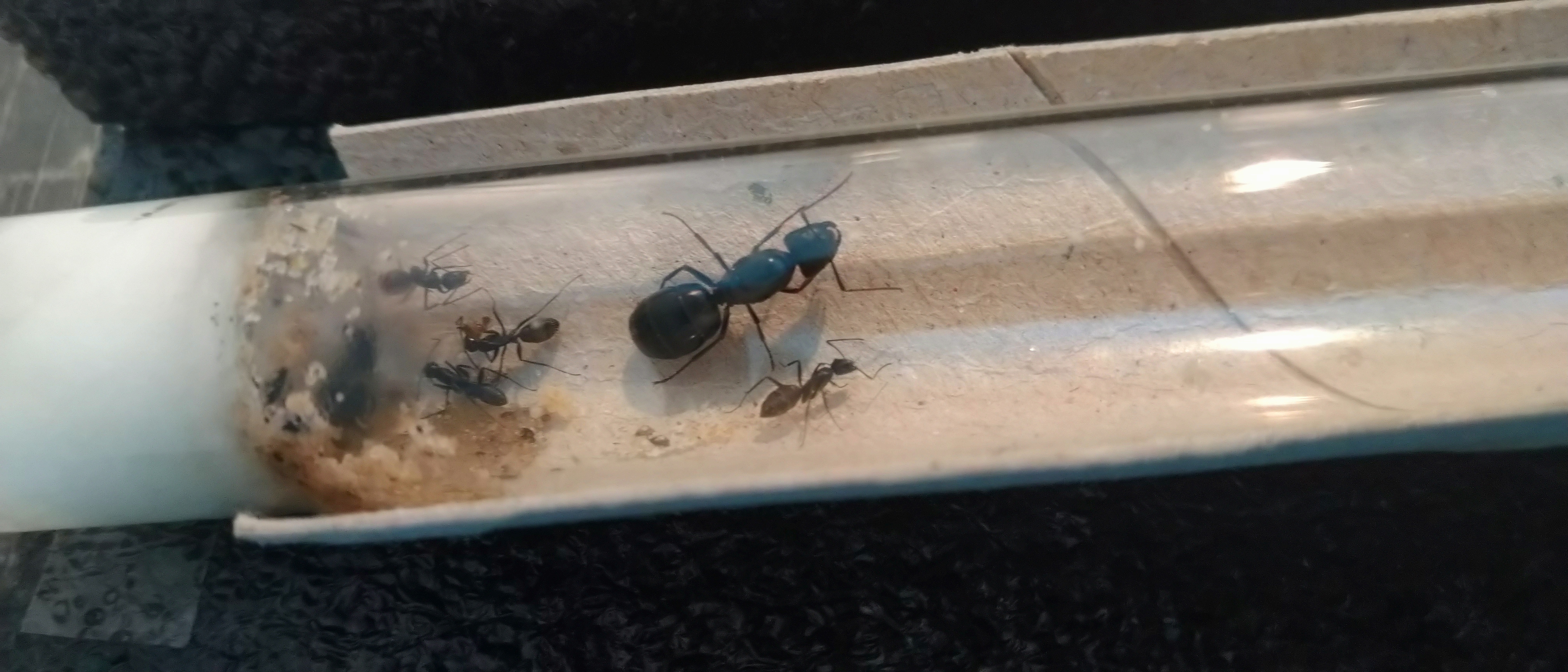Den kleinen Mist und Spielerei hab ich zusammengepackt. Macht bei meinen 5 Ameisen einfach kein Sinn. Entweder der Schlauch oder das Nest wurde mit Kadavern vermüllt (keine Chance zu reinigen) auch gibt's bei der kleinsten Berührung sofort eine Erschütterung weil alles so klein und empfindlich ist (füttern ohne Erschütterungen unmöglich).