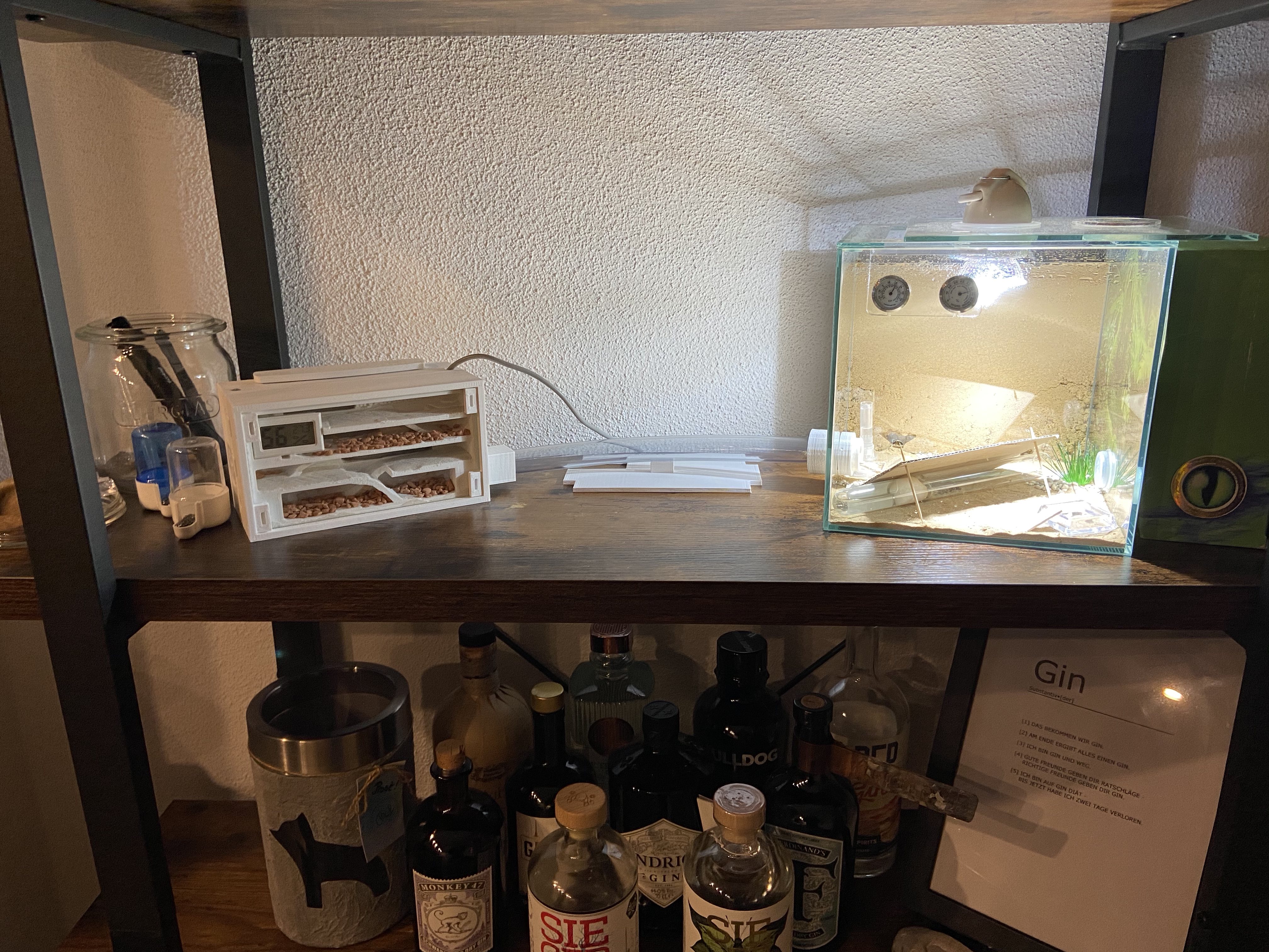 Und jetzt die wichtigste Frage, dafür aber nochmal ein Bild meines Lineups (und einem kleinen Teil meiner Gins!): Wieso gehen die Ameisen nicht in den Schlauch???