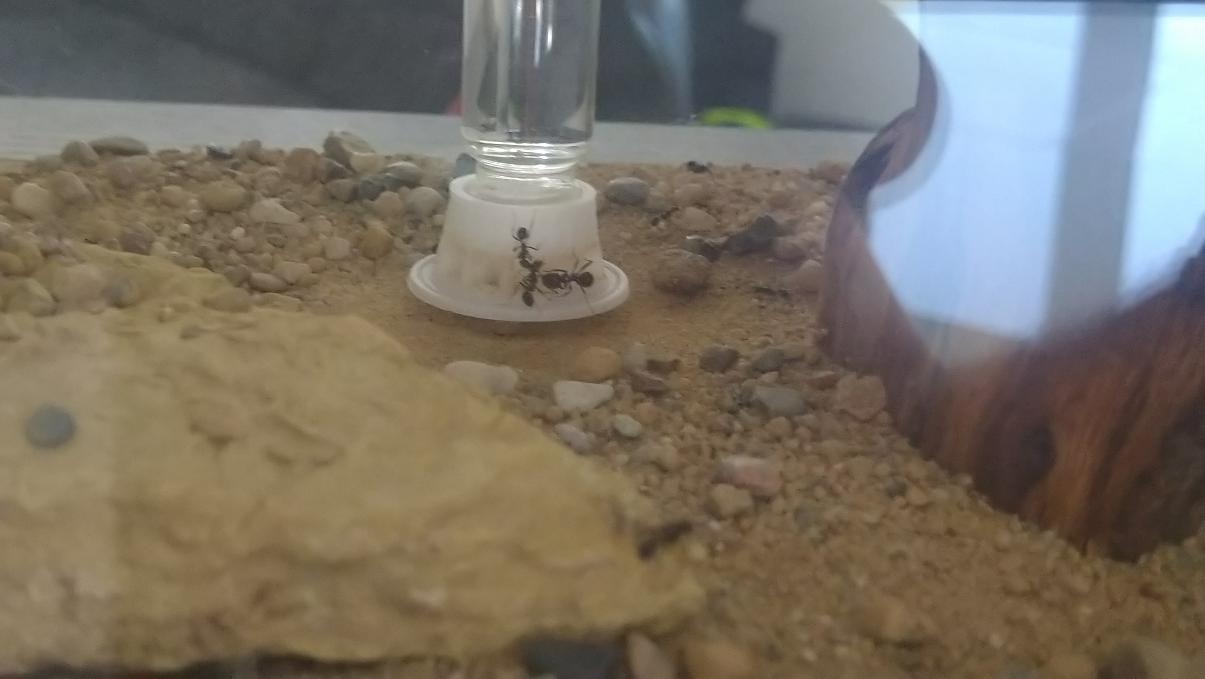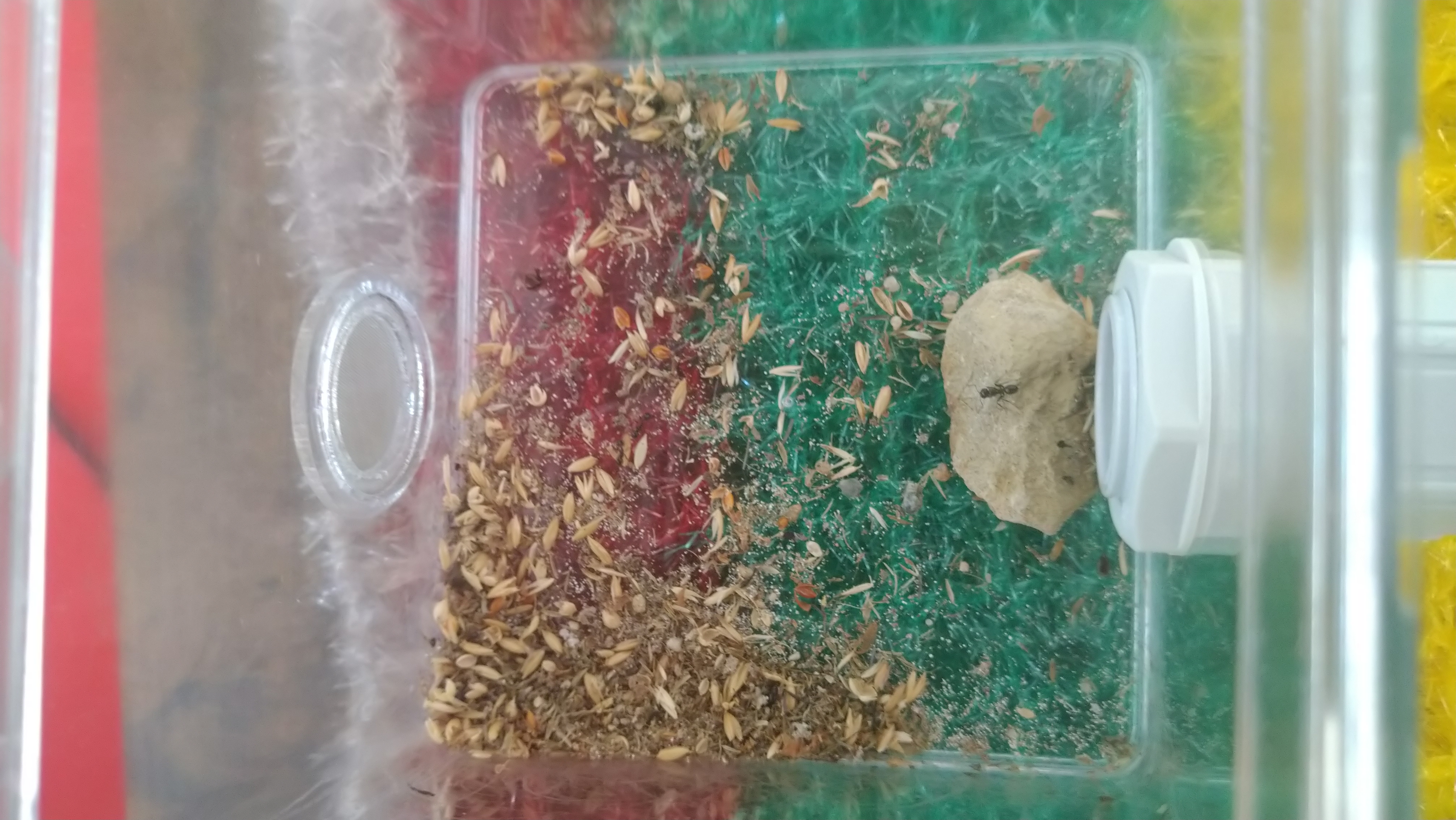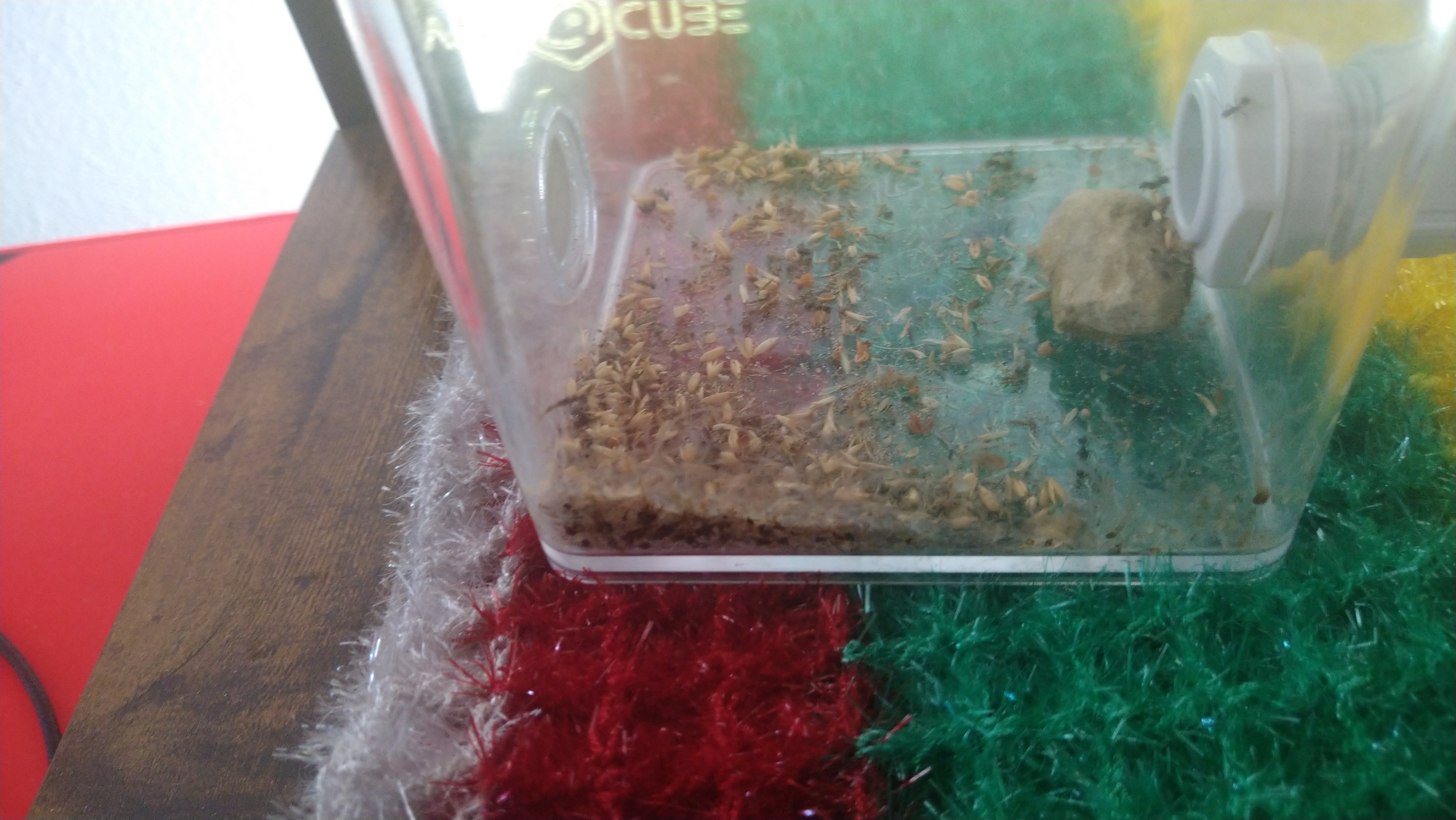 Allerdings hat man mich im kollektiv wieder überlistet. Zu Beginn hat man schön die Körnchen den Ästen entlang abtransportiert (die ersten Tage) . Um Zeit zu sparen ist man dann auf Kamikaze umgestiegen, jede greift sich ein Korn und lässt sich dann einfach fallenso hatte ich ein paar Tage jetzt immer plumsende Arbeiterinnen die ohne Fallschirm aber mit Korn zu Boden sprangen