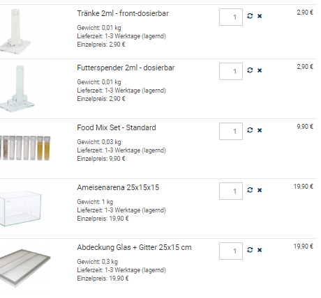 Den Food mix würde ich ganz weglassen, da in der Menge recht teuer und vieles davon wird kaum bis gar nicht verwertet von den Ameisen.