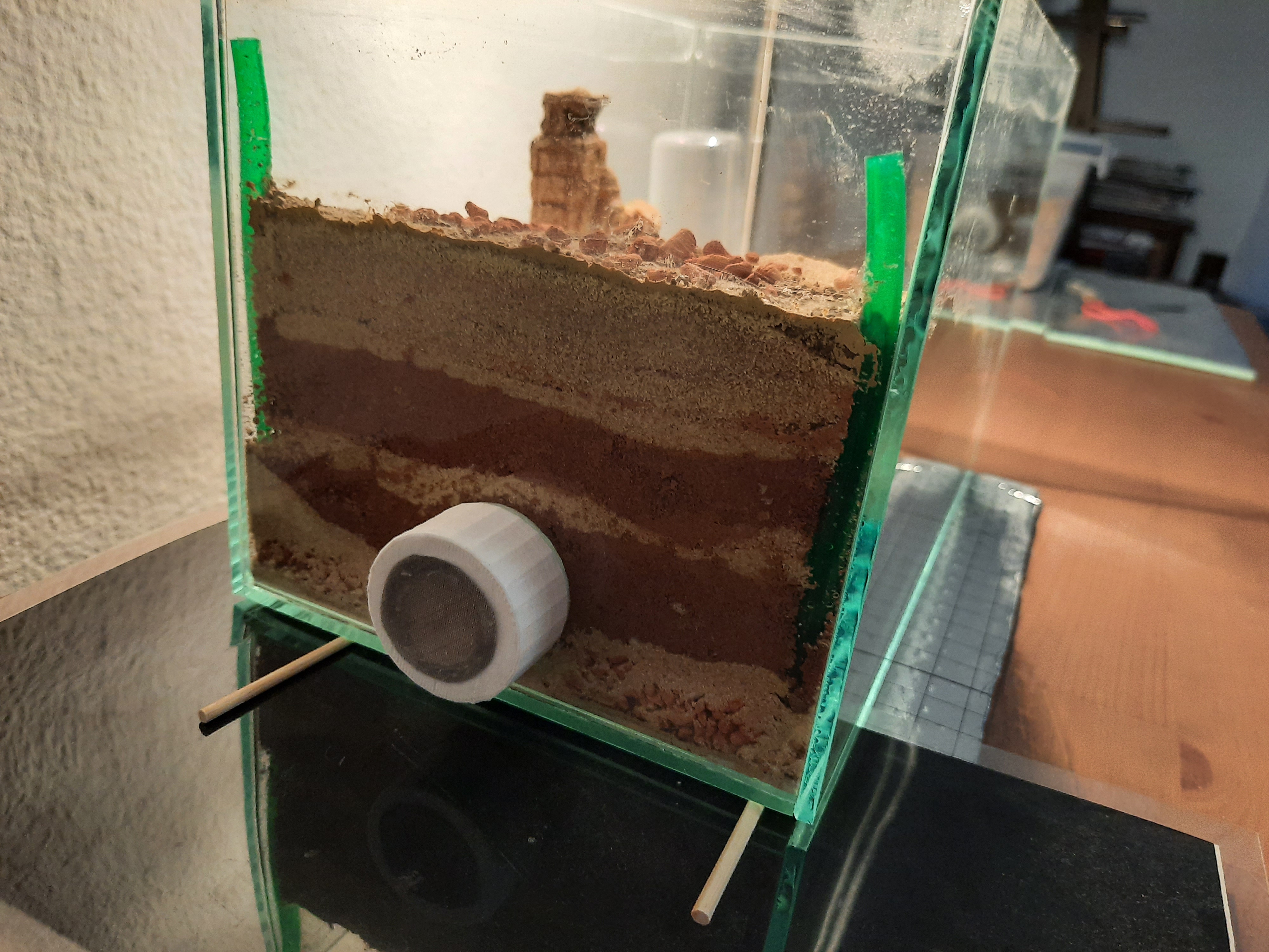 Du hast ja dein Erdnest in einer Frischhaltedose die unten rum geschlossen ist oder?
