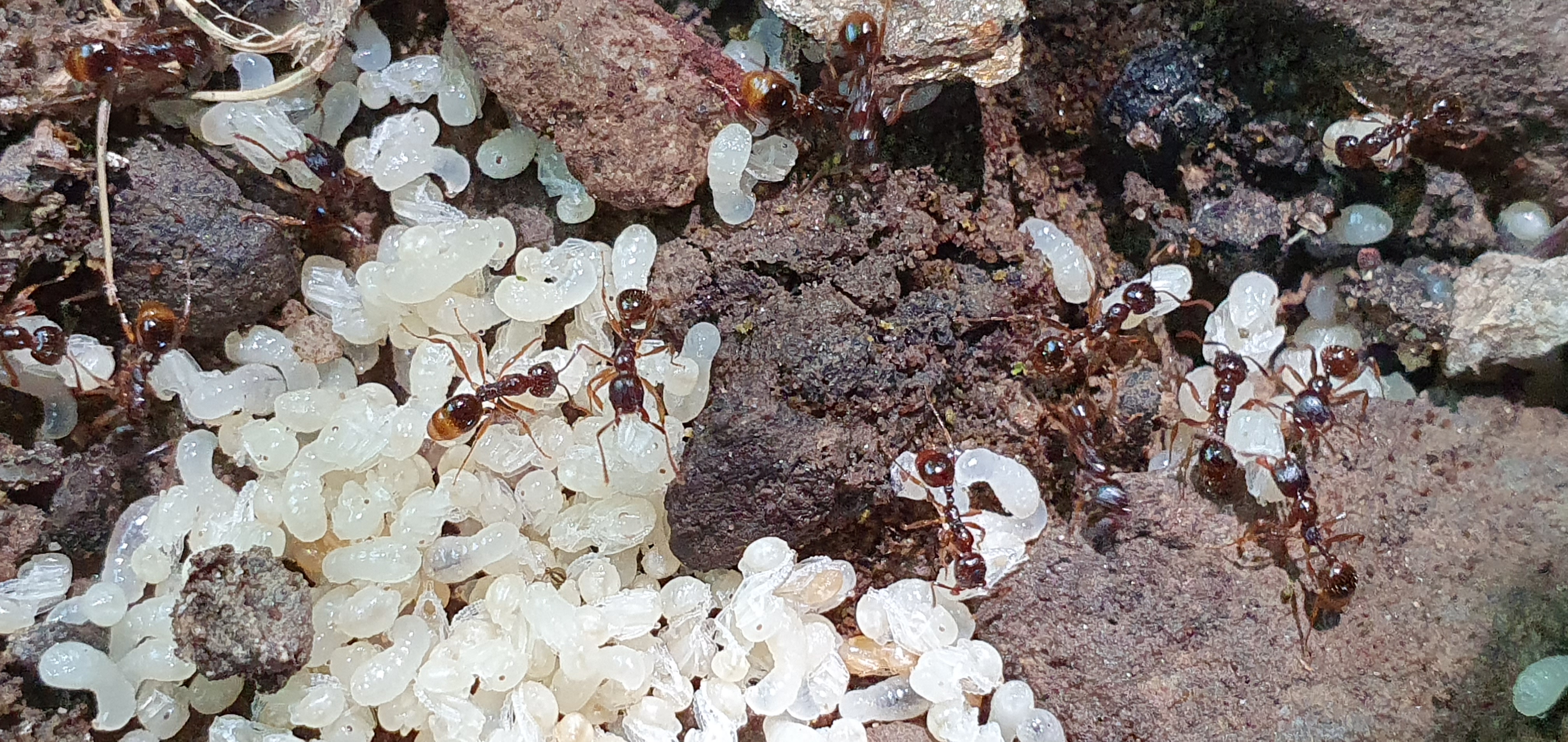 Lasius emarginatus mit Königinnenpuppen,vor etwa 8 Wochen