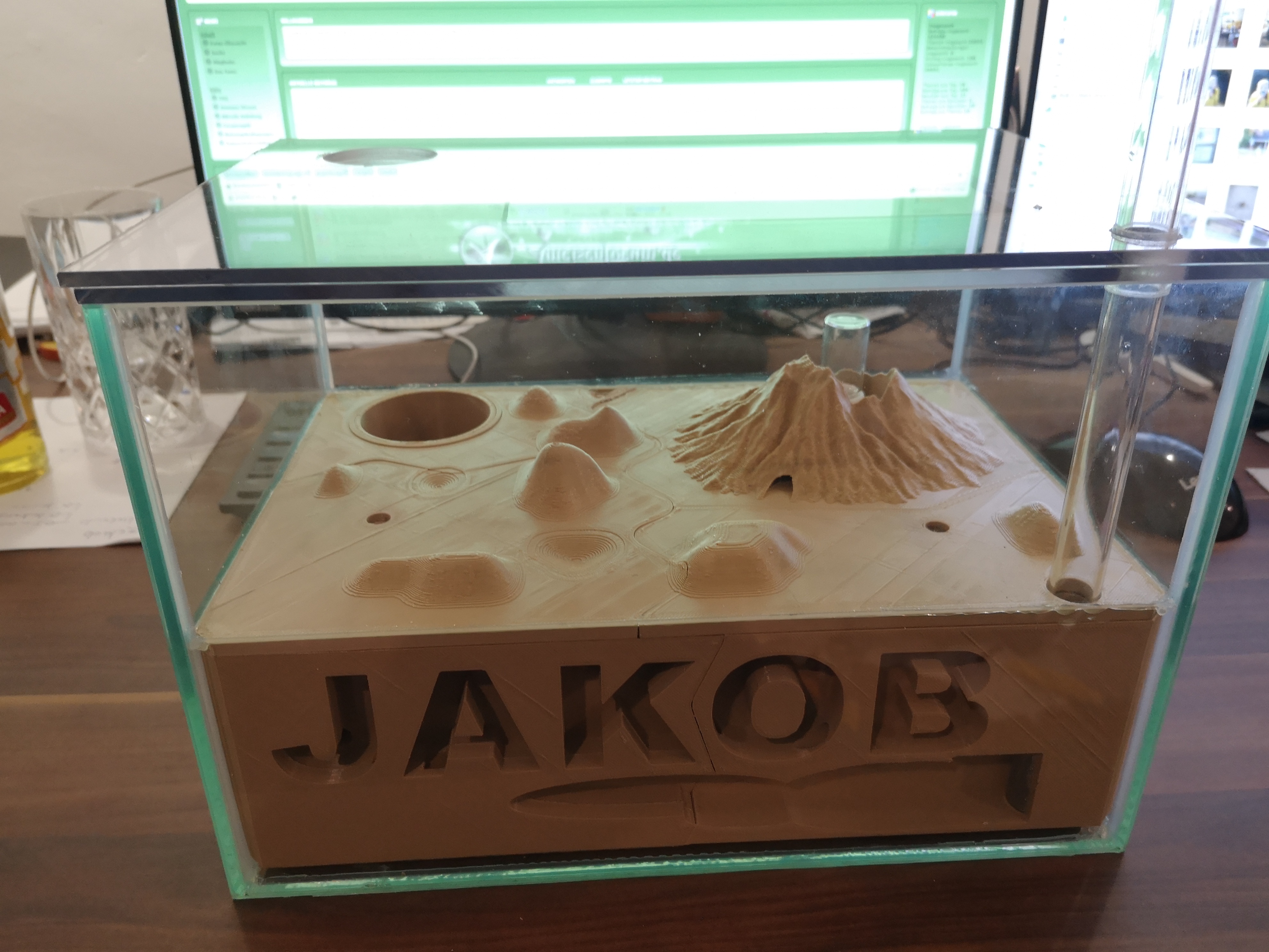 Da ich irgendwie das fable fĂĽr "mach ich selbst" habe, kam ich als erstes auf die Idee ein kleines Aquarium mit Porenbeton Nest zu bestĂĽcken. - Als ich dann aber erfahren habe, das zwei gute Freunde von mir einen 3D-Drucker hatten, war ich Feuer und Flamme!
