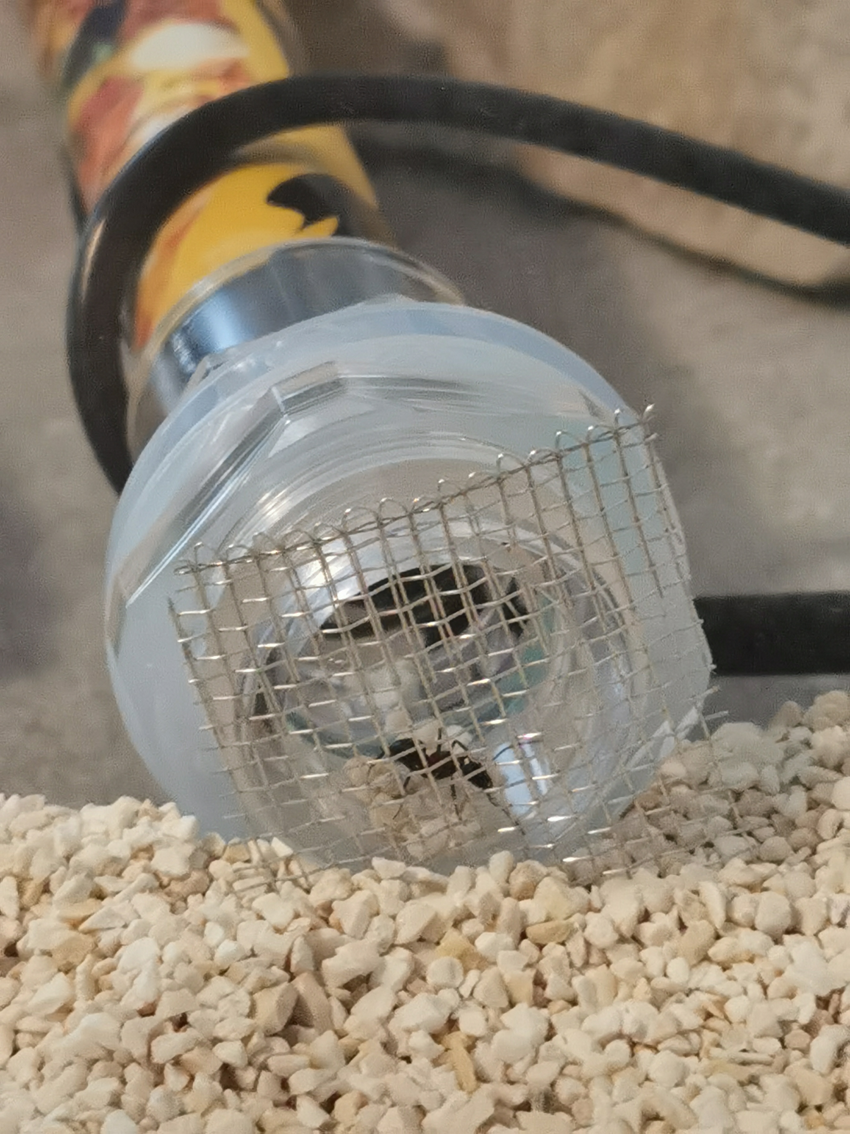 Die Lampe war Testweise drin und wurde schnell wieder entfernt, da die Hitzeentwicklung meiner Meinung nach etwas zu stark war. Ich werde die wohl erst wieder einbauen können, wenn das Nest nicht direkt an der Arena angeschlossen ist, sondern durch einen Schlauch damit verbunden ist.