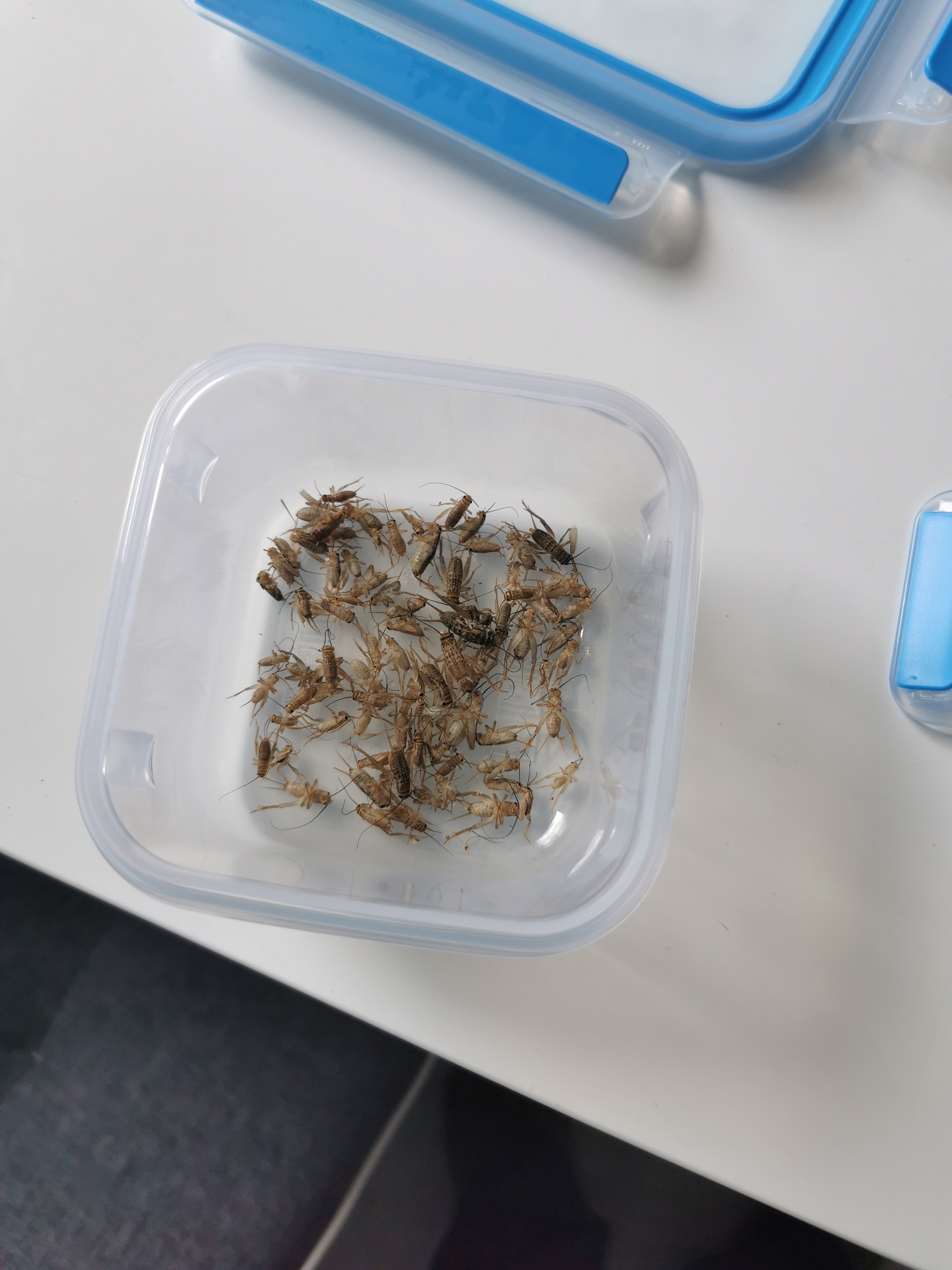 Auf der Box steht übrigens was von 120 Heimchen. Gezählt habe ich 80, also nur 2/3 der Angegebenen Menge. Ich frage mich ob das eine Ausnahme oder die Regel ist.