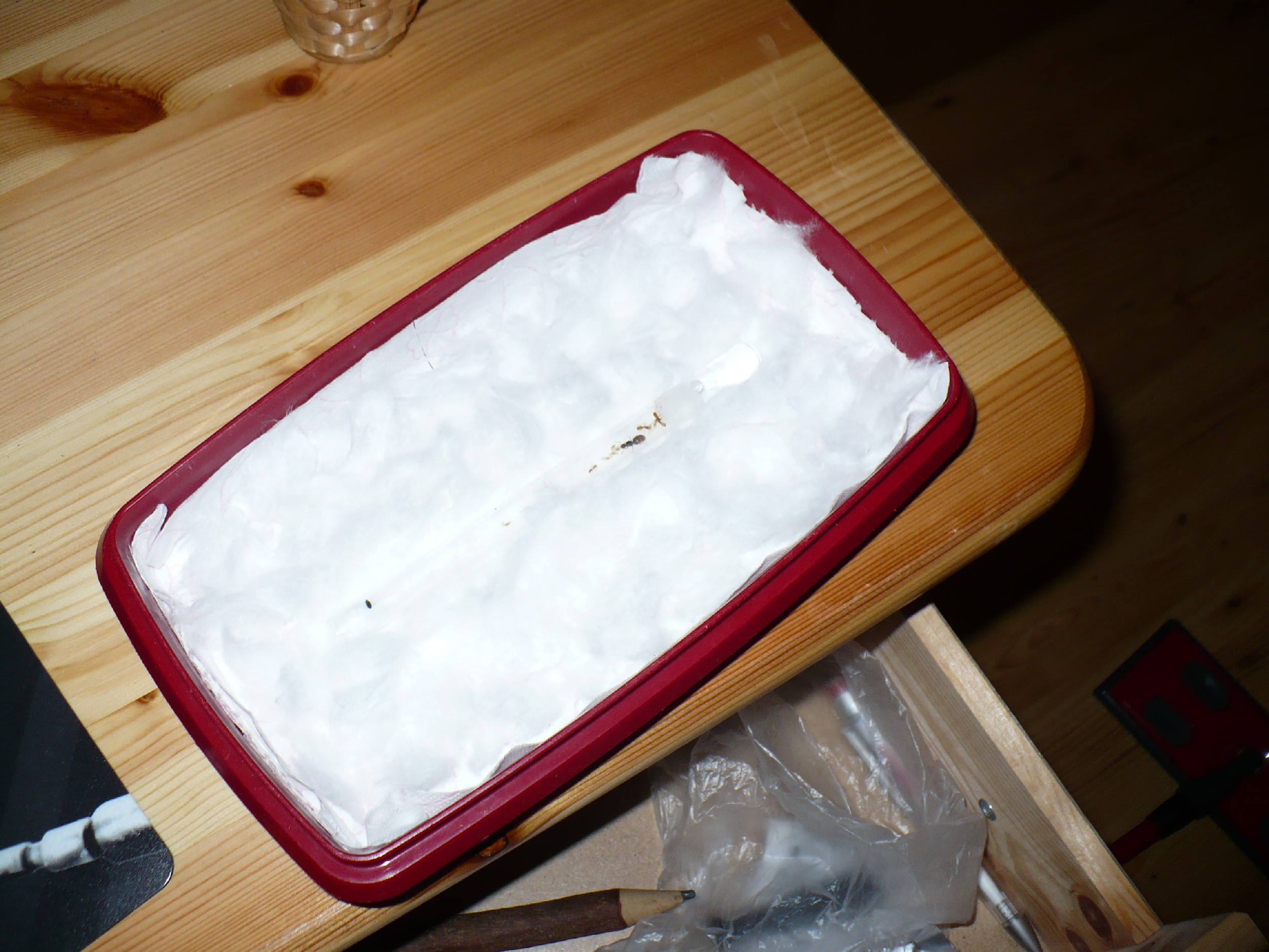 Sofort wurde Abhilfe geschaffen und ratzfatz ne Tupperdose mit Watte ausgelegt und das RG reinverfrachtet.
