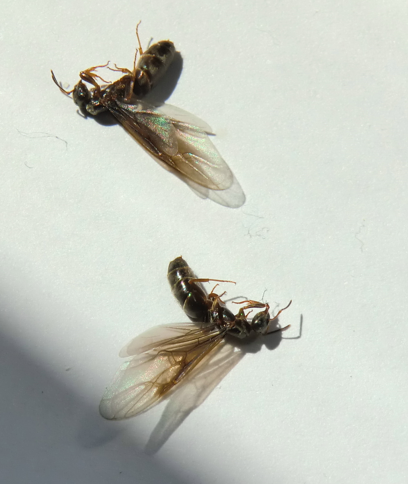 Ich finde auch das einiges fĂŒr Lasius brunneus spricht. Aber ich glaube immer noch, dass du die tote Gyne fĂŒr Lasius niger hĂ€lst. Um diesen Gedanken aus der Welt zu schaffen, wĂŒrde ich dorthin gehen, wo die Gynen aus den Ritzen kamen.