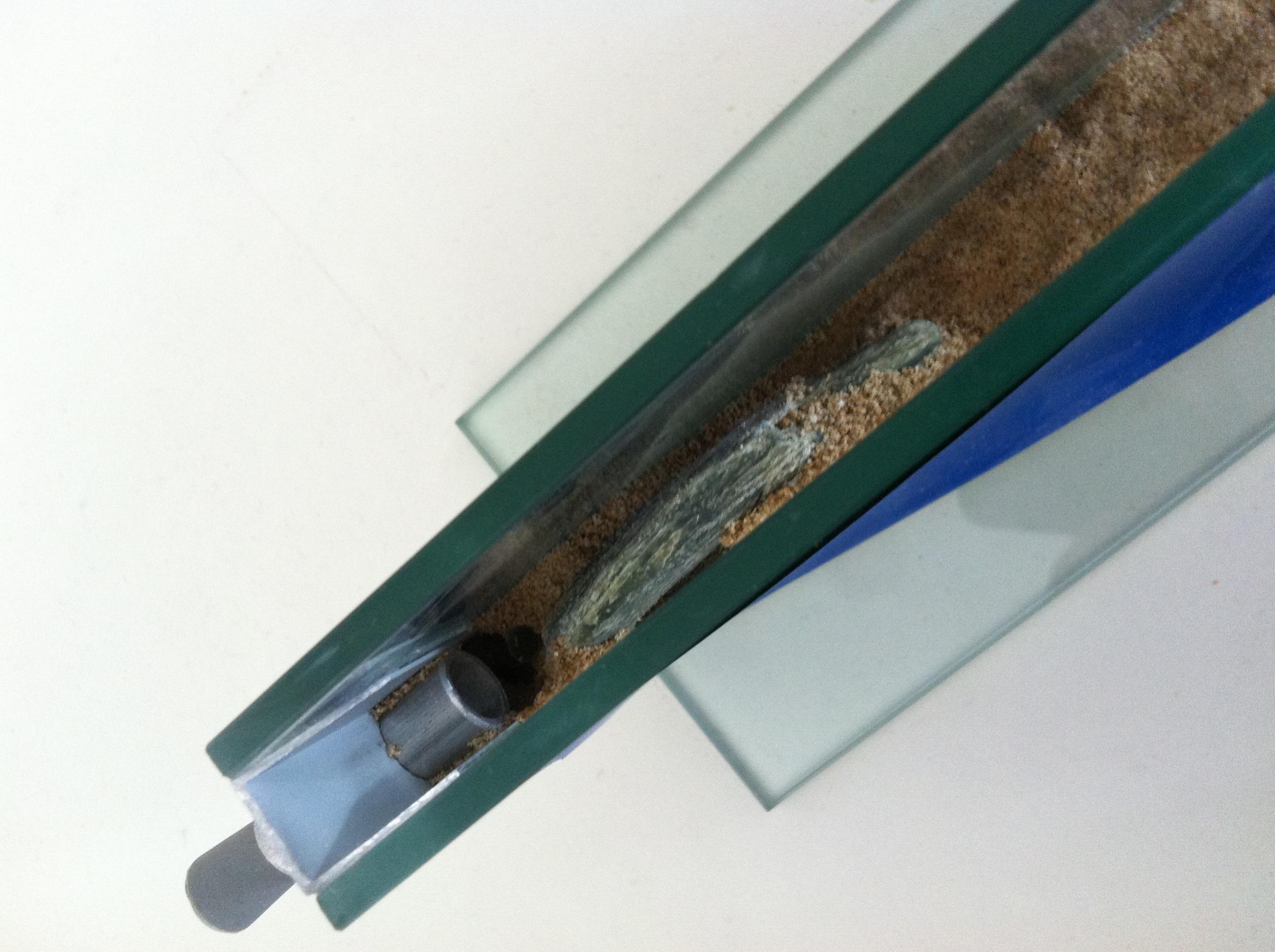 Meine kleinen machen mir etwas sorgen, da die Königin das Nest nicht direkt bezogen hat, sondern nur oben "auf" dem Nest eine kleine Kammer eingerichtet hatte (gegeben durch die Farm, also den 2. verschlossenen Einlass) und das eigentliche Nest mit den Eiern und Larven unter ihr war. Ich habe in der kleinen Farm einen Stein platziert, da ich gelesen habe, dass Lasius niger gerne unter Steinen nisten, haben sie auch gut angenommen nur eben hinter dem Stein in und um die Bewässerungstrenache.... Sie ist bei Störungen (Anhebung des Deckels) jeweils ins Nest und direkt wieder in die Kammer und es herrschte reges treiben. Im allgemeinen waren sie nach dem Umzug sehr aktiv und haben alles Futter angenommen und waren immer zahlreich (min. 4-5 Ameisen) in der Arena und der Farm unterwegs. Sie haben nun das Nest soweit ausgebaut, dass mir der Einblick versperrt ist und ich auch durch die Scheibe keine Einsicht in ihre Aktivität habe. Konnte aber kurz vor Beendigung der oberflächlichen Arbeiten eine junge Arbeiterin erspähen (sehr klein und rötlich gefärbt und etwas transparent, nehme an erst wenige Stunden oder Tage alt). Nun haben Sie allerdings ihre Aktivität eingestellt und haben Fressen in Form von Grillen (Crick in a can aus der Zoohandlung) nur etwas angeknabert. Ansonsten ist die Arena meist ausgestorben und auch die Farm ist eher leer, höchstens 1-2 Arbeiterinnen die Steinchen holen oder etwas entorgen. 1 Ameise ist eigentlich immer in der Nähe des Nestes und sitzt manchmal einige Sekunden auf einer Stelle um dann schnell wieder ins Nest zu verschwinden.