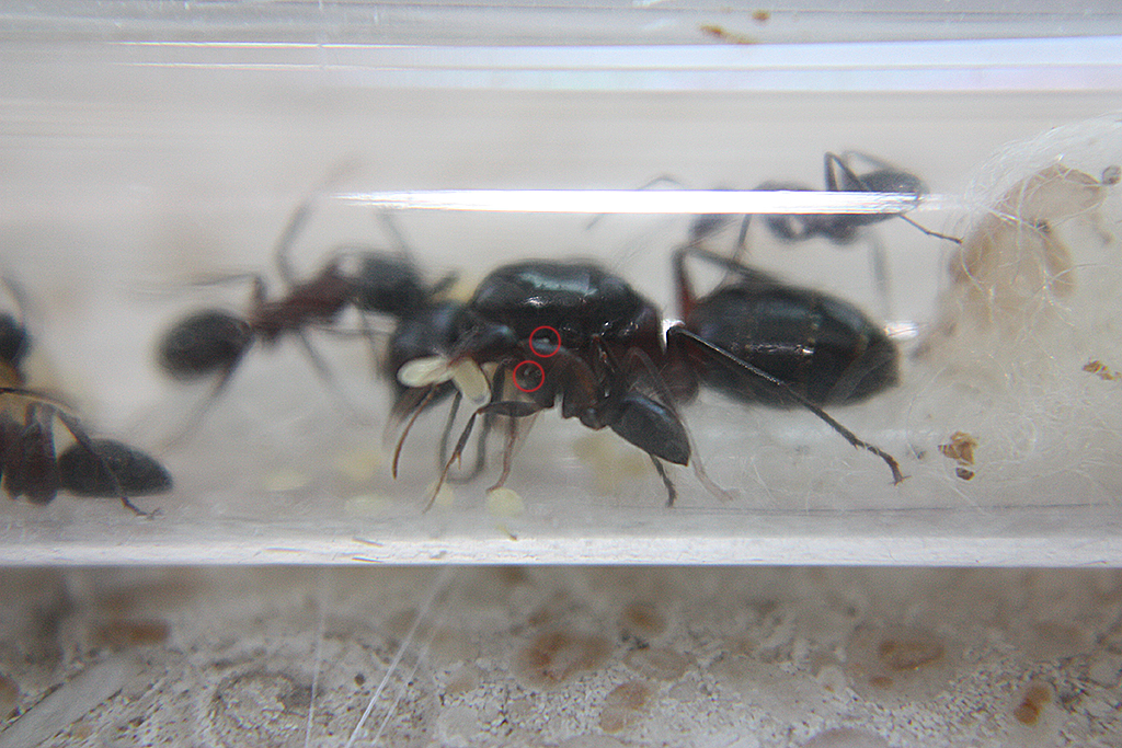 Also die Milben Gefahr geht meist nicht so sehr von Futtertiere die du draußen sammelst aus, sondern eher von Futtertiere die du im Laden kaufen kannst. Es ist klar das Milben sich in einer regelrechten Zucht viel leichter vermehren können als draußen in der Natur. Auch haben in der Natur die Milben natürliche Gegner. Auch ich gebe meinen Ameisen öfters Lebendfutter aus der Natur. Aus dem Zoomarkt würde ich sie schon Abbrühen oder was ich persönlich besser finde ab ins Gefrierfach für 30 Min. Allerdings bin ich auch vorsichtiger geworden seid ich doch einige Kolonien durch Milben verloren habe. Seit dem schaue ich mir die Futtertiere immer unter der Lupe an. Auch untersuche ich Tote Ameisen auf Milbenbefall. Hier mal ein paar Fotos von mir. Habe die Kolonie von einem Händler bekommen und entdeckte sogleich Milben. Aber zum glück war man sehr freundlich zu mir entschuldigte sich für den Fehler. Und man ersetzte mir die Kolonie schnell. Zum Schluss noch etwas was manche vielleicht vergessen, auch Hunde, Katzen usw. haben oft Parasiten.