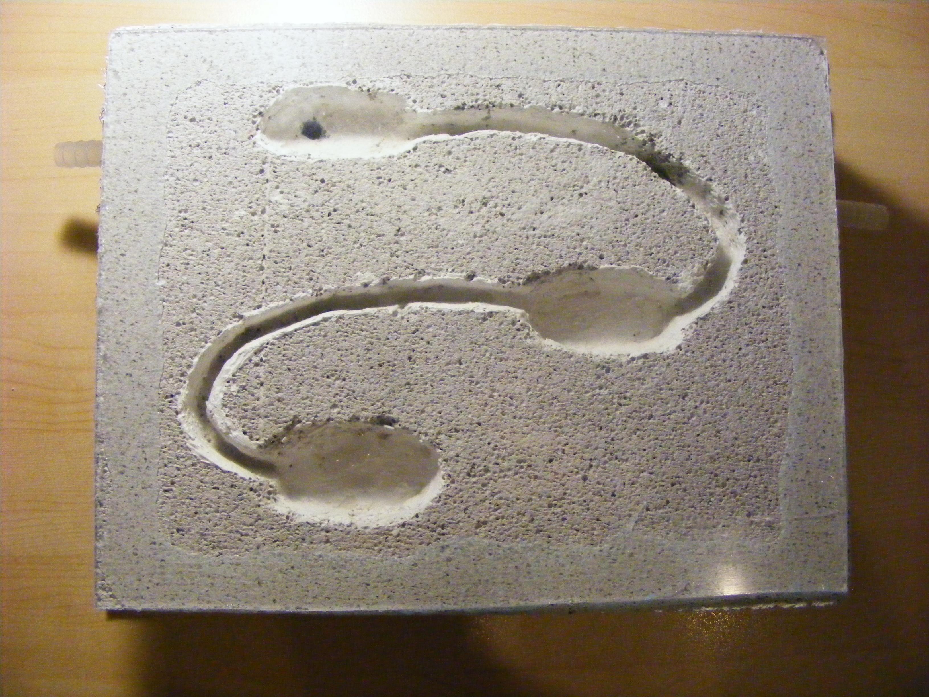 Ich hatte eine Mischung aus Sand-Lehm Gemisch, Seramis und Gibs eingerührt und ausgossen.