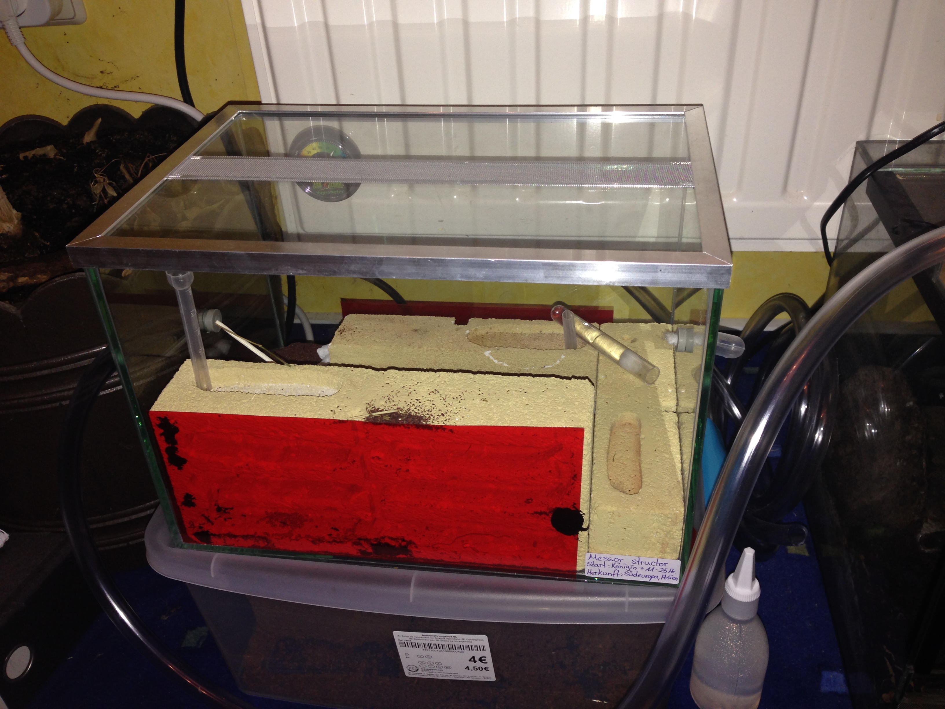 hab die neue Anlage jetzt fertig und die neuen Messor sind eingezogen, allerdings sind es keine Messor barbarus, sondern Messor structor. Hab mich mal an diese Art gewagt und mal sehen was daraus wird.