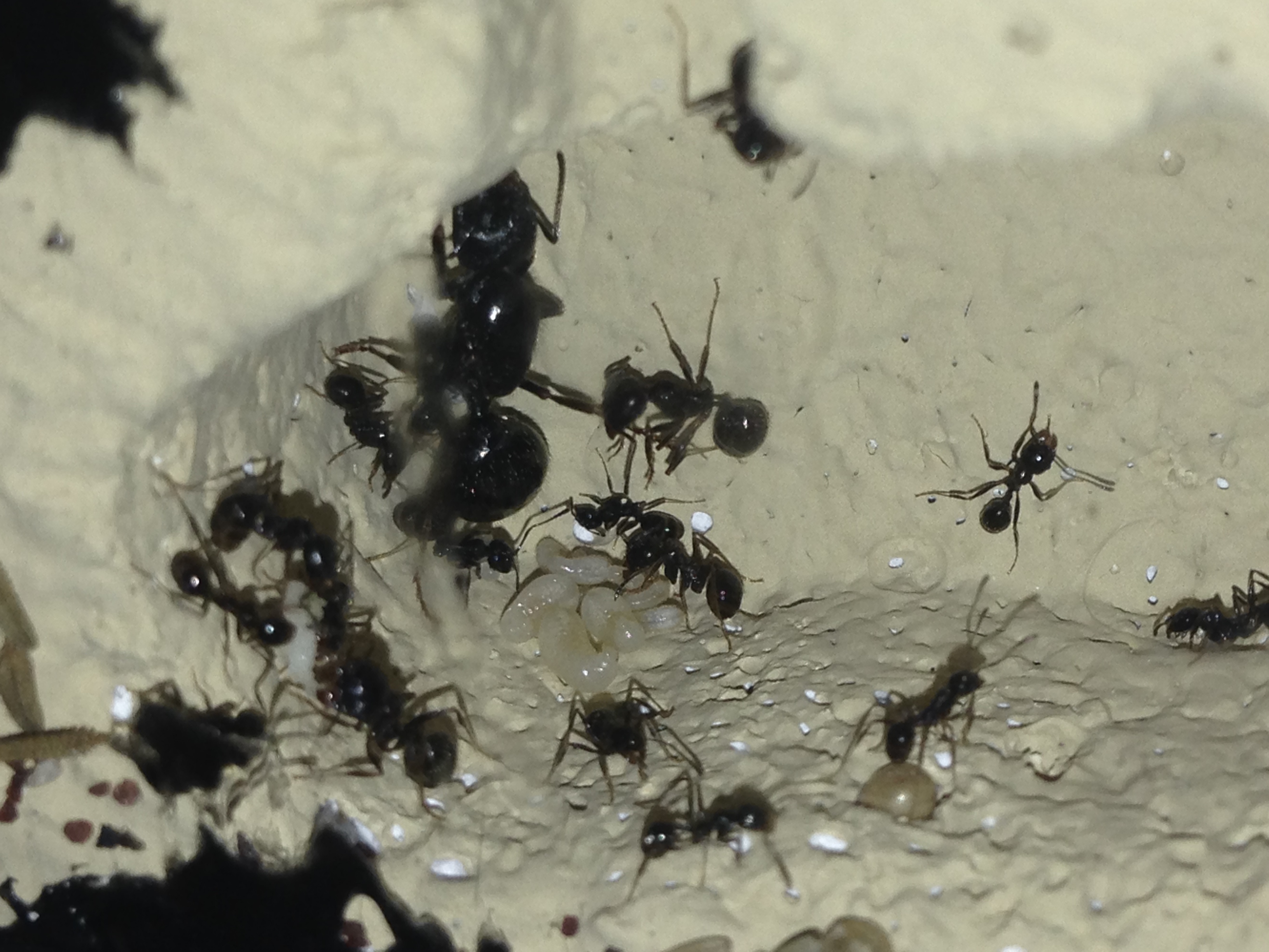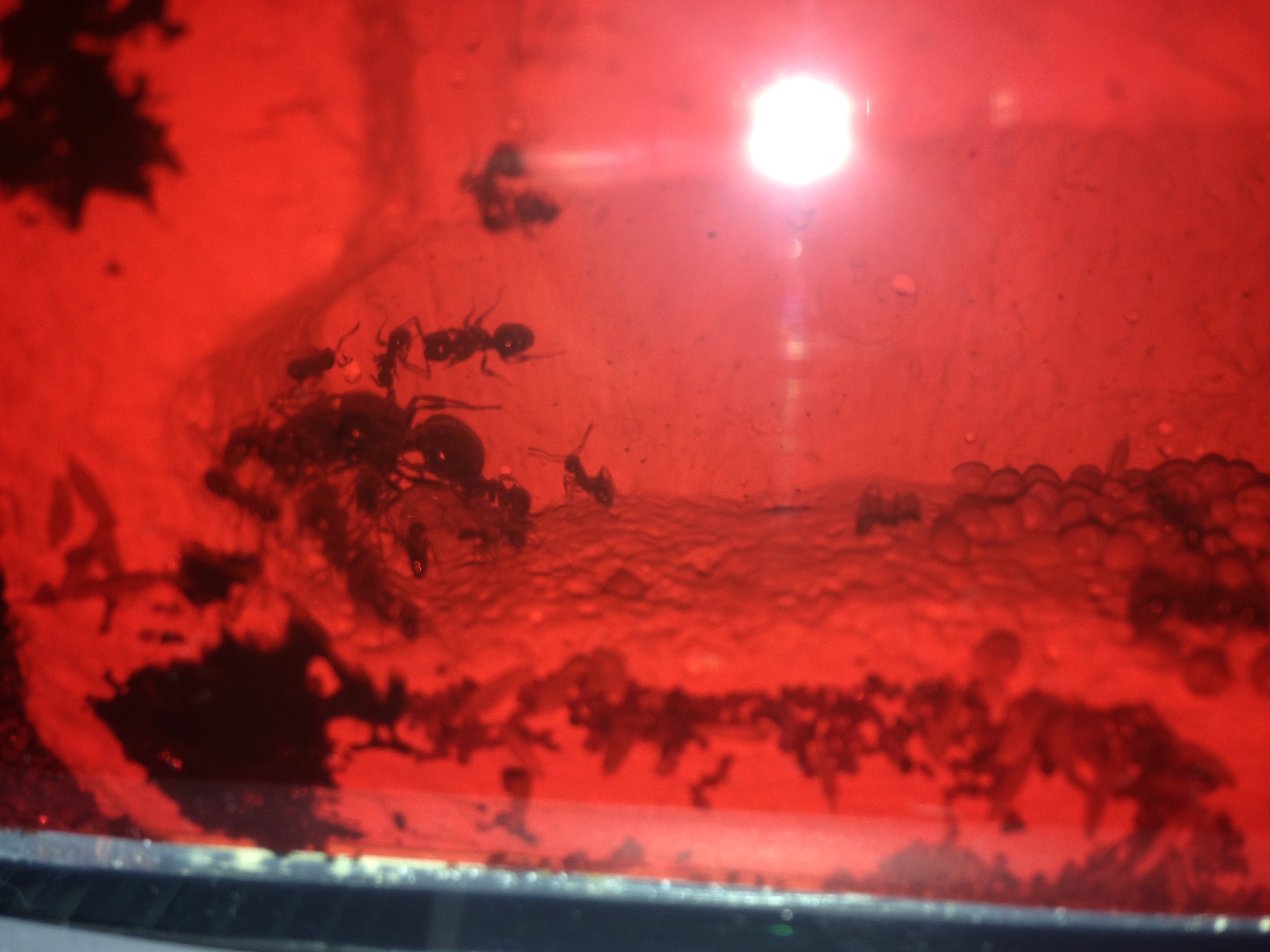 Da ich ja 2 eigene Völker mit Messor barbarus habe die schon recht groß ist (zählen kann mans nimmer) wurde der Versuch an beiden Becken ausprobiert.