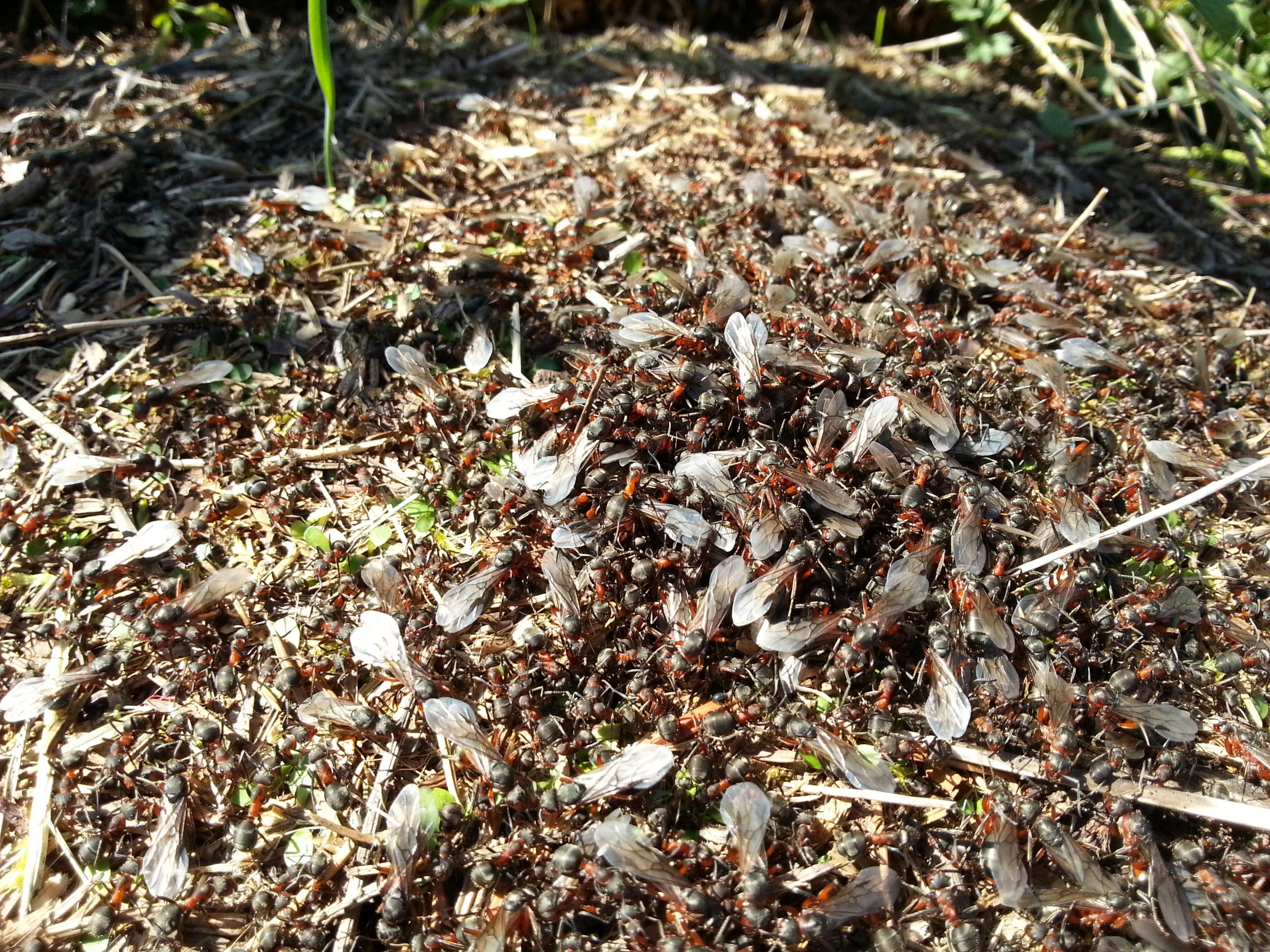 Zu den Ameisen, die Du gesehen hast: Ich denke es sind Jungköniginnen einer Formica - Art, vielleicht sogar Formica rufa? Die rote Waldameise steht allerdings unter Naturschutz und darf auch nicht gesammelt und nur mit Sondergenehmigung gehalten werden.