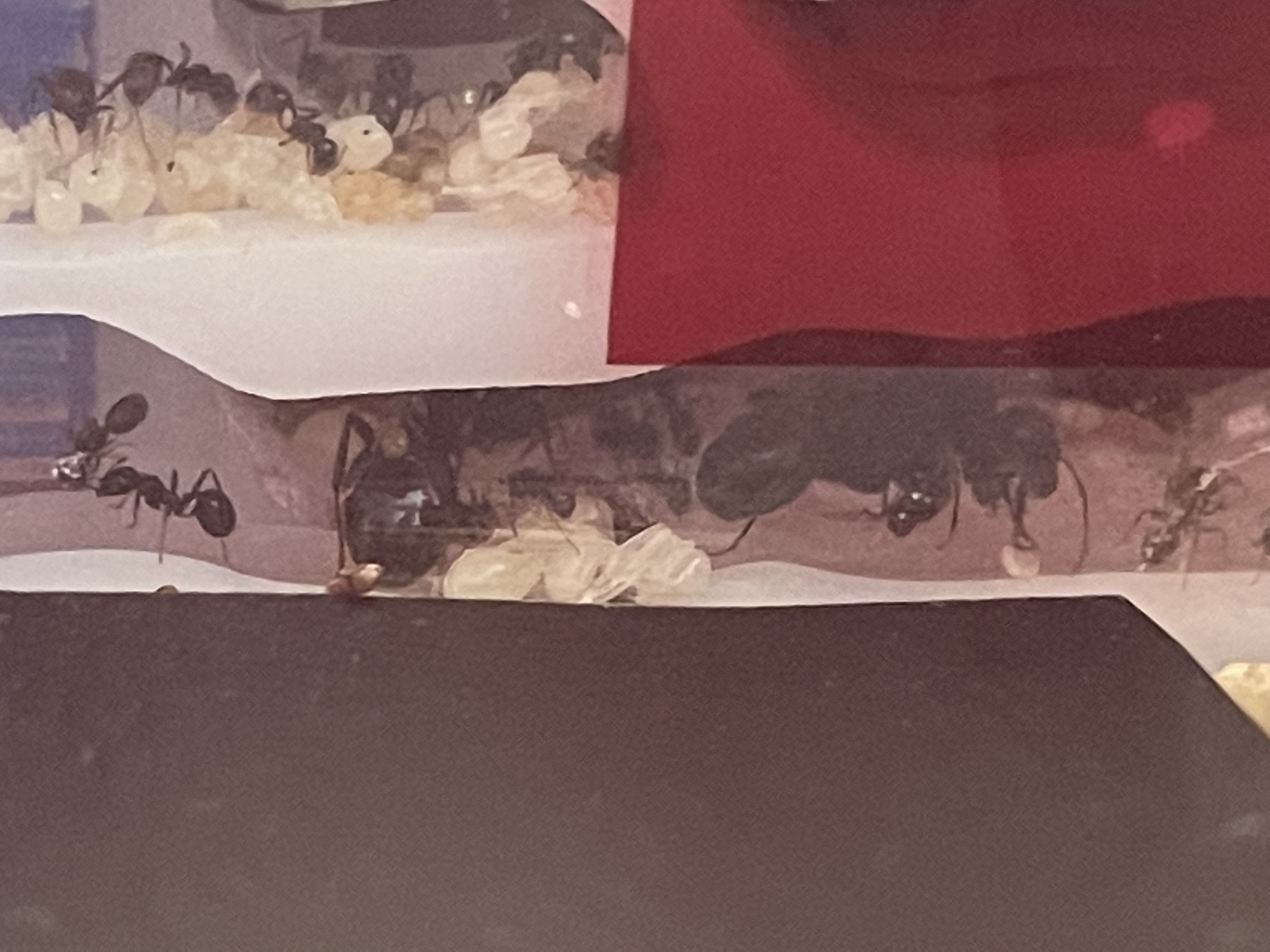 Milch mit Honig ??? Das hatte ich bei Messor bisher noch nie gelesen/gehört - der Sinn erschließt sich mir auch nicht so ganz, kann mich diesbezüglich jemand aufklären?Für ihre Fütterung ist eine Diät aus flüssigen Substanzen, wie dem Nahrungssirup von Anthouse, Milch mit Honig und ein kürzlich verstorbenes Insekt (Fliegen, Grillen, Silberfischchen, Mehlkäfer, etc.) besser, damit sie reichlich Proteine haben. Es ist SEHR WICHTIG, dass es immer eine Wasserquelle gibt (vor allem im Sommer), sei es über Tränken, Wasser in Gel, direktes Trinken aus dem Feuchtigkeitssystem (Erde), aus der Flüssignahrung, die sie fressen, etc.