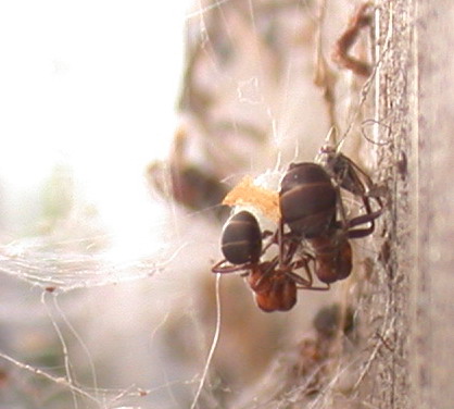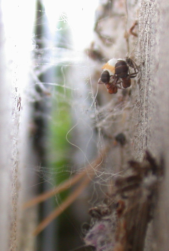 Da hab ich folgendes gesehen: eine weiße Kugel mit etwa 0,5cm durchmesser, darauf sitzen kleinere Ameisen (Größe kann ich nicht sagen, ist ca 40 cm tief in diesem Spalt drinnen, werd mal versuchen, das irgendwie auf ein Foto zu kriegen